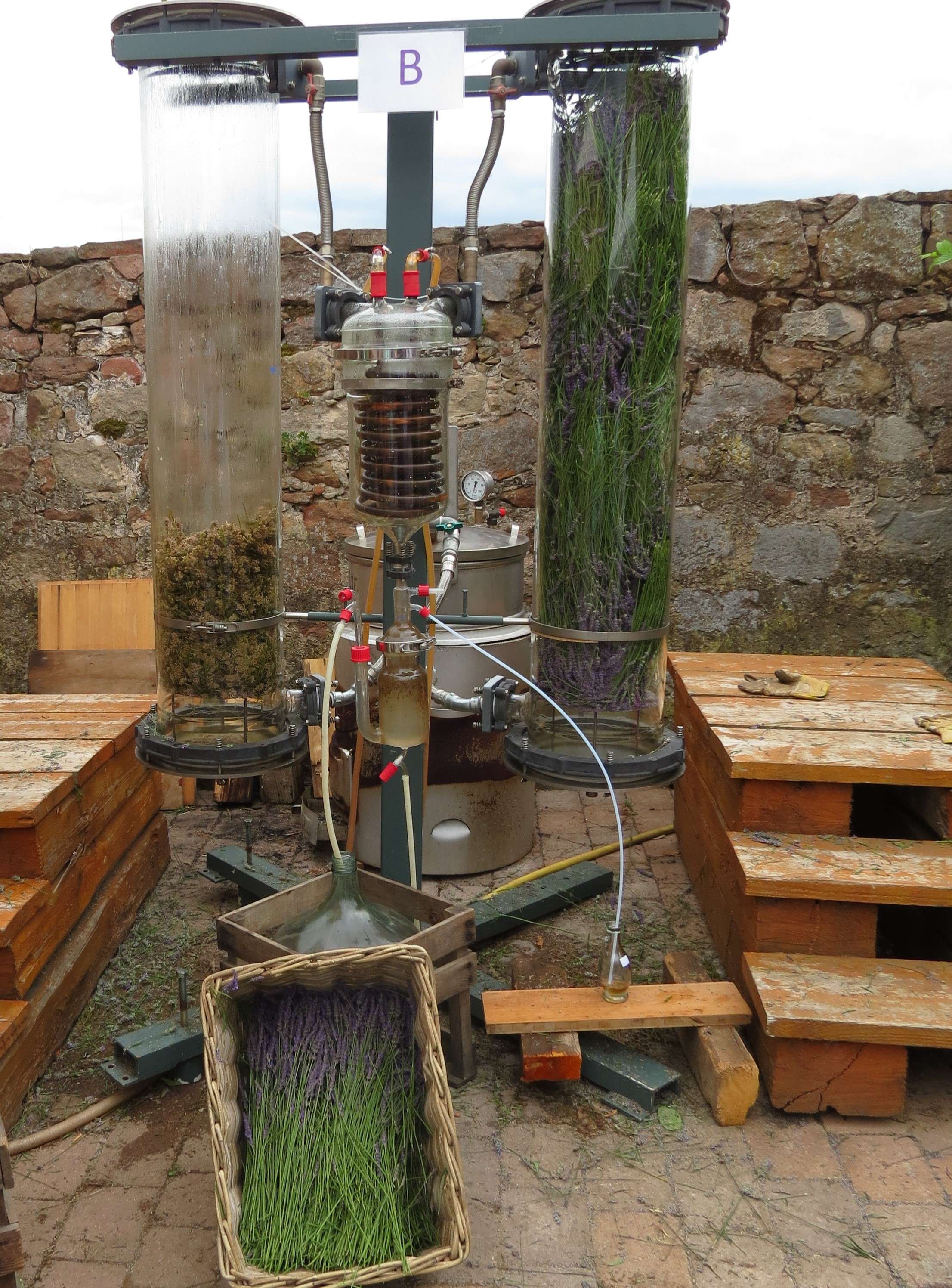 Einige der Sorten kamen in die Destille, wo aus ihnen dann herrlich duftendes Lavendelöl und Duftwasser hergestellt wurde.