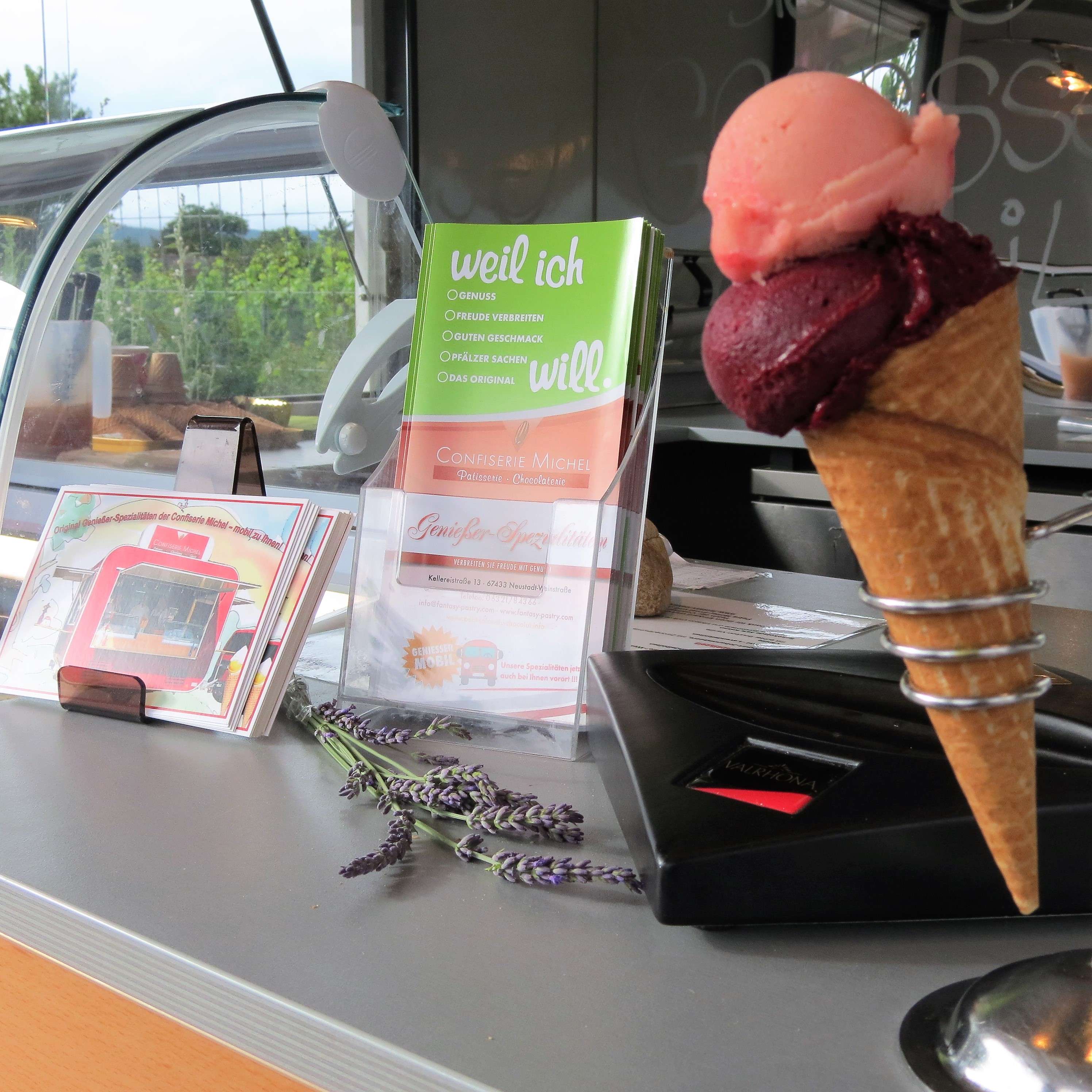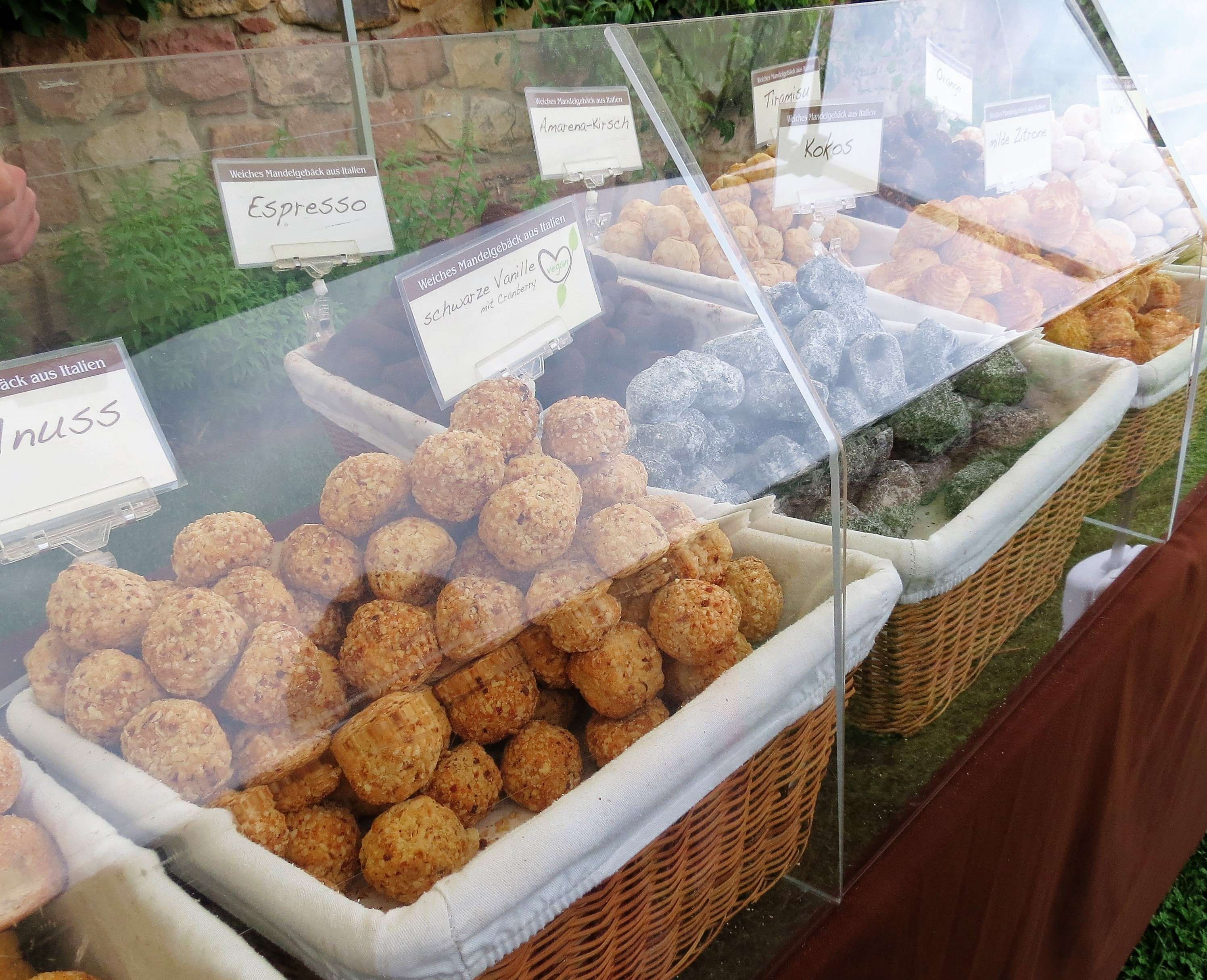 Kulinarisch gab es Leckeres von den Gaumenfreunden, die mit Zutaten aus dem Gemüse- und Kräutergarten kochten. Oder man konnte bei Food for Soul in die Genüsse der singhalesischen Küche hineinschmecken mit Linsenküchlein oder Kokospfannkuchen. Bei der Confiserie Michel gab es zum süßen Abschluss Weinbergpfirsich- und Cassis-Sorbet; das erfrischende Lavendeleis war vom Eiscafé La Piazza aus Edenkoben.