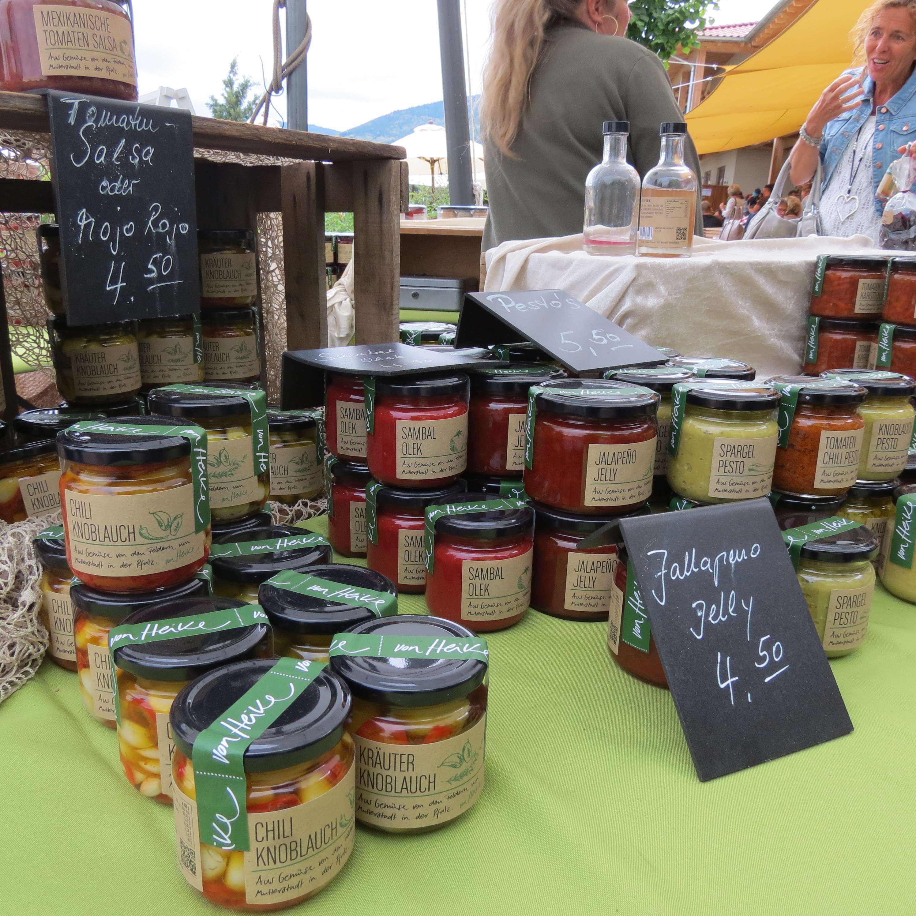 Im ganzen Garten verteilt befanden sich die Stände verschiedener Aussteller, darunter alte und neue Bekannte, wie Alex und Nils von der Bimbesbox (meinen Blogbeitrag darüber findet Ihr hier), Heike Fehmel („von Heike“) mit ihren tollen Chutneys, Soßen und dem – zum Anlass passenden – pinkfarbenen Lavendelsirup oder der Kasbah-Shop mit leckeren Tees, Ölen und Gewürzen aus Marokko. Die meisten Aussteller wechselten am zweiten Wochenende, sodass es immer wieder Neues zu entdecken gab.