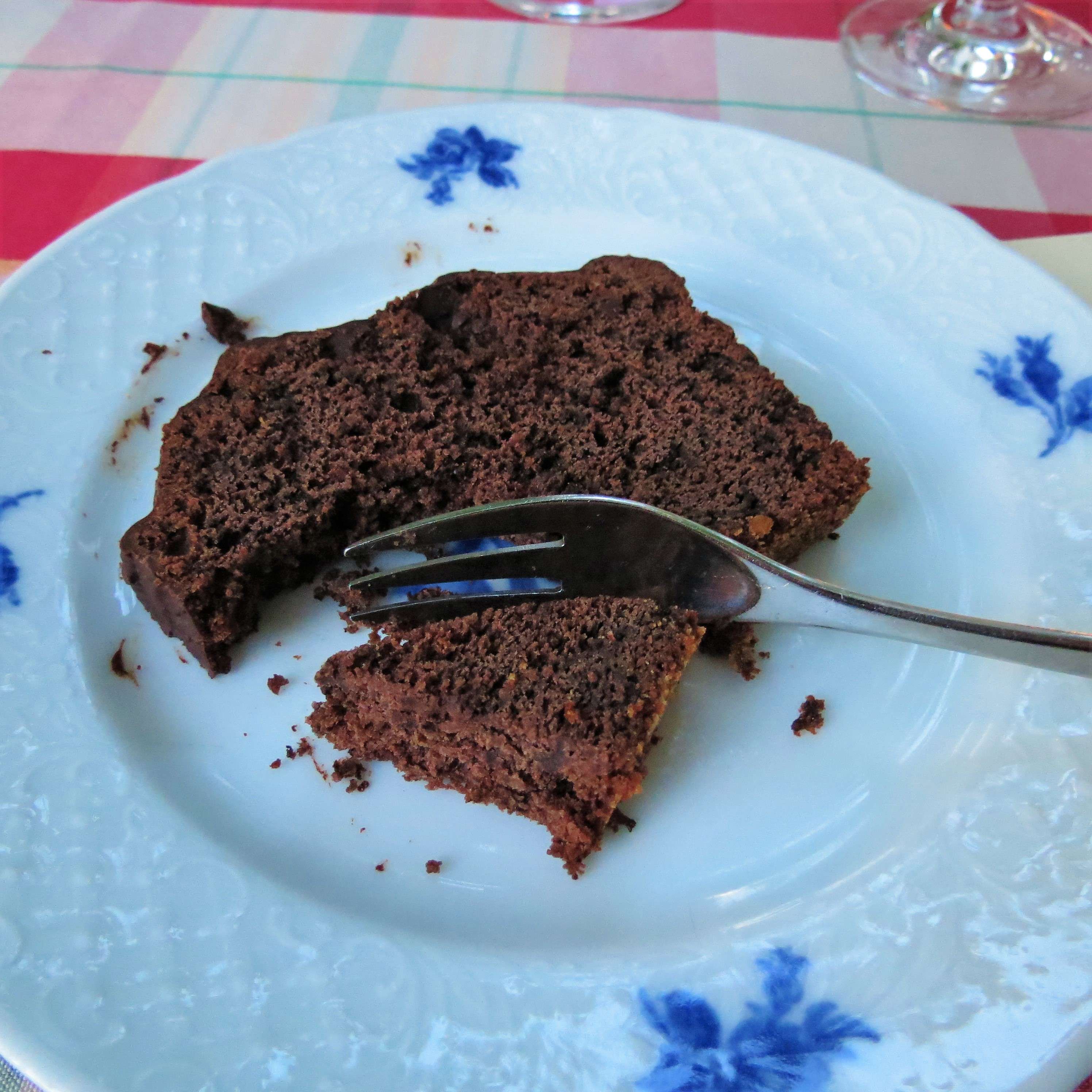 Ein leckerer Einstieg für das, was danach kam, nämlich Lammragout mit mediterranem Gemüse, Couscous und Minzjoghurt für mich und für meine Freundin einen Salatteller mit im Weinteig frittiertem Bratwurstbrät von der Metzgerei Hambel in Wachenheim. Beides ein absoluter Augen- und Gaumenschmaus! Zum Nachtisch haben wir uns dann auch noch ein Stück Rotweinkuchen gegönnt.