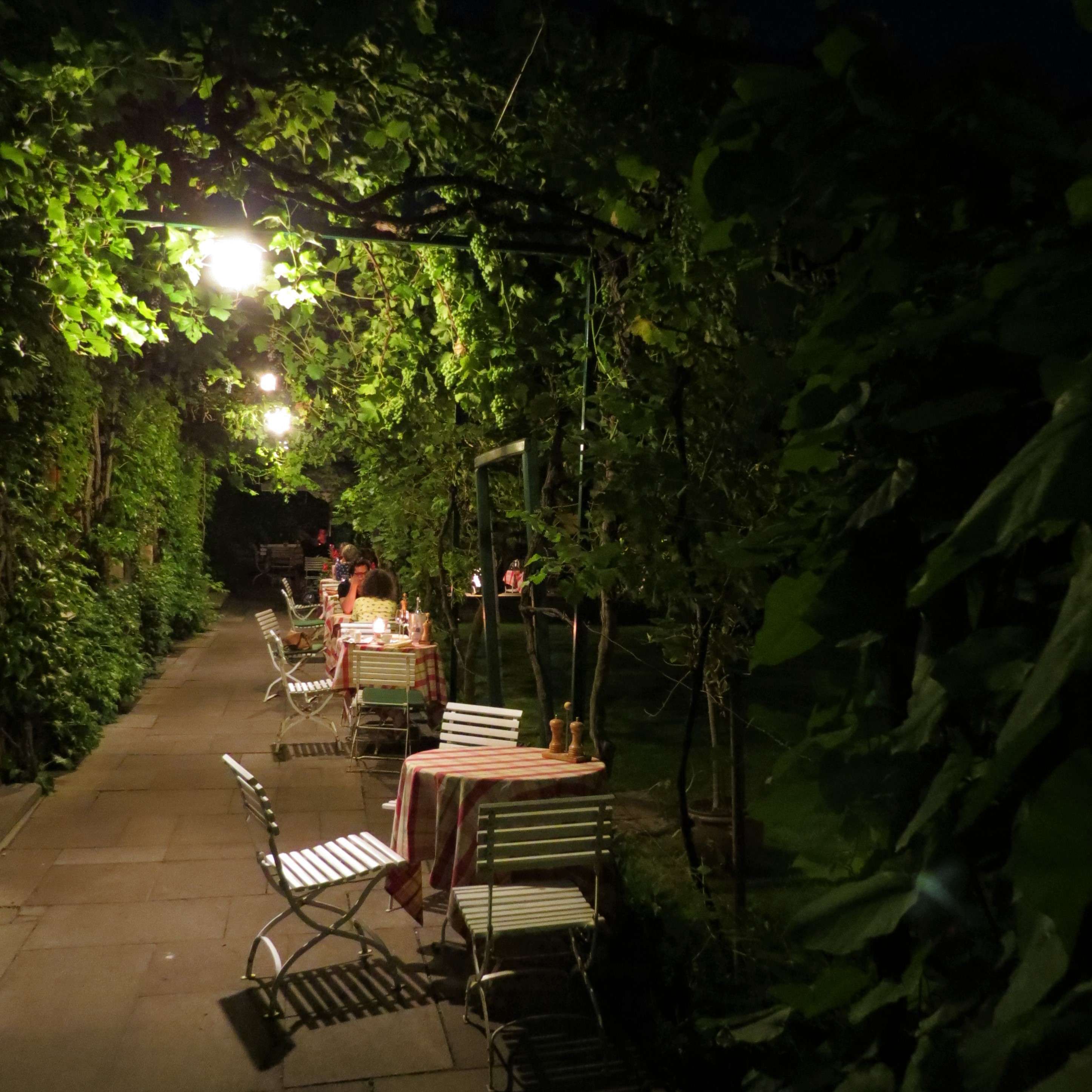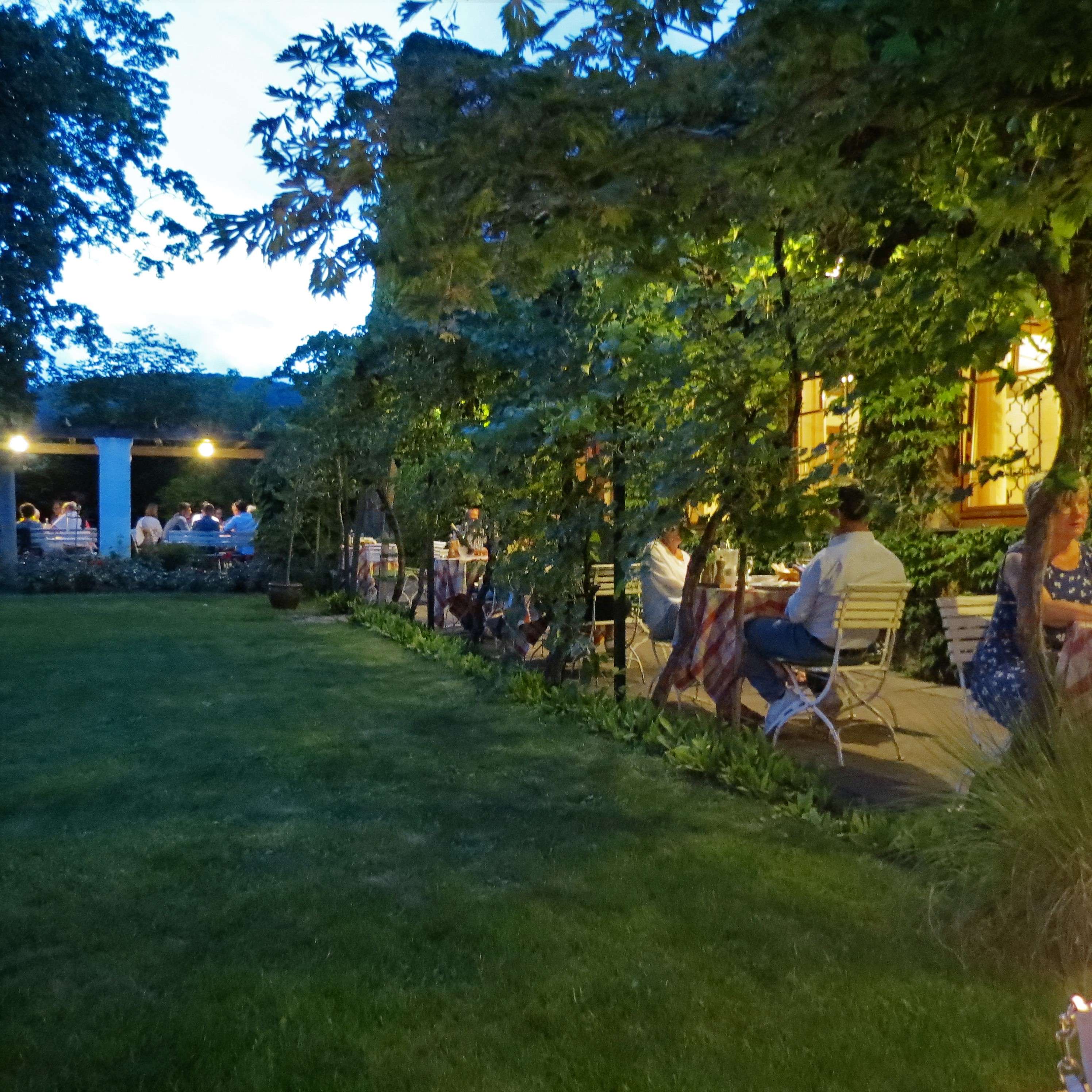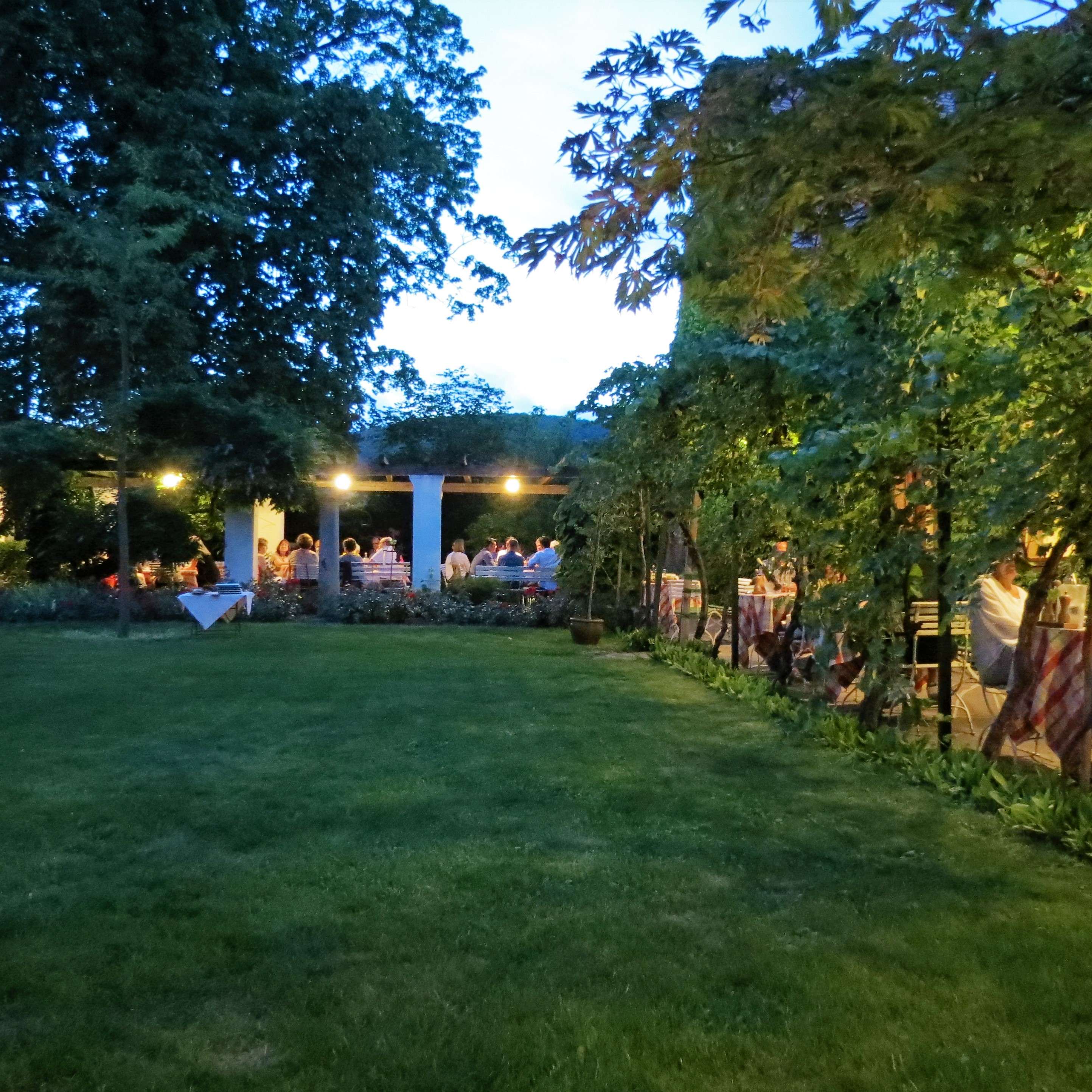 Und wenn die Sonne untergeht, tauchen die Lichter und Kerzen den Garten in ein ganz besonderes Licht! Ein absolutes Sommer-Muss hier mal vorbeizuschauen und Essen, Wein und Atmosphäre zu genießen!