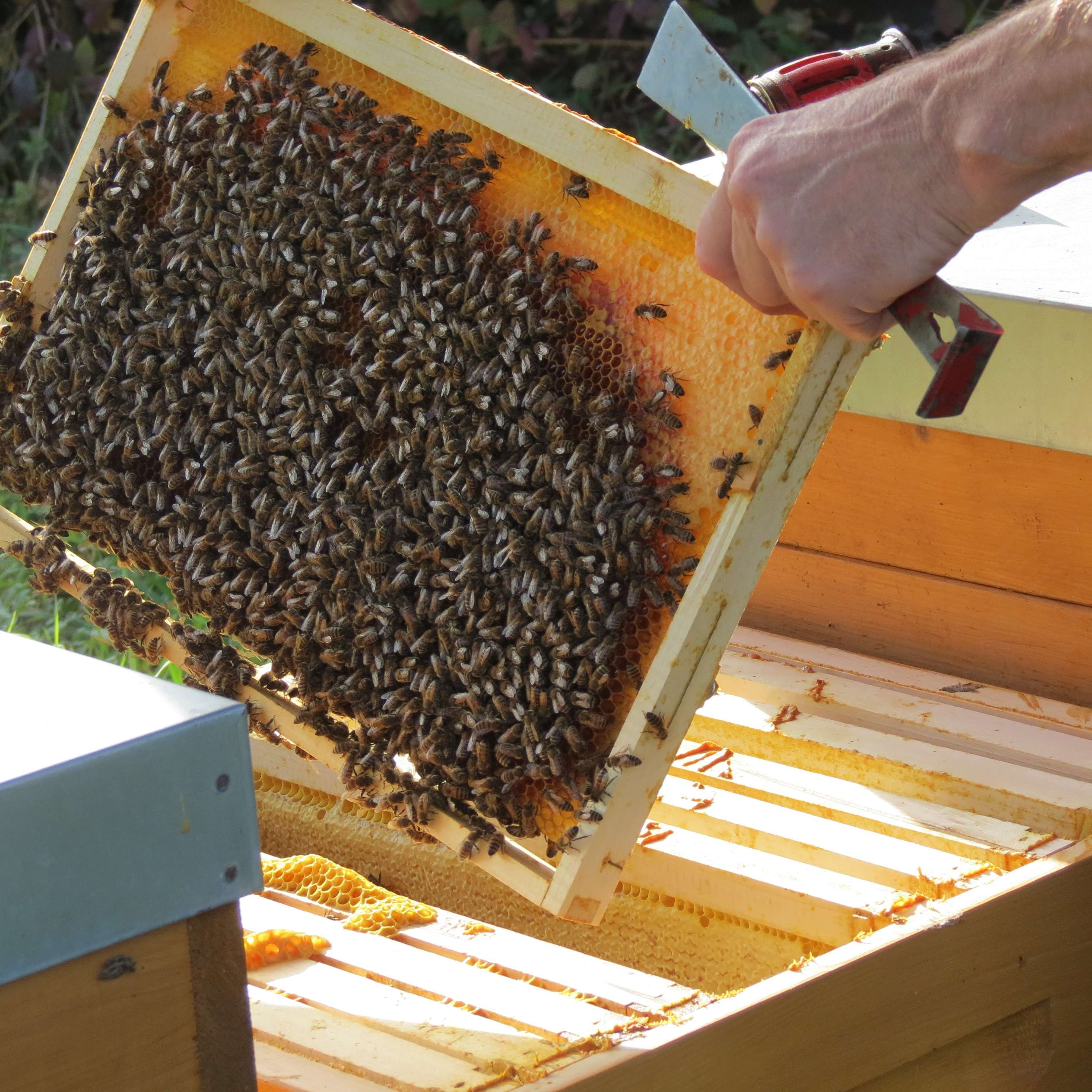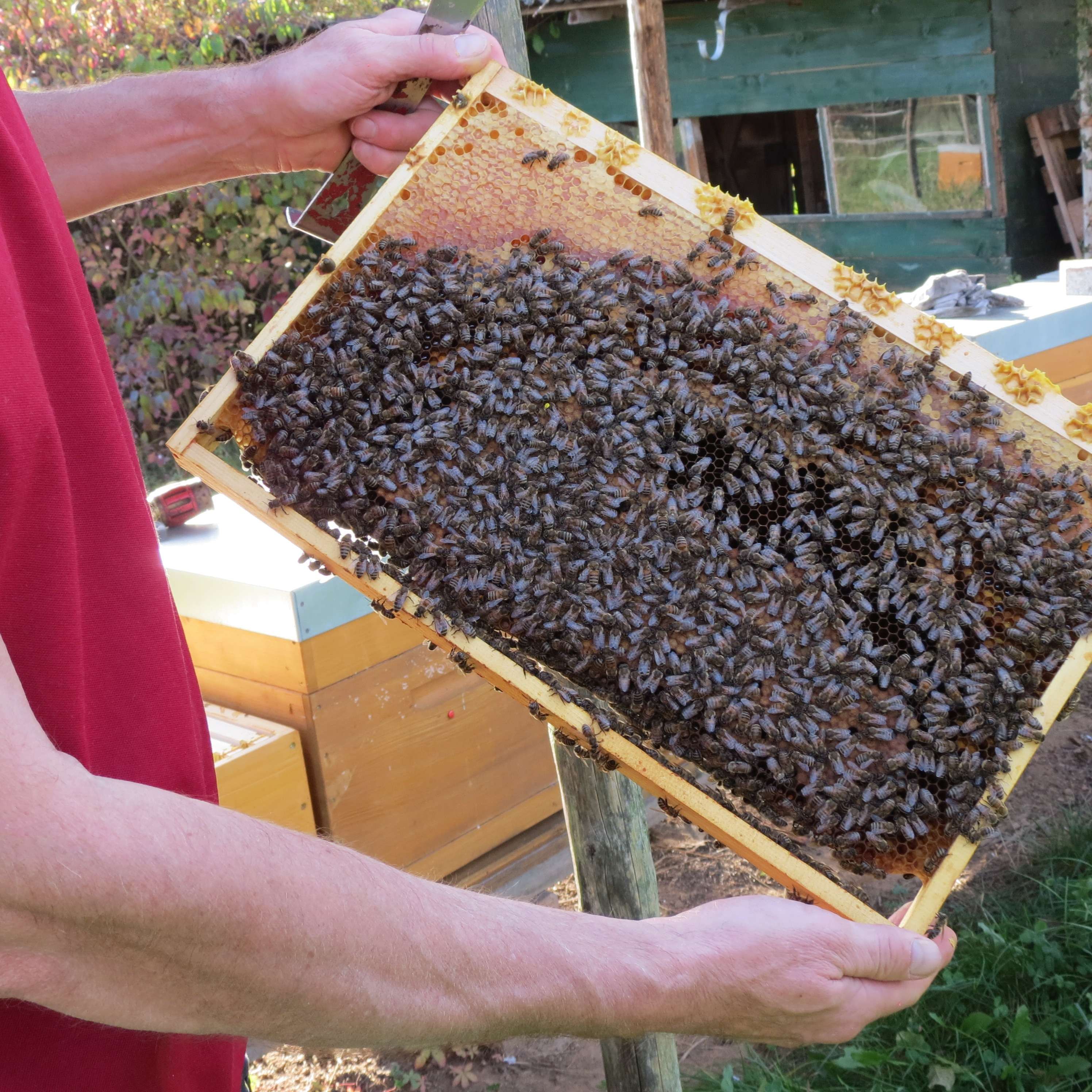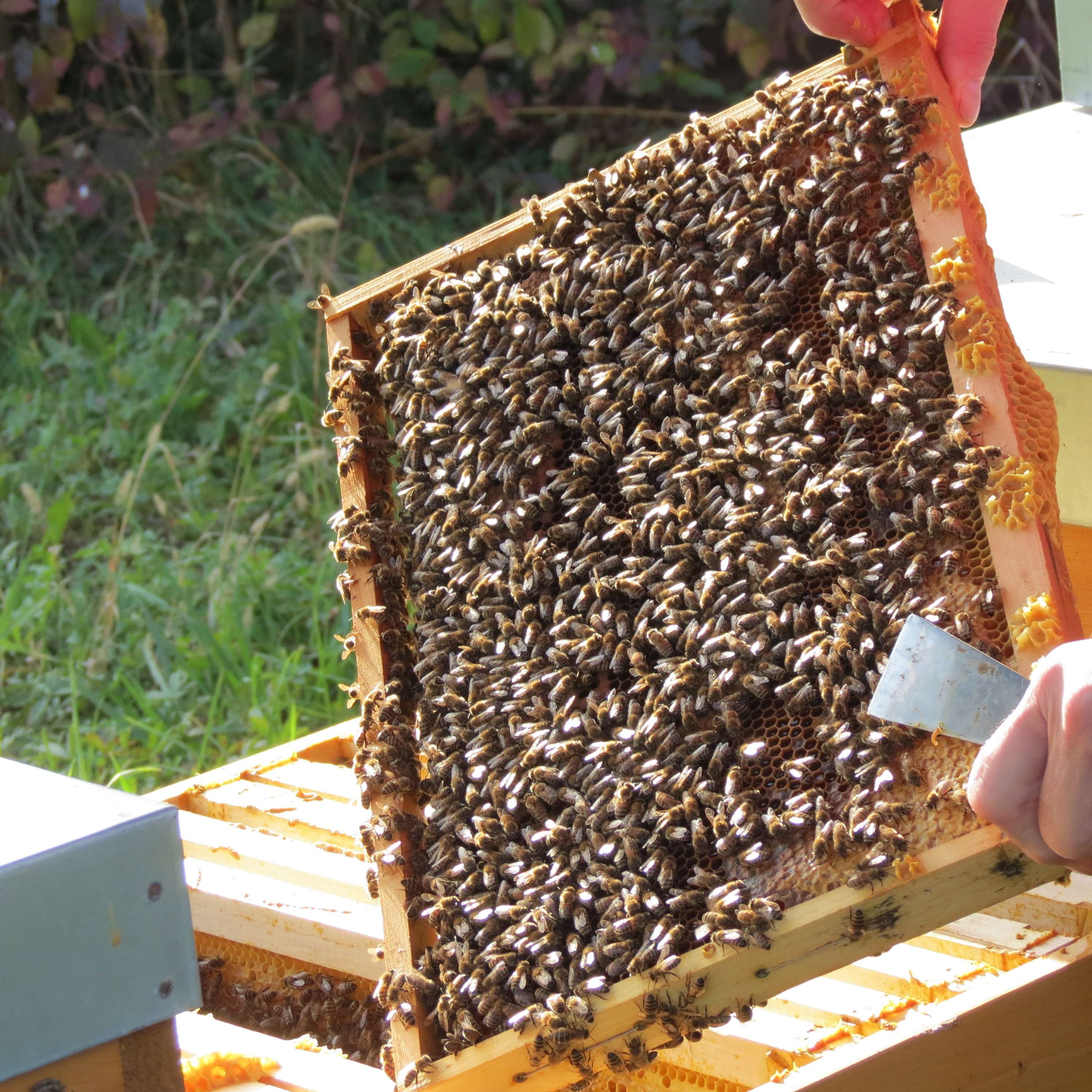 An den Bienenstöcken herrschte ein unglaublicher Betrieb und die Honigproduktion war zum Glück für meine Kamera noch in vollem Gange. Die letzten Sonnenstrahlen wurden ausgenutzt, bevor es auch für die Bienen zu kalt wurde. Eines der vielen Dinge, die ich gelernt habe ist, dass man vor diesen Tieren Respekt, aber keine Angst haben muss. Auch als wir einen genaueren Blick auf die Waben geworfen haben, waren die fleißigen Bienen absolut friedlich und schwer beschäftigt. Man merkt, dass hier nicht nur das Produkt, sondern auch die Tiere, die es herstellen, und deren Wohl im Mittelpunkt stehen.