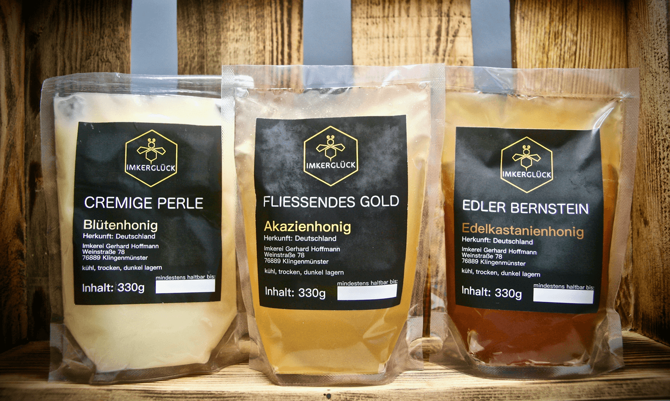 Imkerglück, das sind Lisa und Fabian, zwei superliebe Menschen, die leckeren Honig vom Imker für jeden einfach zugänglich machen wollen, indem sie ihn direkt per Post verschicken. Statt schwerer Gläser, die sich zu Hause stapeln, und hoher Versandkosten kommt ihr Honig in lebensmittelechten Aromabeuteln direkt nach Hause in den Briefkasten! Lecker, unkompliziert und natürlich regional! Auch Ihr könnt Euch davon überzeugen, denn ich darf je einen Honigbeutel mit dem Geschmack eurer Wahl an drei Abonnenten verlosen. Alle Infos zur Verlosung findet Ihr am Ende des Beitrags.