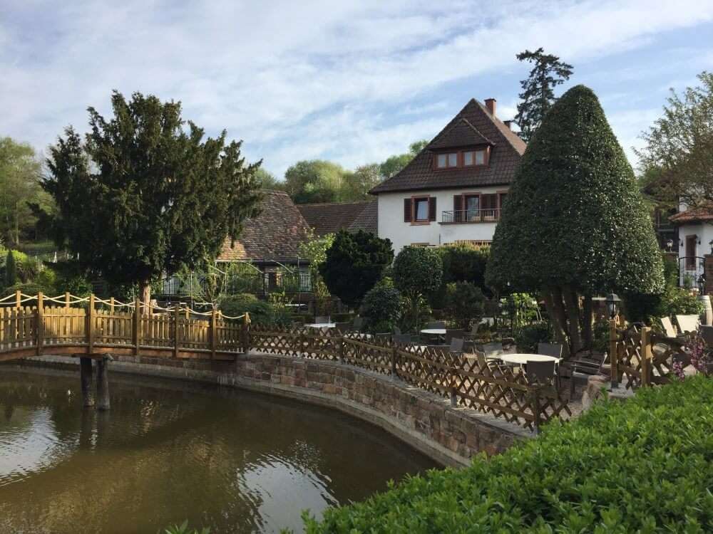 Es gibt einige gute Gründe der Burrweiler Mühle einen Besuch abzustatten. Abgesehen vom tollen Essen, ist es ihre wunderschöne Lage, unweit der Weinreben und der traumhafte Außenbereich. Im Sommer sind die Plätze auf der Teich-Insel ebenso heiß begehrt wie ein kühles Getränk. Doch auch im Inneren des Restaurants sorgen die mit Sandstein verkleideten Wände, viel Holz und die großen halbrunden Fenster für eine tolle Atmosphäre. Und das Essen erst …