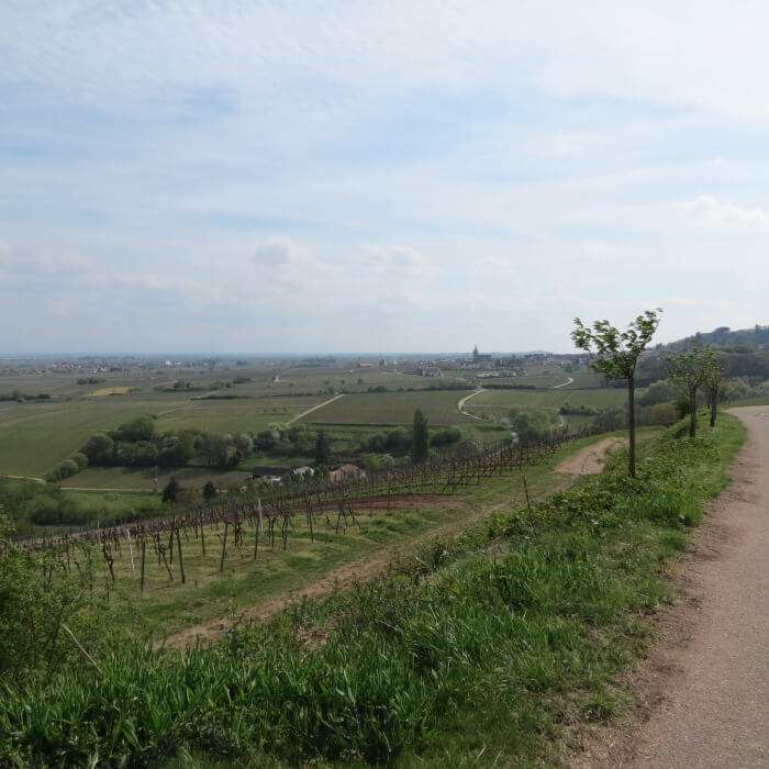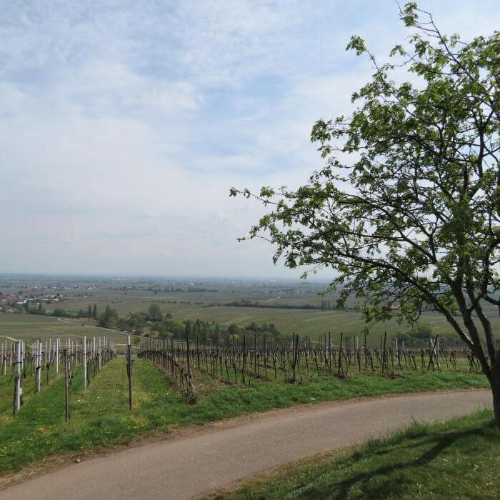 Unser Spaziergang führte uns durch die umliegenden Weinreben am Rötzberg, rund um die Michaelskapelle. Auf der einen Seite liegt einem die Rheinebene zu Füßen, in der Ferne grüßen Annakapelle und Rietburg, während die Ausläufer des Pfälzer Waldes sich hinter einem erstrecken. Ein wunderbarer Ort für einen Spaziergang mit einem grandiosen Ausblick!