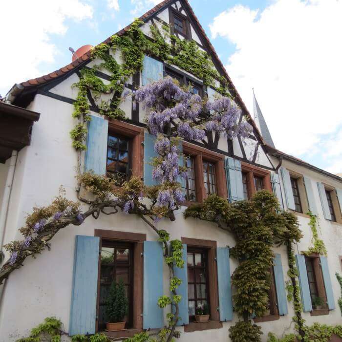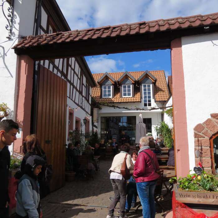 Diese Mischung aus Tradition und Moderne ist in Rhodt besonders spürbar, nicht nur was die Weingüter angeht. Im stilvoll eingerichteten Café Ludwig 1 laden leckere Frühstücksvariationen, wie die Baronesse von Rhodt, die Gräfin Sophie, König Ludwig, oder selbstgemachte Kuchen und Torten nach Familienrezept zum Schlemmen ein (eines meiner nächsten Frühstücksziele – ganz bestimmt!). Einige alte Häuser sind zu schmucken Ferienwohnungen umgestaltet worden, mit so goldigen Namen wie Altes Schneckehäusl, Dornröschen oder Feigenhof.