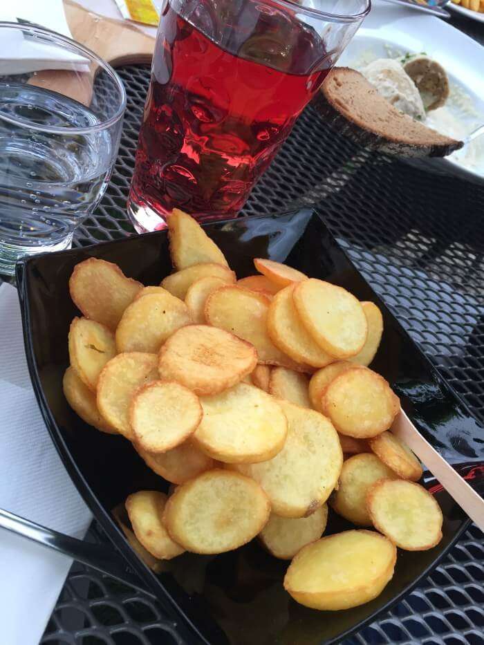 Im Sommer können wir uns neben den heißen Tagen auch auf laue Nächte freuen, in denen es noch lange hell ist und man draußen sitzen und die Seele baumeln lassen kann! Einer meiner Favoriten, wo man genau das kann, ist der Weinpavillon vom Weingut Bernhard Koch in Hainfeld, auch bekannt unter dem Namen „Wann’s Licht brennt isch uff!„. Ein Schild mit ebenjener Aufschrift am Straßenrand weist Euch den Weg. Von dort aus hat man einen wunderschönen Blick auf die Weinberge der Südlichen Weinstraße und den Pfälzer Wald. Die Getränke und das Essen bestellt man an der Theke im Inneren des wunderschönen Pavillons, der mit großen hellen Holzbalken und vielen Fenstern rundherum gestaltet ist. Geschlemmt wird im Sommer dann draußen im großen Außenbereich. Genießt den Abend dort bei einem guten Wein und einem der leckeren Flammkuchen (Pfälzer Flammkuchen mit Leberwurst – klingt komisch, schmeckt aber gut!) oder einer Portion Pfälzer Pommes!