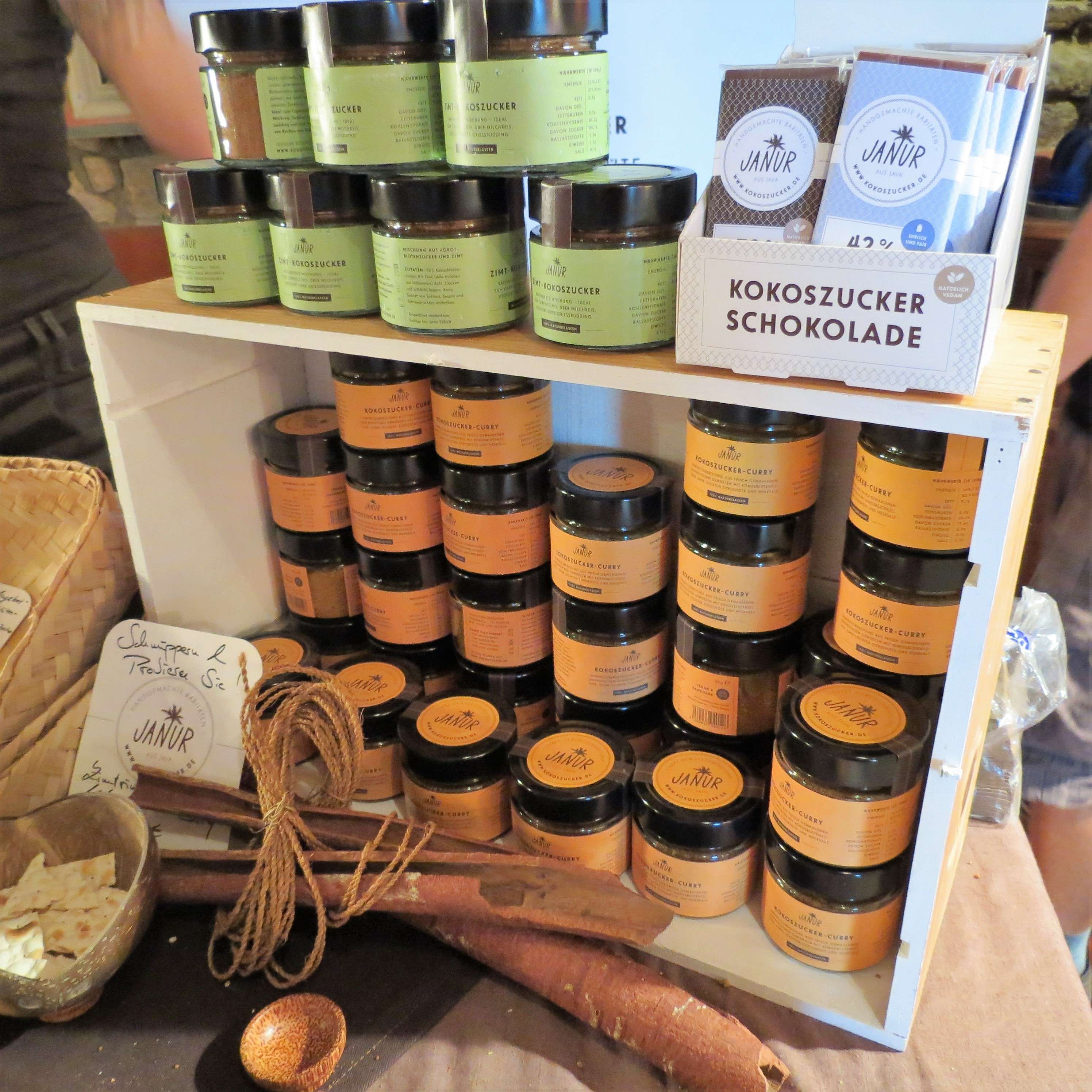 Seit dem Lavendelfest ist eine Sache auch nicht mehr aus meiner Küche und der meiner Mama wegzudenken: Kokoszucker! Bei Vivien Vogt von Janur Kokoszucker Janur Kokoszucker haben wir uns durch das Sortiment durchprobiert und waren begeistert! Mit nach Hause durften das Kokoszucker-Curry und der Zimt-Kokoszucker, mit dem ich inzwischen schon so einiges verfeinert und auch gebacken habe.
