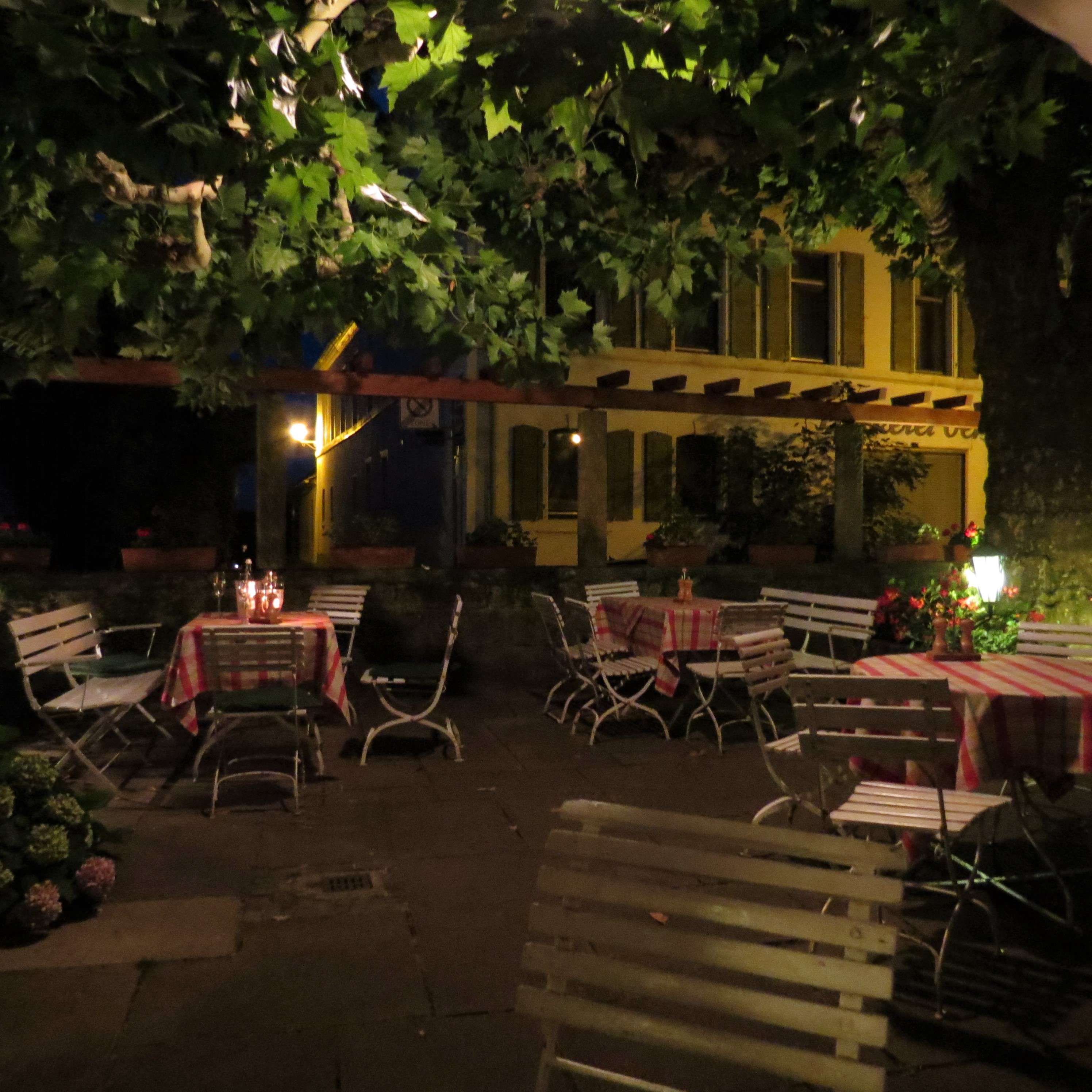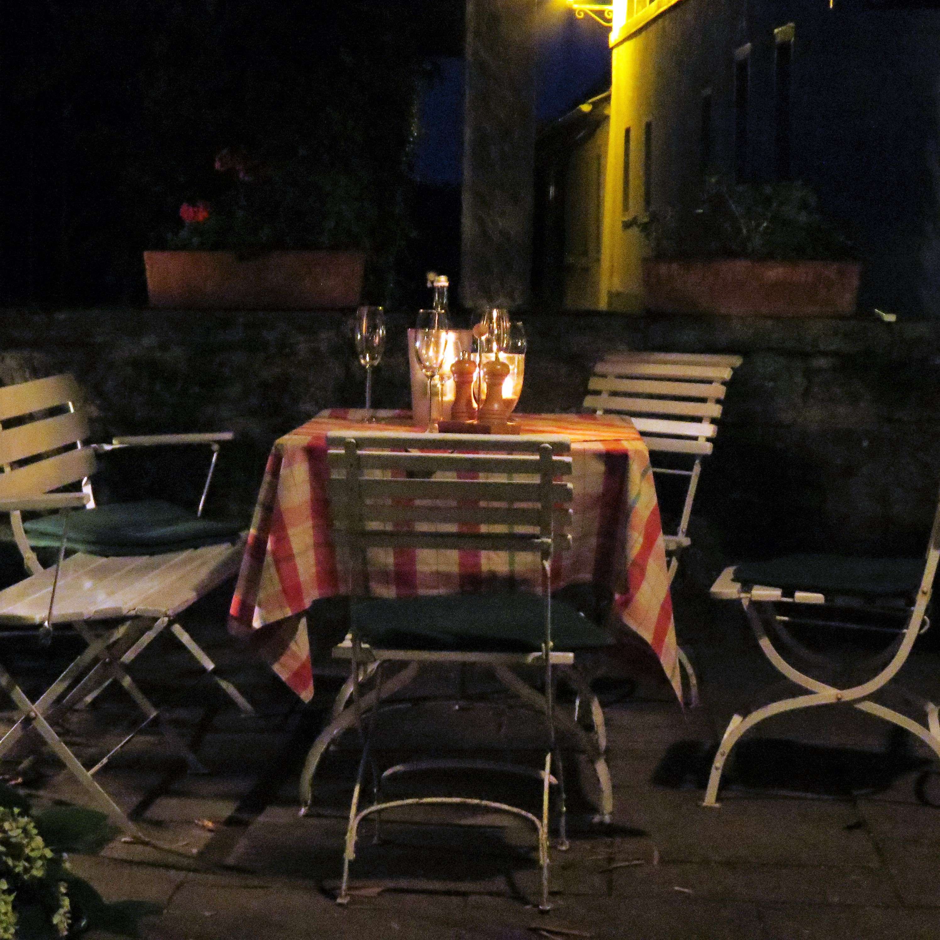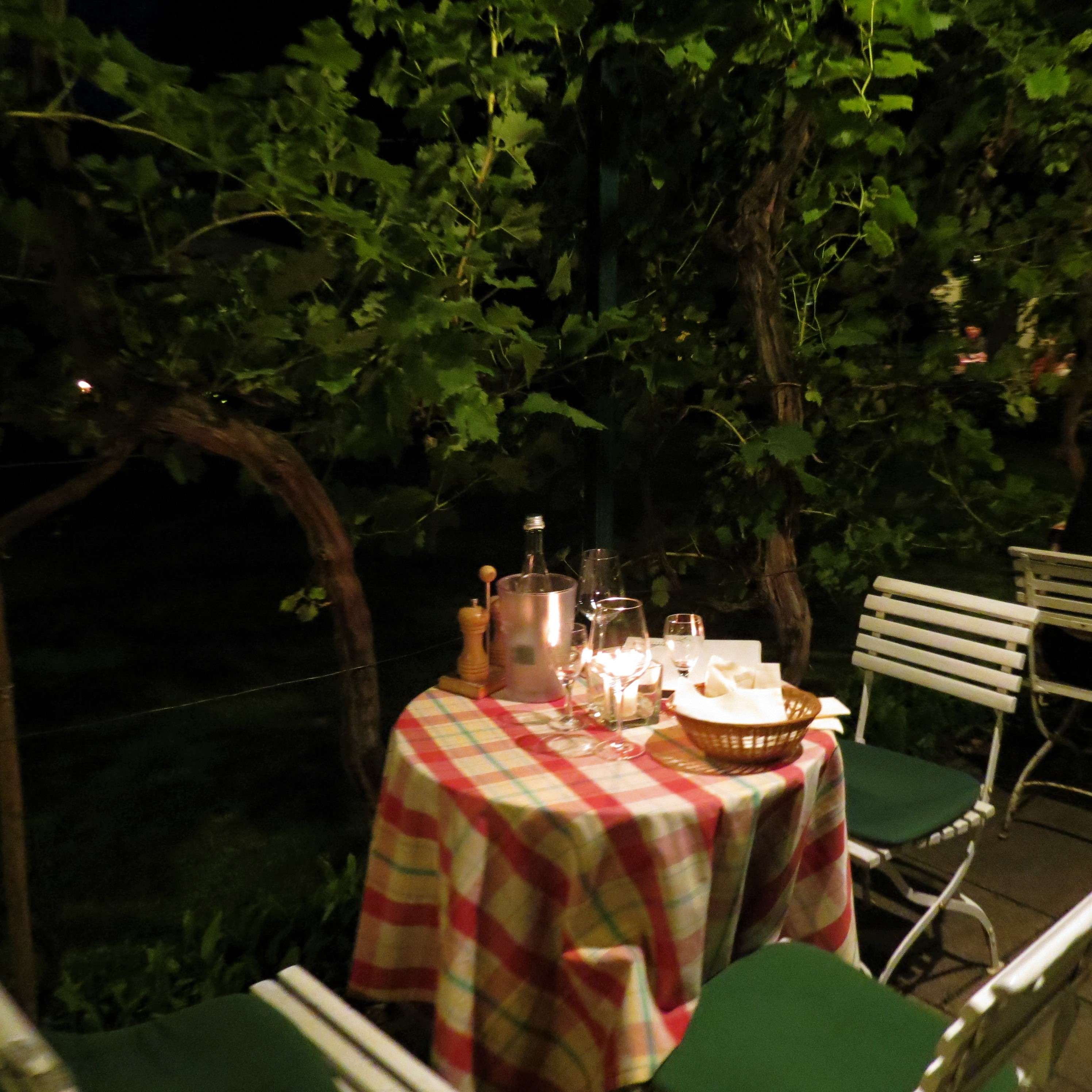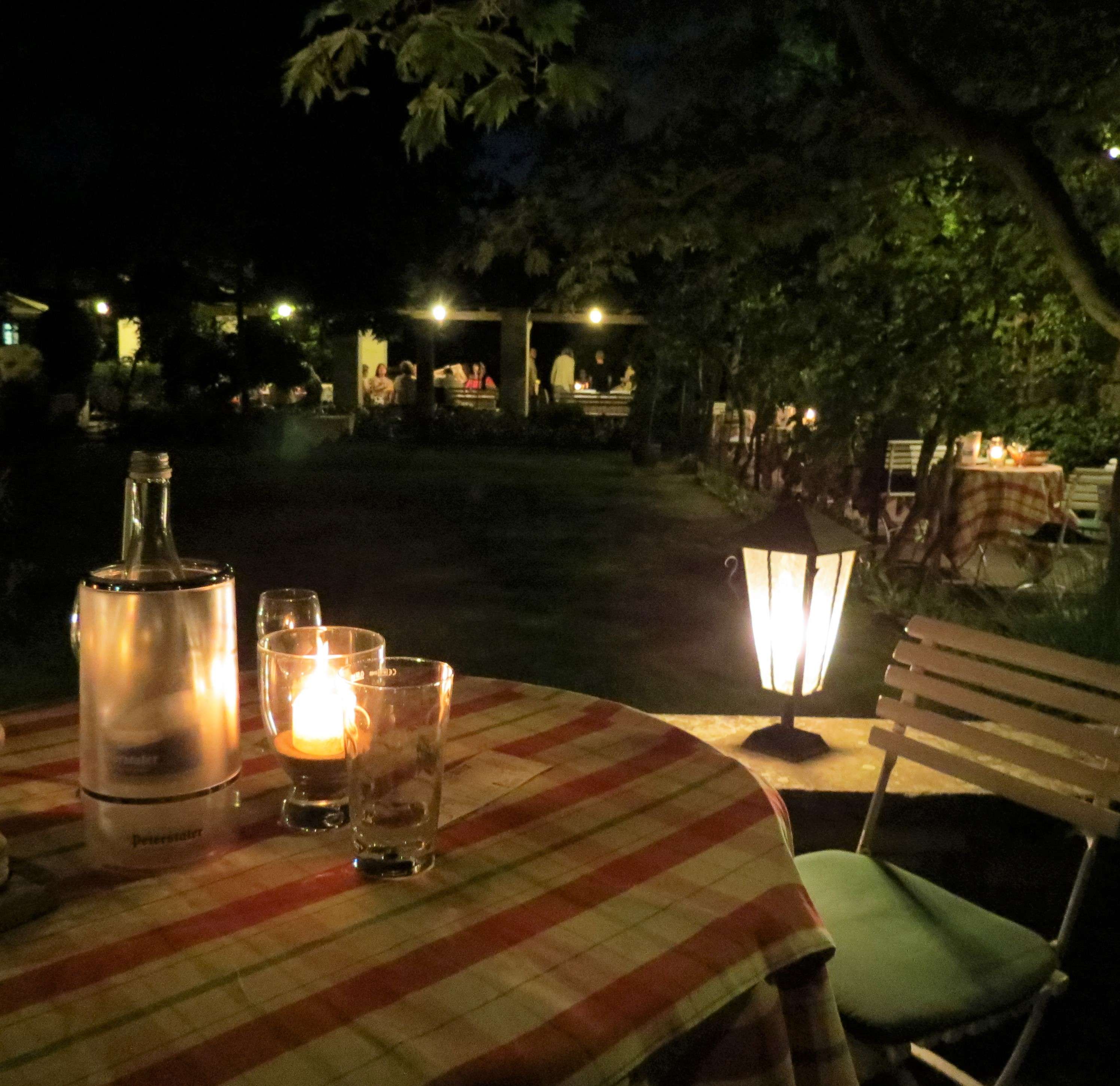 Und wenn die Sonne untergeht, tauchen die Lichter und Kerzen den Garten in ein ganz besonderes Licht! Ein absolutes Sommer-Muss hier mal vorbeizuschauen und Essen, Wein und Atmosphäre zu genießen!
