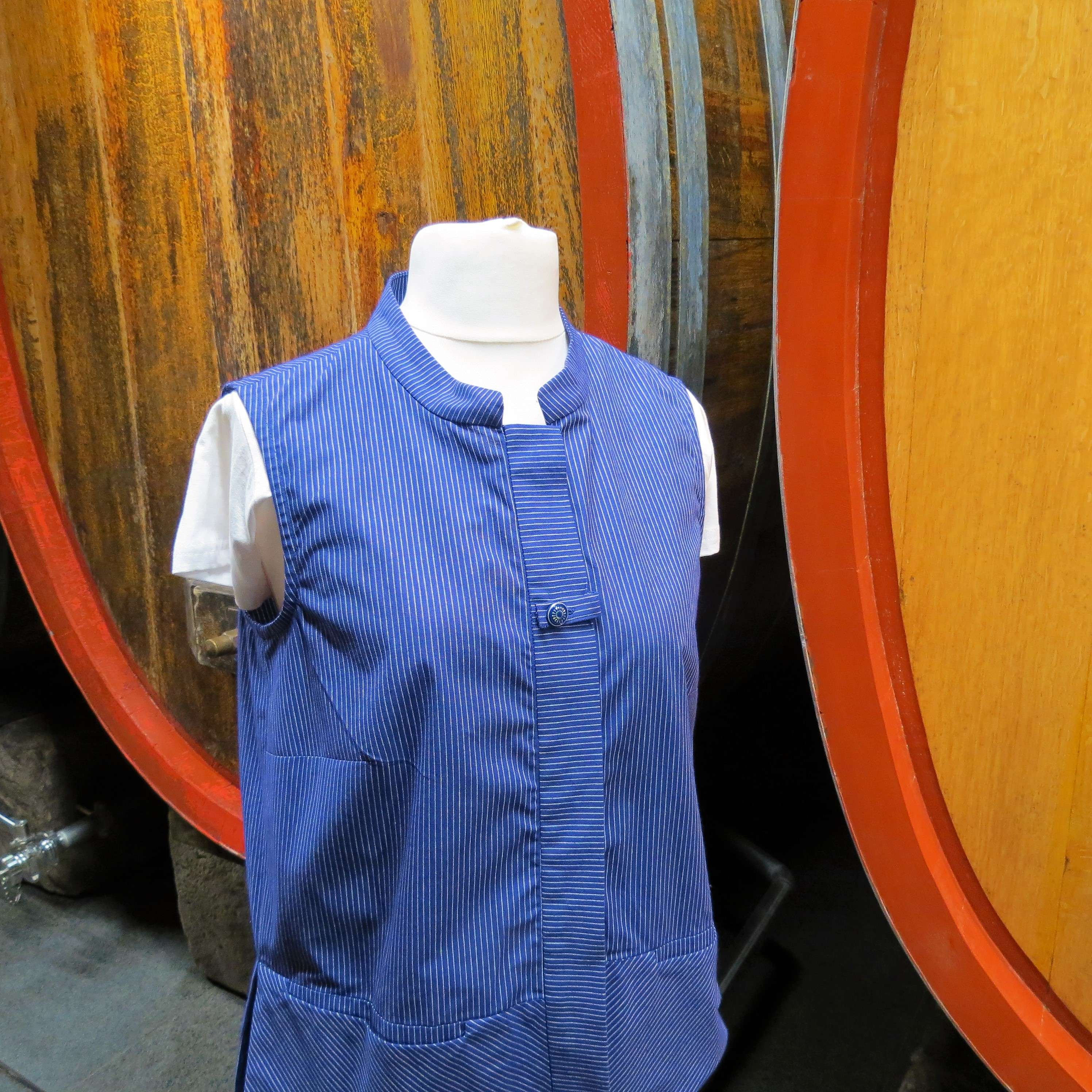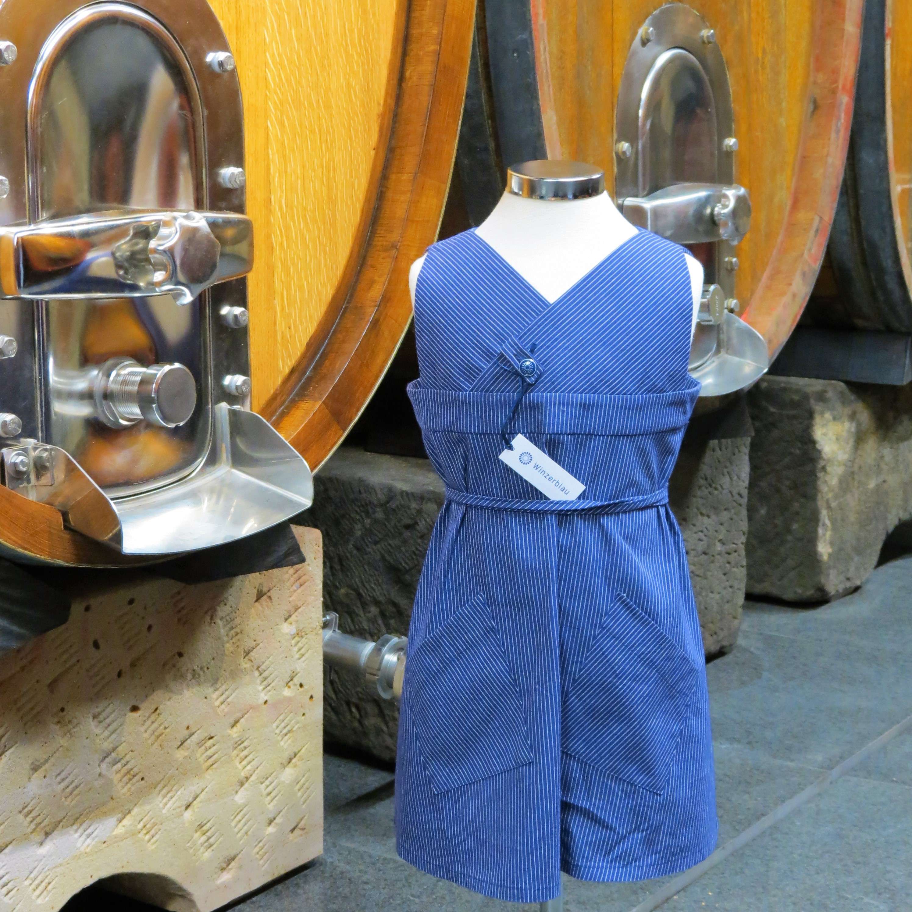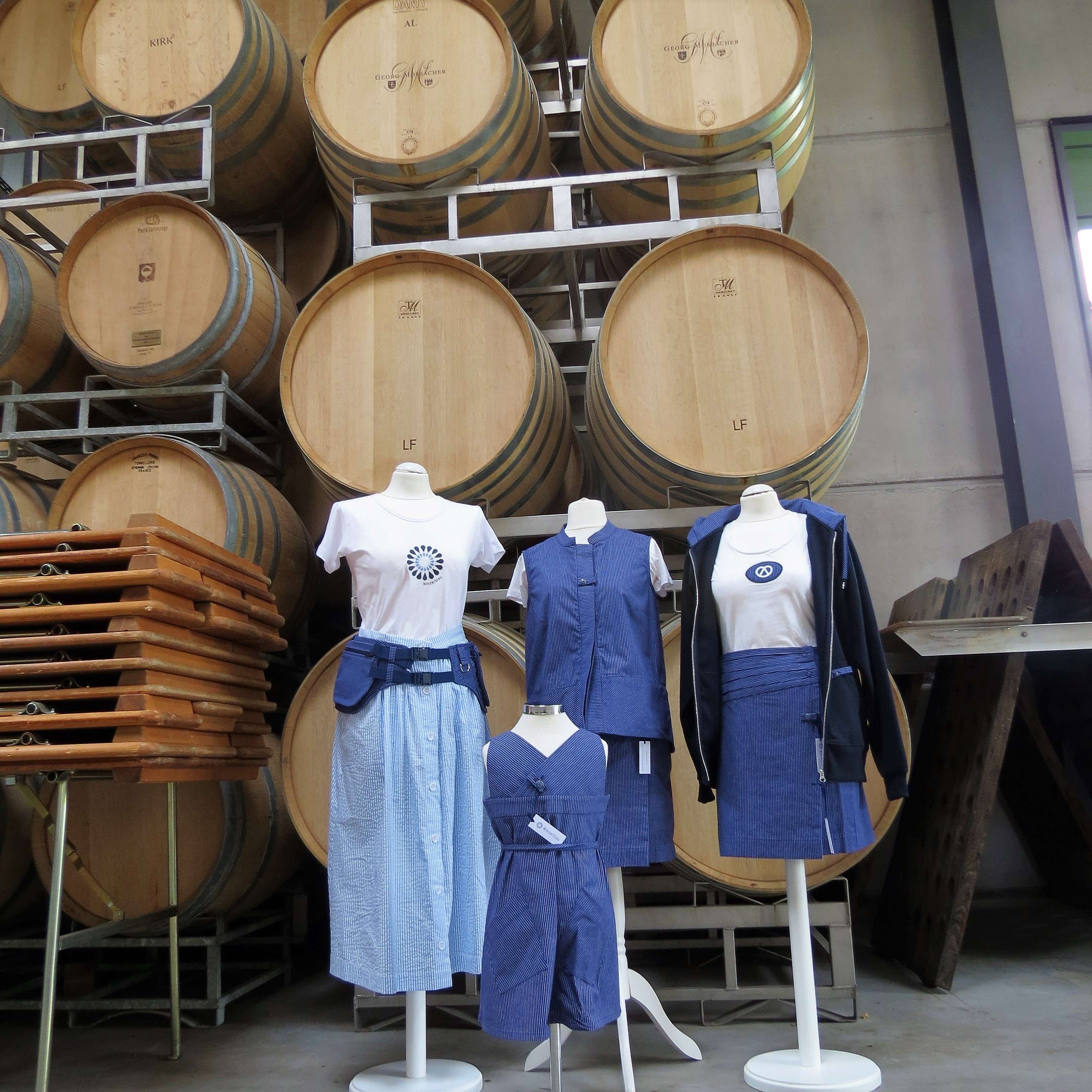 2014 wurde das Unternehmen gegründet. Magret Schleef, studierte Agraringenieurin, und ihre damalige Geschäftspartnerin sorgten mit Winzerblau für die Neubelebung eines traditionellen Stoffs. Die Kleidungsstücke sind sowohl funktionell als auch stylisch durch das Design und die Schnitte, die oft mit dem Streifenmuster spielen. Sie sind strapazierfähig, robust und langlebig – kein Wunder, denn der gewebte Baumwollstoff musste ja auch dem Arbeitsalltag der Winzer standhalten.