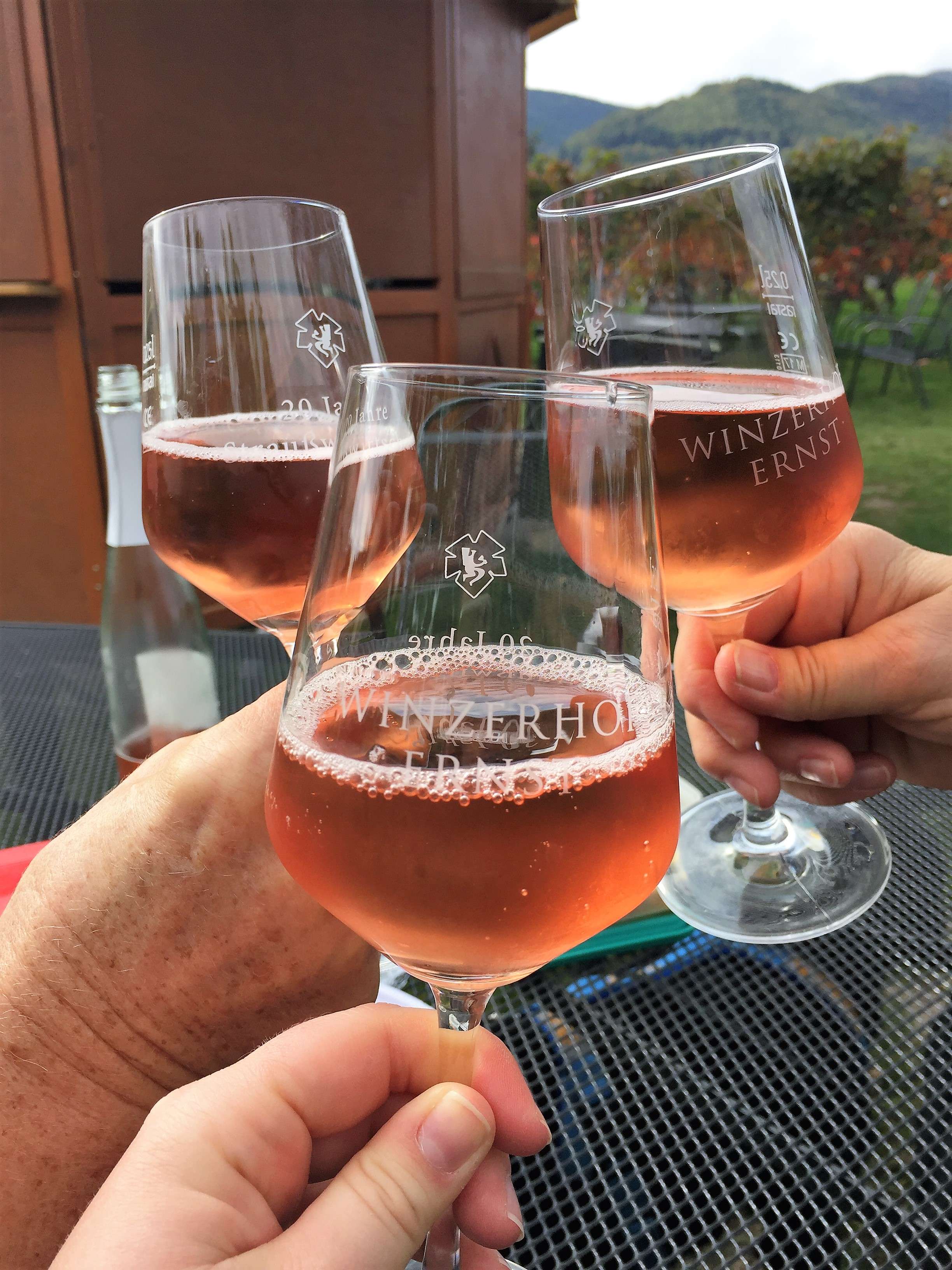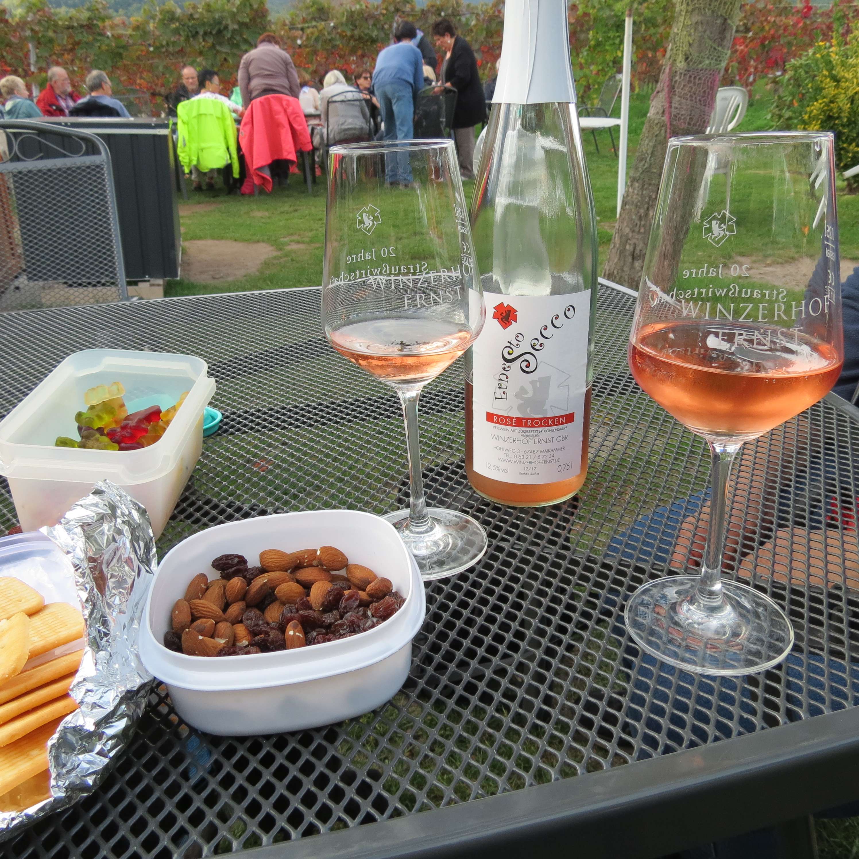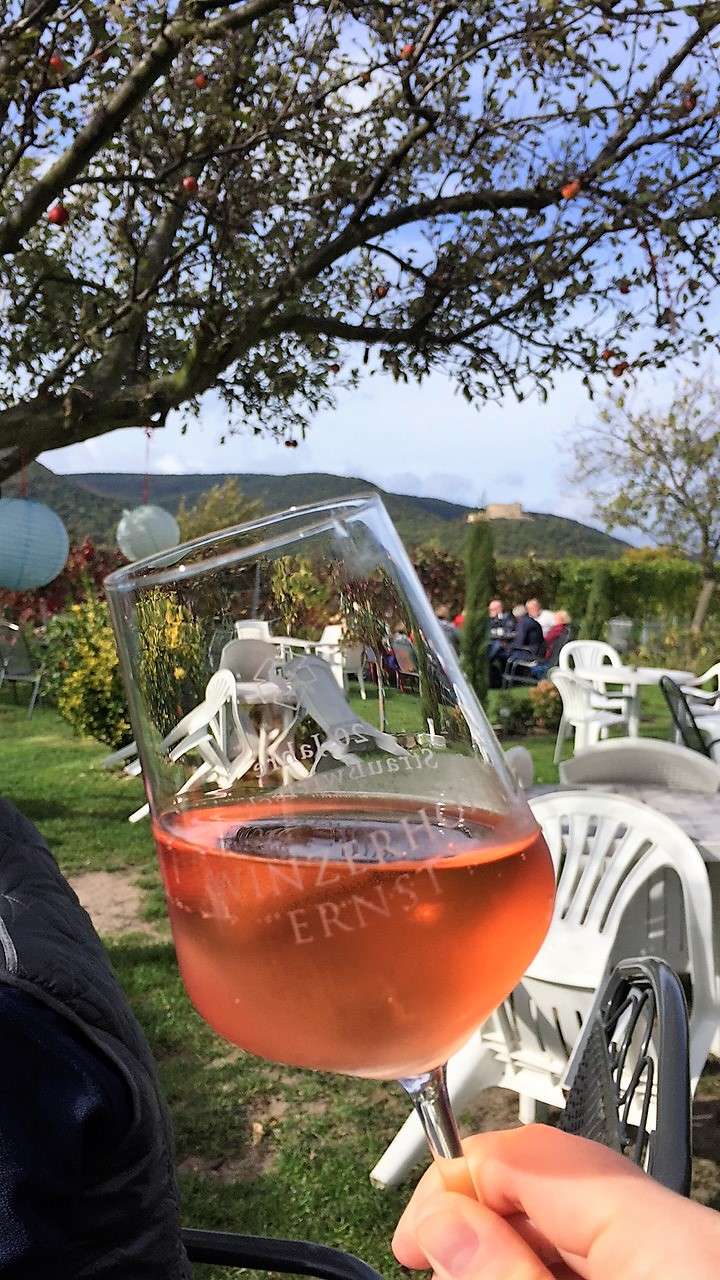 Letzte Woche war ich oberhalb von Maikammer unterwegs. Es ging durch die Weinreben mit Blick auf das Hambacher Schloss und zum Abschluss in die Straußwirtschaft vom Weingut Ernst. Ich war total überrascht, wie viele von Euch das kannten, denn ich war zum ersten Mal dort. Es wird aber definitiv nicht das letzte Mal gewesen sein. Man sitzt inmitten der Reben und zwischen Apfelbäumen, kann seine eigene Brotzeit mitbringen und beispielsweise einen leckeren Ernesto-Secco trinken. Gegen Abend würde ich auch gerne nochmal wiederkommen, denn in den Bäumen hingen Lampions und in den Reben waren Lichterketten angebracht – in der Dämmerung muss das sicher super aussehen! Das muss allerdings bis nächstes Jahr warten, denn heute ist leider der letzte Tag, an dem die Straußwirtschaft geöffnet hat!