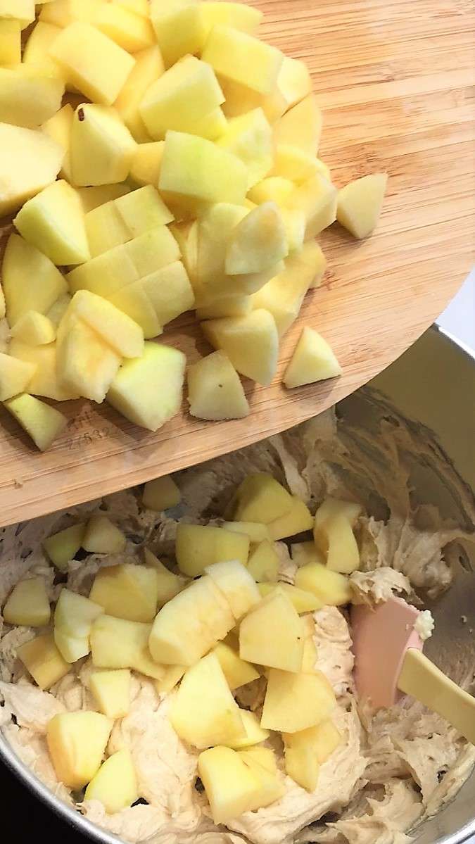 Eine Springform mit Backpapier auslegen und einfetten. Den Backofen auf 160 Grad Umluft vorheizen. Die Äpfel schälen, entkernen und in kleine Würfel schneiden. Die Butter schaumig rühren und mit Zucker und Vanillezucker zu einer geschmeidigen Masse verrühren. Die Eier hinzugeben und einige Minuten schlagen. Zimt, Salz und Vanilleextrakt dazugeben und verrühren. Mehl und Backpulver vermischen und zur Butter-Ei-Masse hinzugeben. Nüsse zum Teig geben und zu einem festen Teig verrühren. Zum Schluss die Apfelwürfel unter den Teig ziehen.