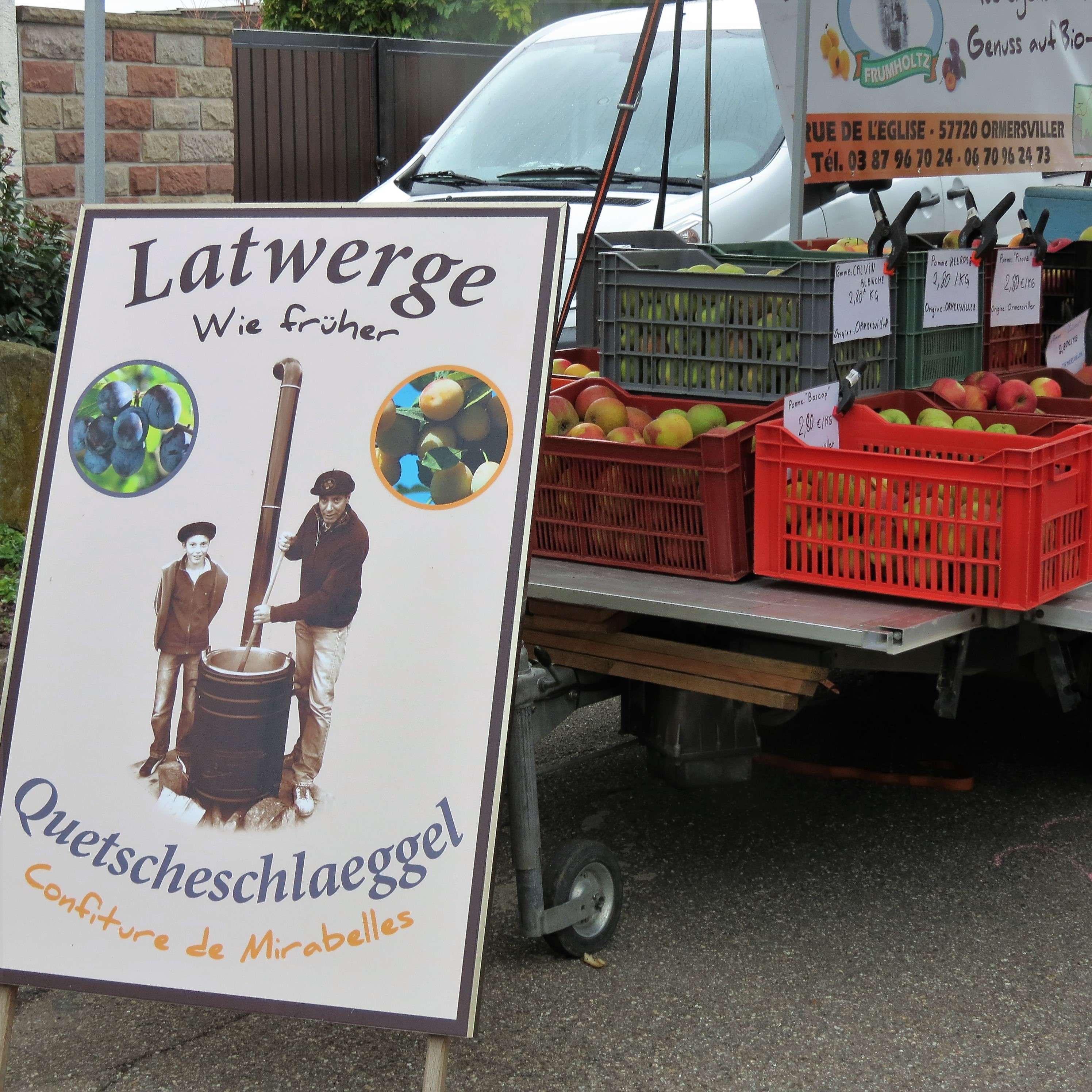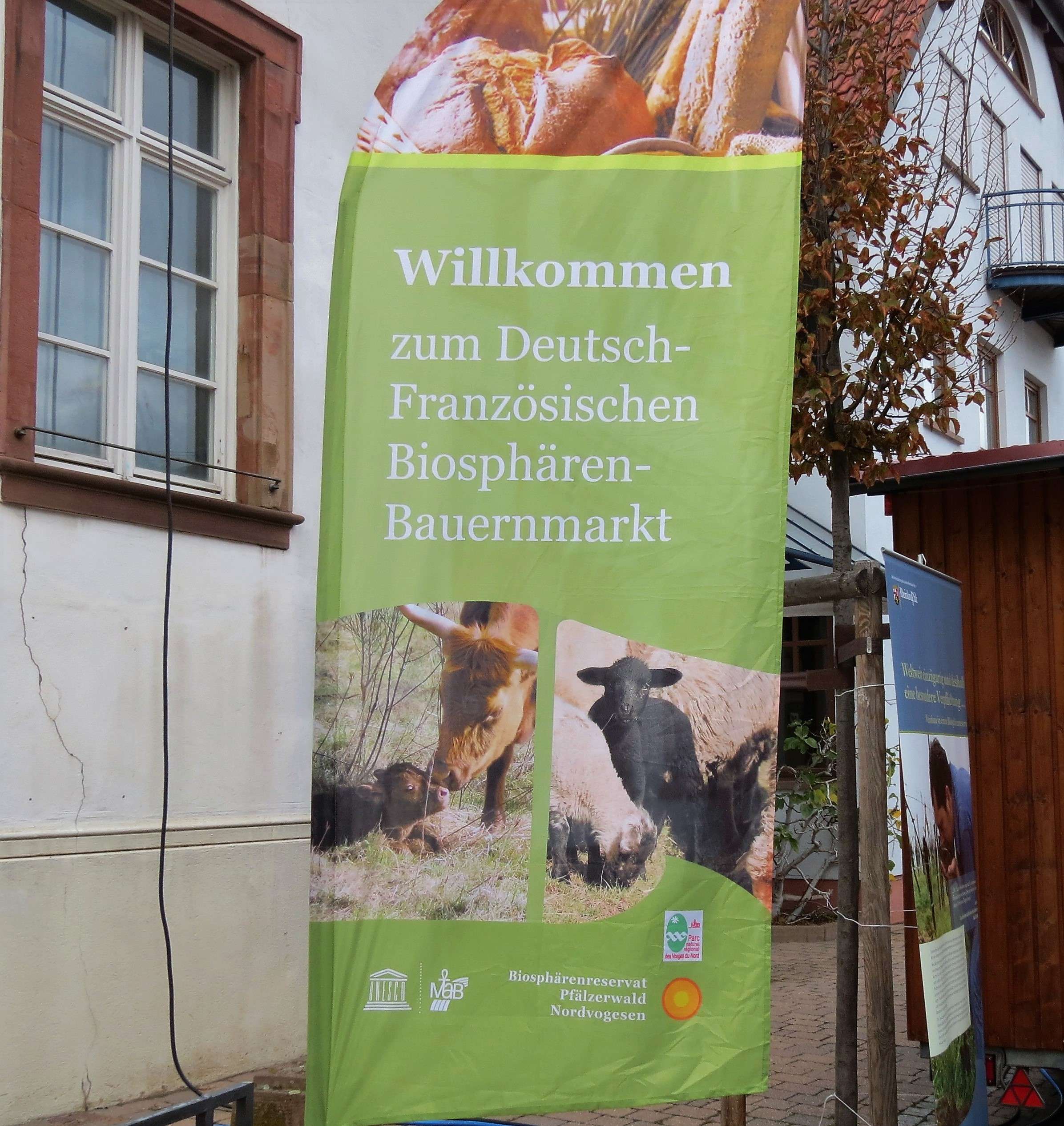 vor einigen Wochen war ich auf Empfehlung von Magret Schleef (Ihr kennt sie bereits aus dem Winzerblau-Beitrag) auf dem Deutsch-Französischen Biosphären-Bauernmarkt in Kirrweiler. Die Märkte fanden an mehreren Terminen dieses Jahr statt (darunter auch in Weißenburg und Grünstadt), aber Kirrweiler war leider der letzte Termin. Ich kannte die Märkte vorher nicht, finde es aber eine schöne Idee, deutsche und französische Verkäufer, die alle regionale und selbsthergestellte Waren präsentieren, auf einem Markt zu vereinen.