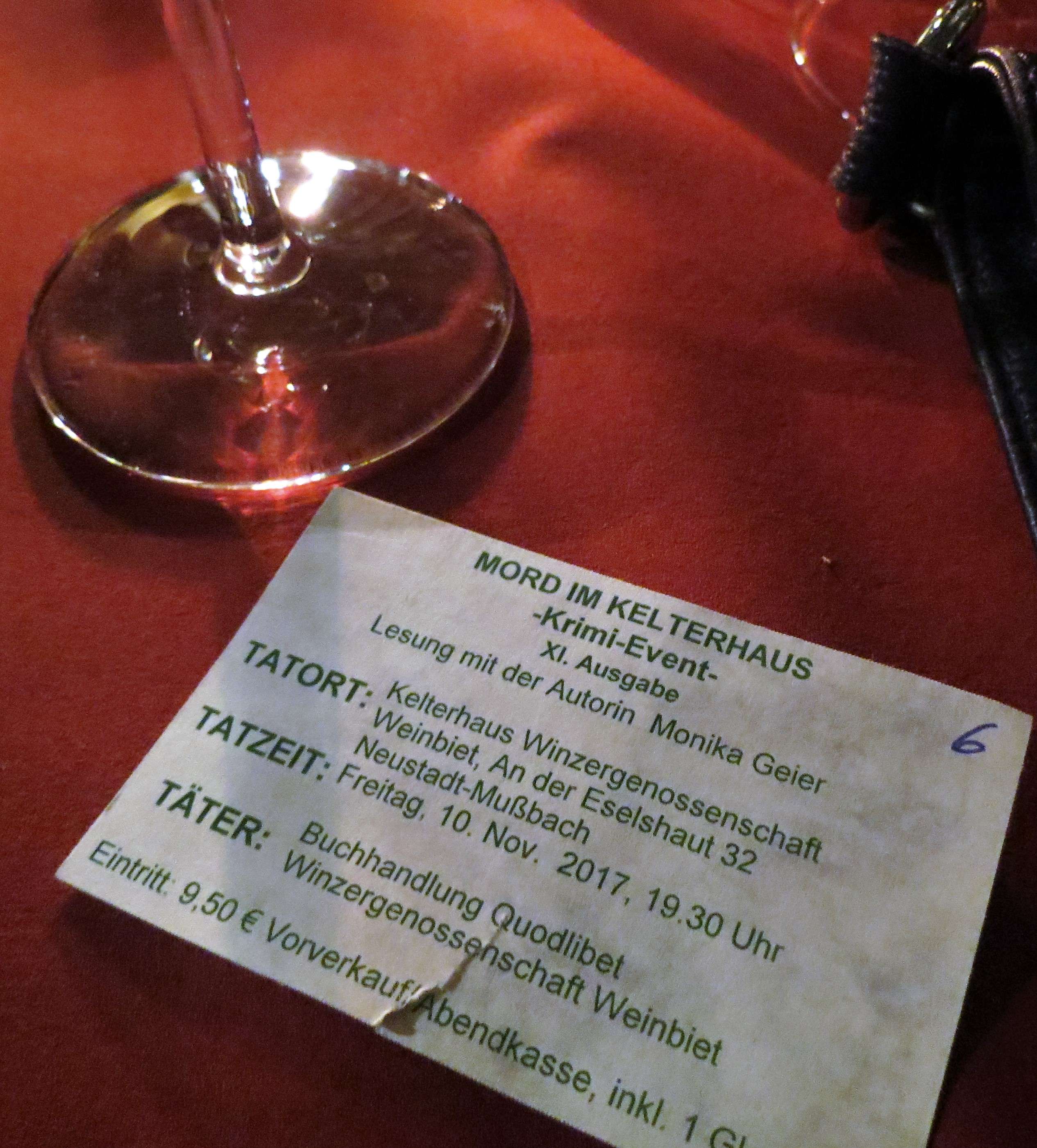 letzte Woche hieß es bereits zum elften Mal wieder „Mord im Kelterhaus“. Im Kelterhaus der Winzergenossenschaft Weinbiet in Mußbach wurde es wieder spannend, als Monika Geier aus ihrem Buch „Alles so hell da vorn“ vorlas.