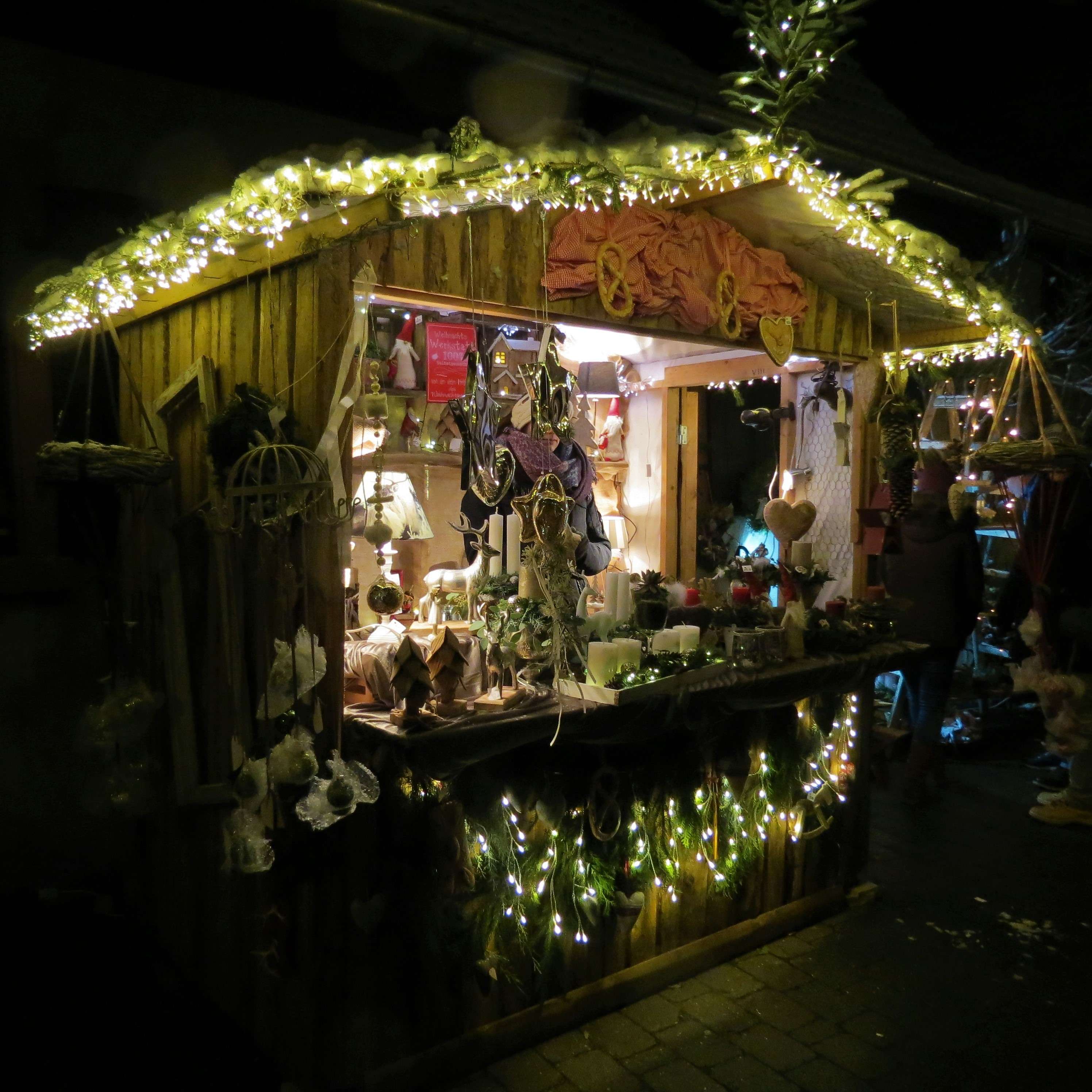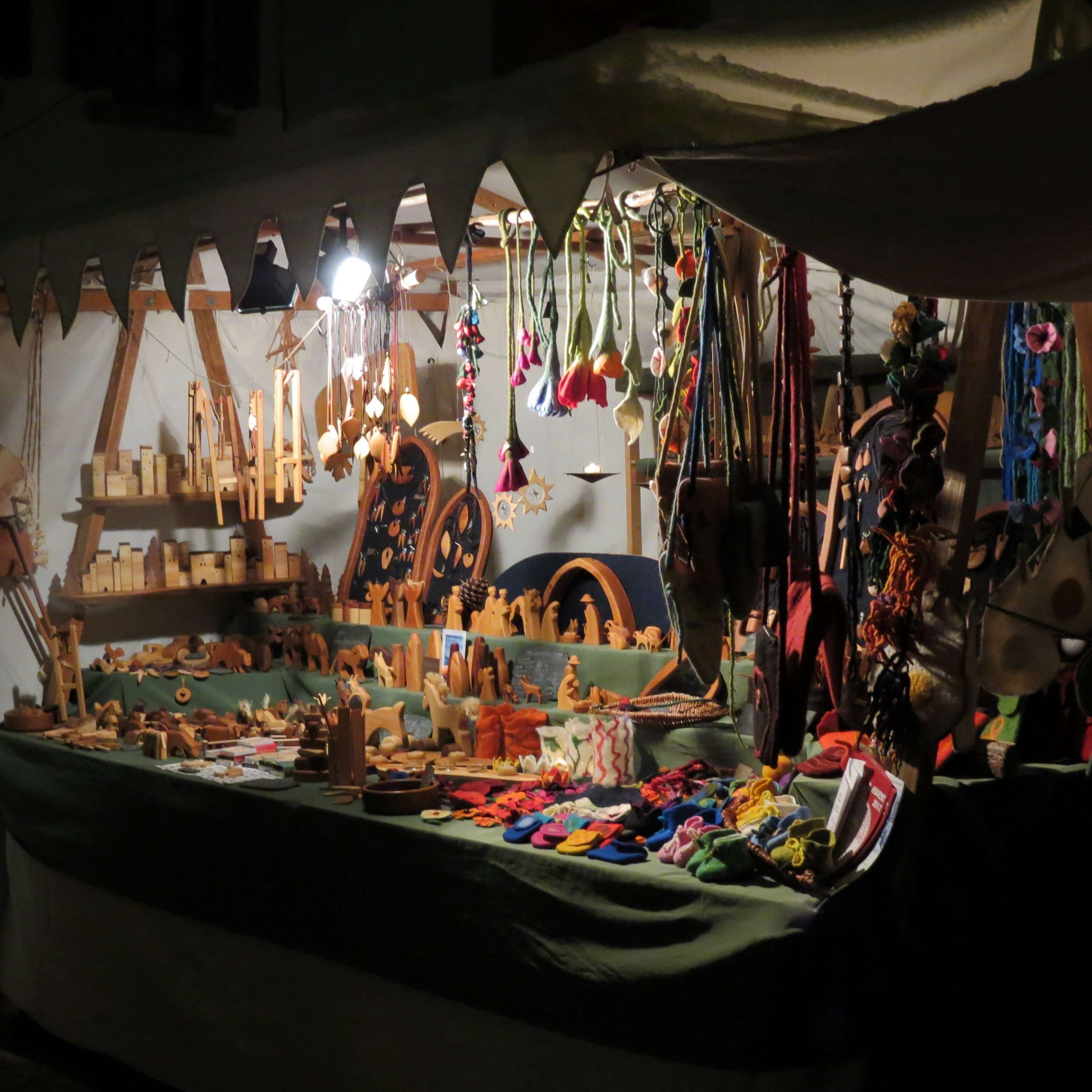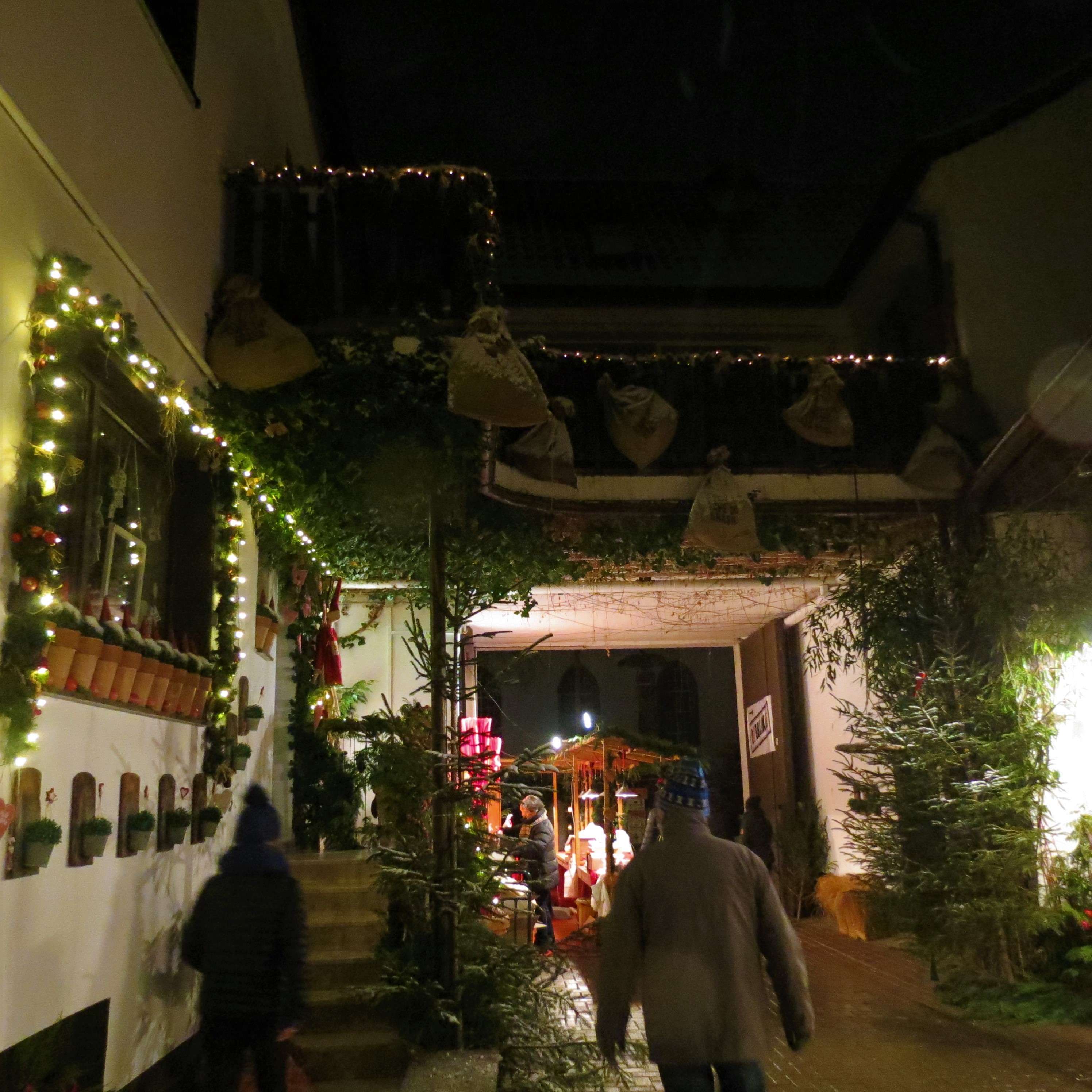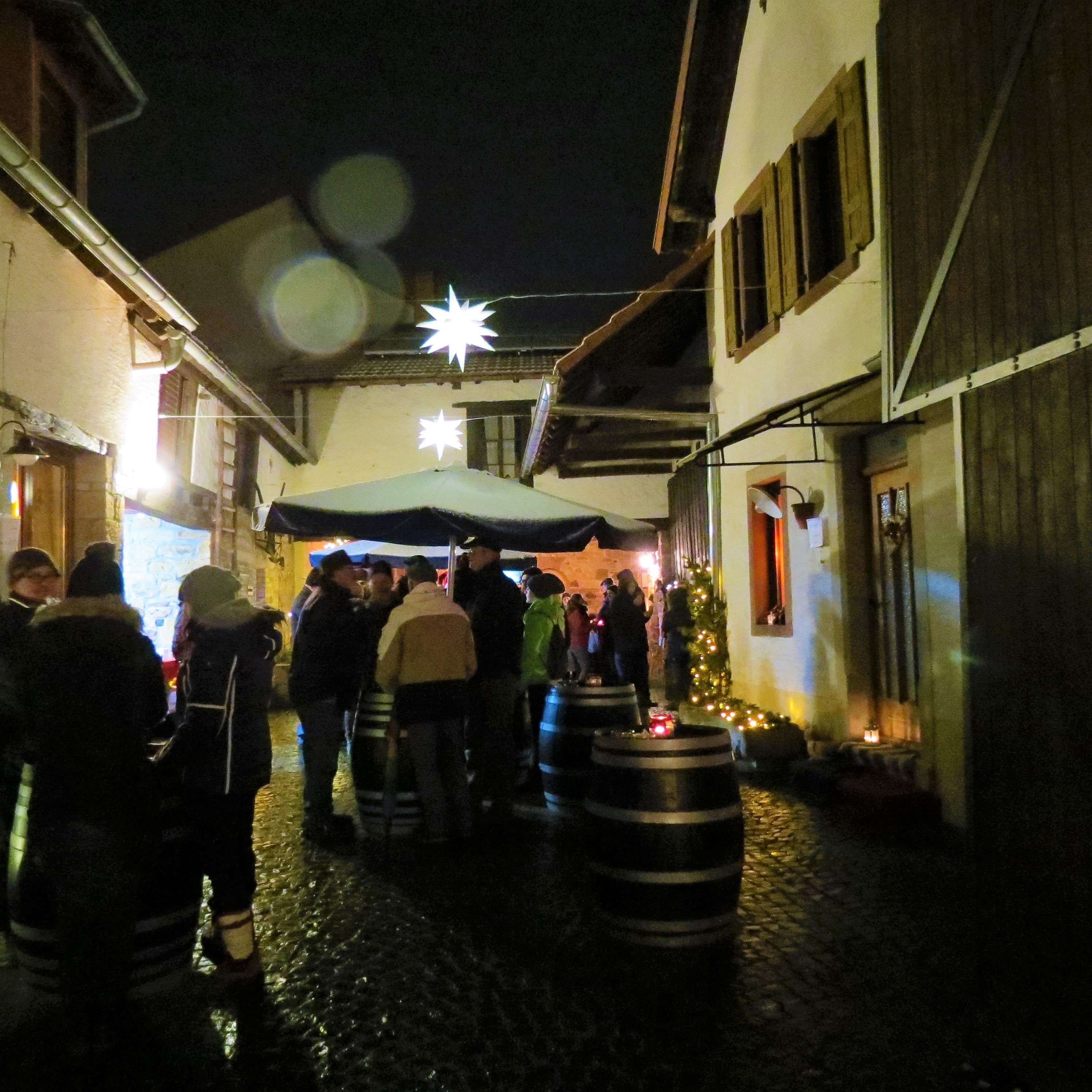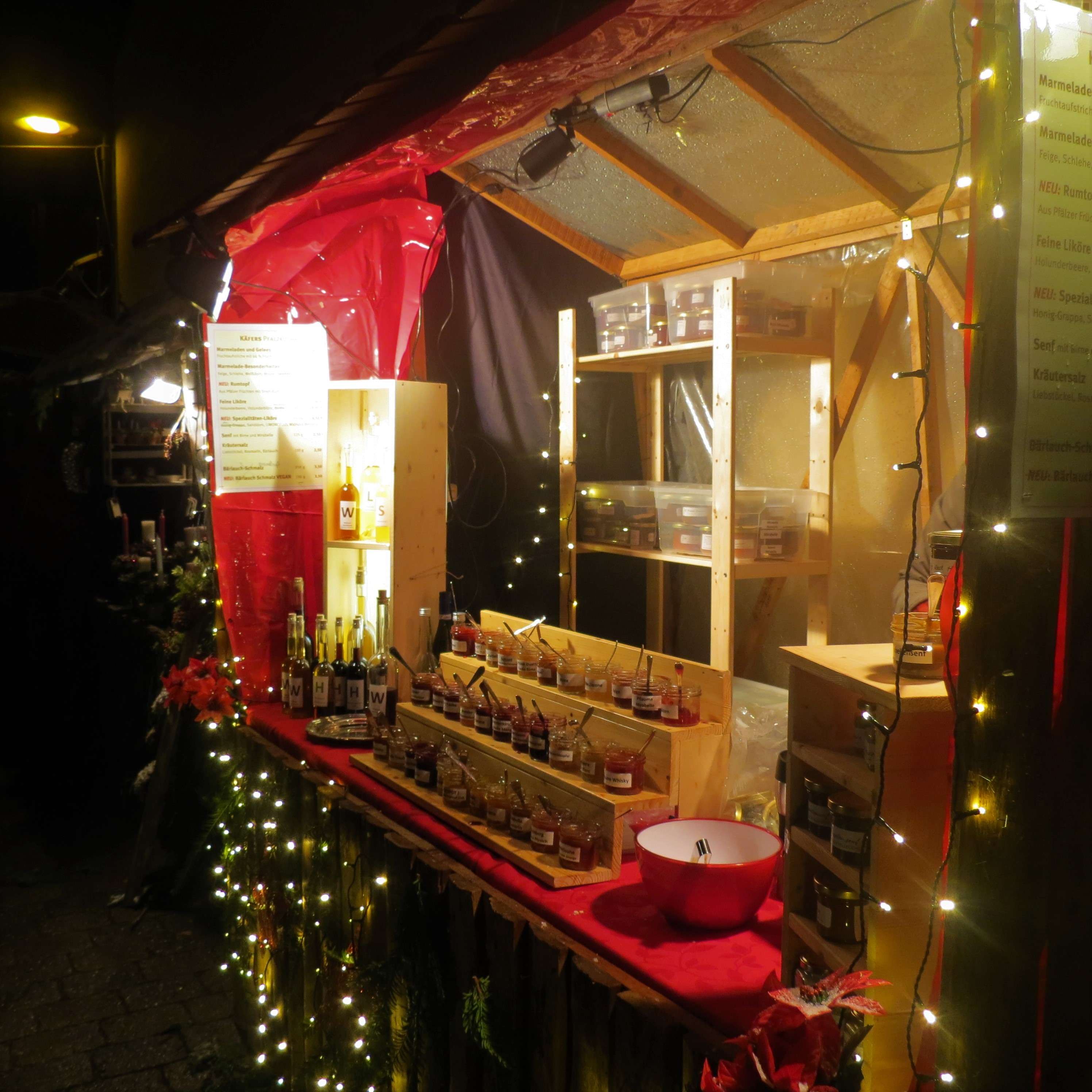Der Markt findet in der Leininger Straße, deren Seitengassen und in einigen Innenhöfen statt. Im alten Gewölbekeller der Gemeindeverwaltung fanden sich verschiedene Aussteller ein mit Weihnachtsdeko, selbstgenähten Kleidungsstücken und wunderschönen Lichterbögen. Auch in den Straßen und Höfen waren einige schmucke Stände aufgebaut. Die Kinder der Kindertagesstätte Bobenheim am Berg hatten Plätzchen gebacken; es gab Gewürze, Süßwaren und auch mal Handwerkliches zwischen Keltertanks.
