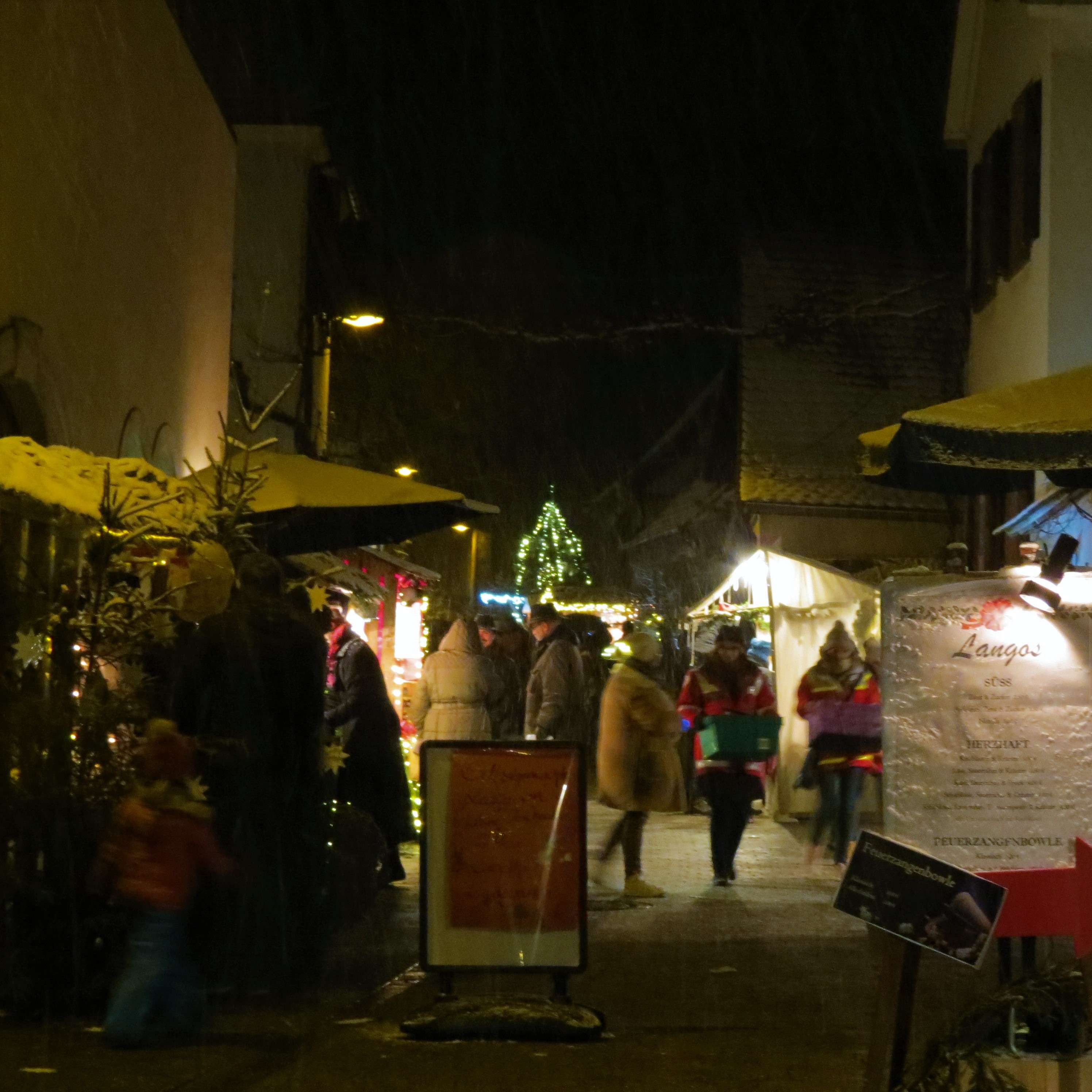 Am letzten – ziemlich verschneiten – Sonntag ging es über weiße Straßen nach Bobenheim am Berg auf den Belzenickelmarkt. Wir waren erst abends unterwegs, aber bereits am frühen Nachmittag trifft hier normalerweise ein besonderer Gast ein: Der namensgebende Belzenickel streift durch den Ort – standesgemäß mit Mantel, Mütze, und Rute. Begleitet wird er von seinen Helfern, die Äpfel und Nüsse an die Kinder verteilen.