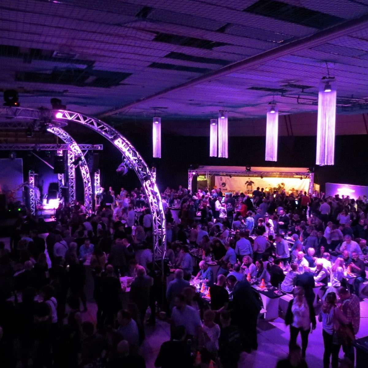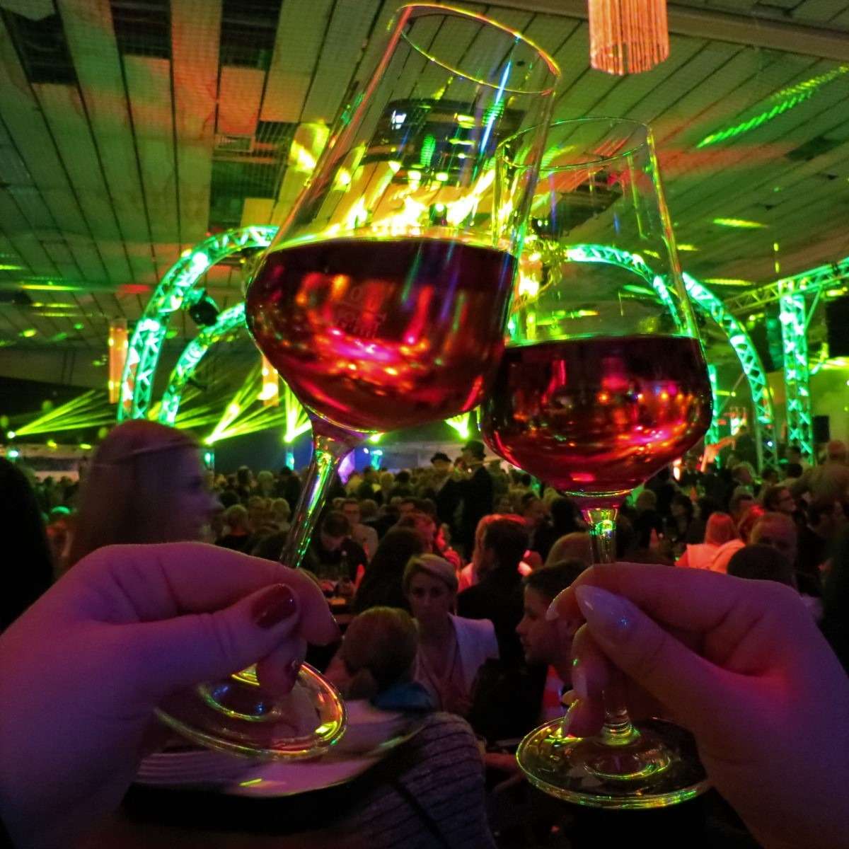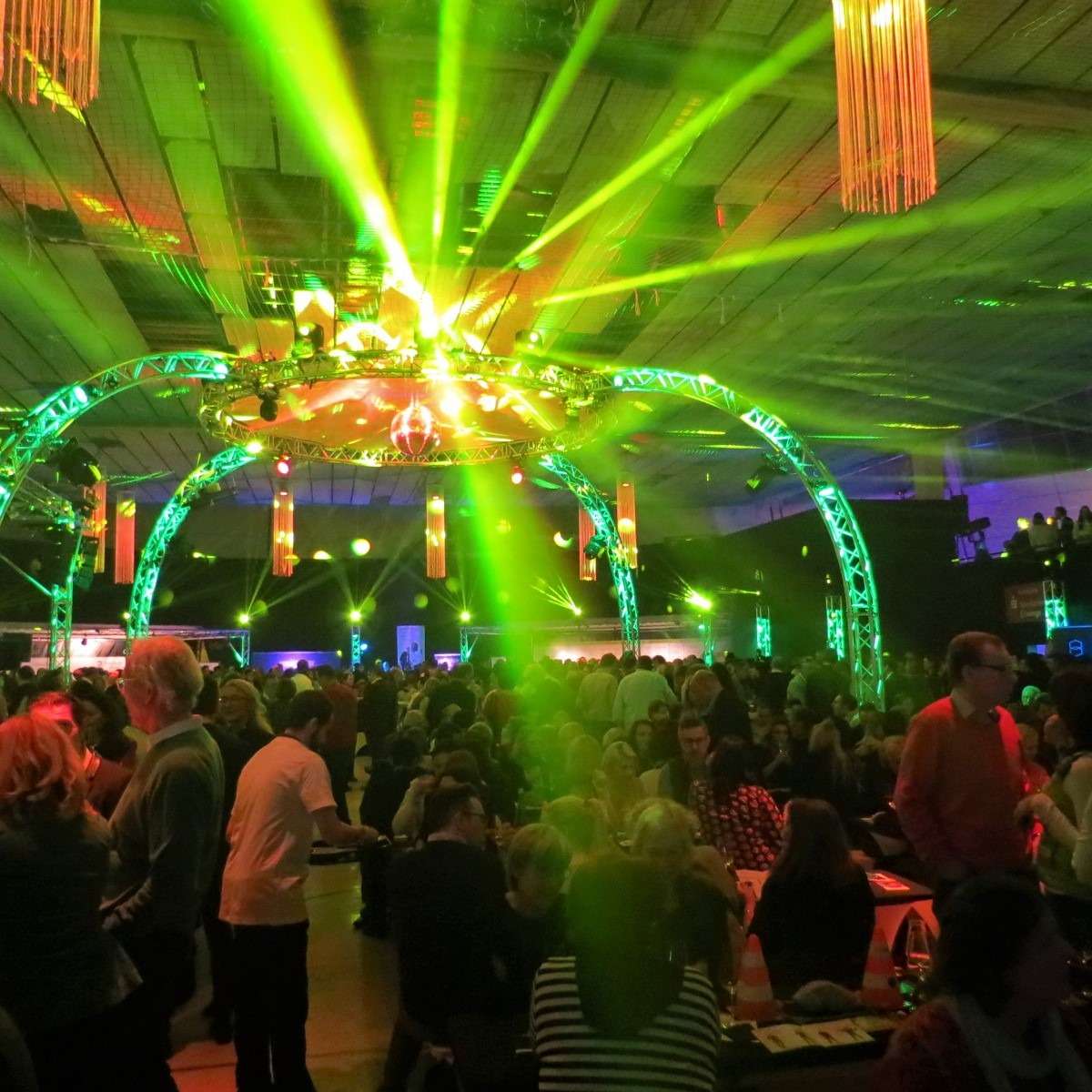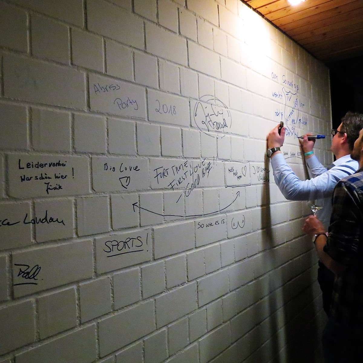 Ein würdiges Ende für die Rundsporthalle und ein toller Abend für so viele Gäste, die sich auch noch an den Wänden der Flure verewigten. In der Mitte der Halle gab es eine Bühne mit Tanzfläche, neben der zu beiden Seiten die Tresen der Winzer und Köche aufgebaut waren. Daneben gab es eine Fotobox mit Red Carpet Feeling, eine Candybar, eine Eisbar und, und, und …. Auf der Empore gab es Weincocktails, eine Kaffeelounge mit gebrannten Mandeln und vielen anderen Leckerbissen. Nicht zu vergessen: der tolle Blick über das gesamte Partyvolk in der Halle!