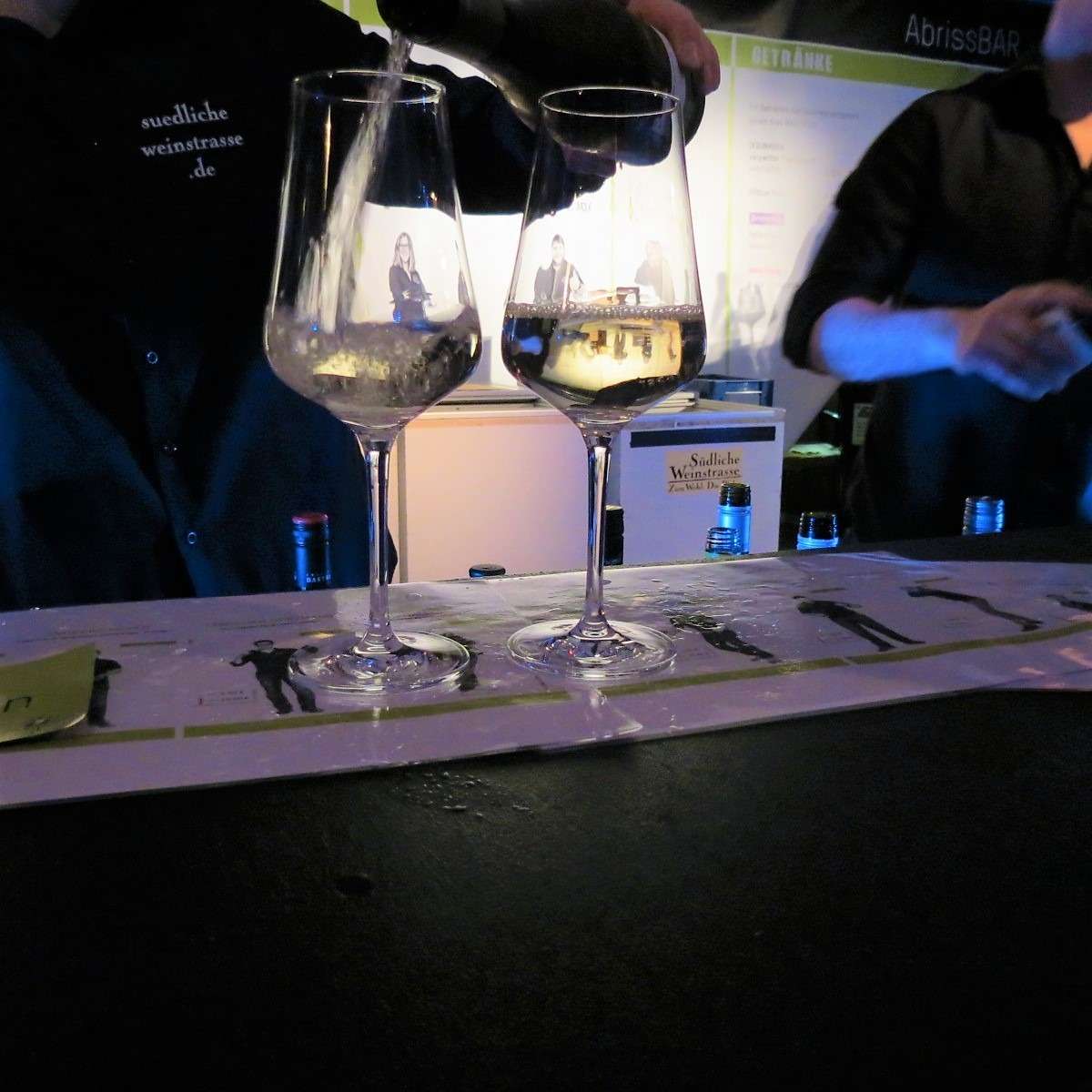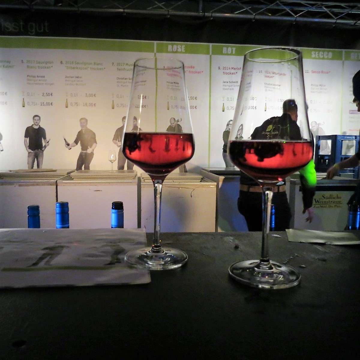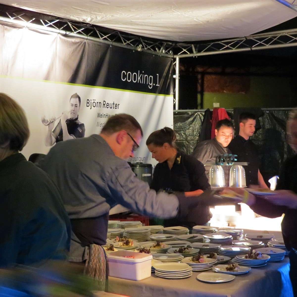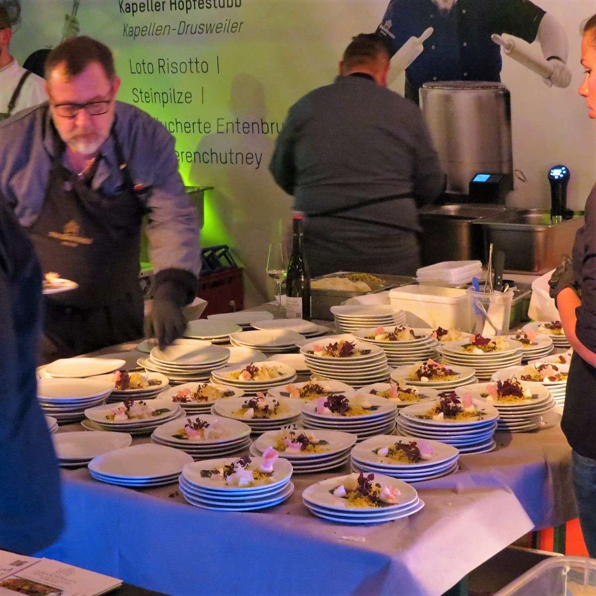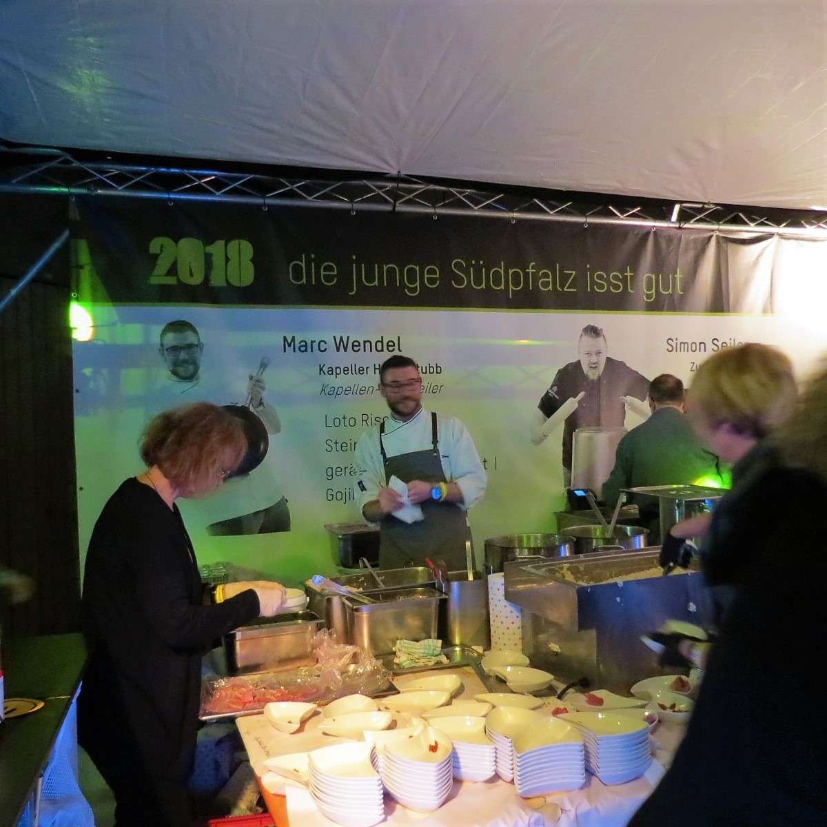 Für uns ging es weiter ans andere Ende der Halle zur UnkaputtBAR, wo wir die Scheurebe vom Weinhaus Franz Hahn probierten. An der Bar gab es genug Gelegenheiten auch mit den Winzern selbst, die die Weine persönlich ausschenkten, ins Gespräch zu kommen. An jeder Bar und Kochstation waren Fotos der Winzer, Winzerinnen und Köche auf einer großen Plakatwand zu sehen und so wusste man sofort, welcher Winzer zu welchem Wein, beziehungsweise welcher Koch zu welchem Gericht gehört – so viel persönlicher und eine tolle Idee, wie ich finde!