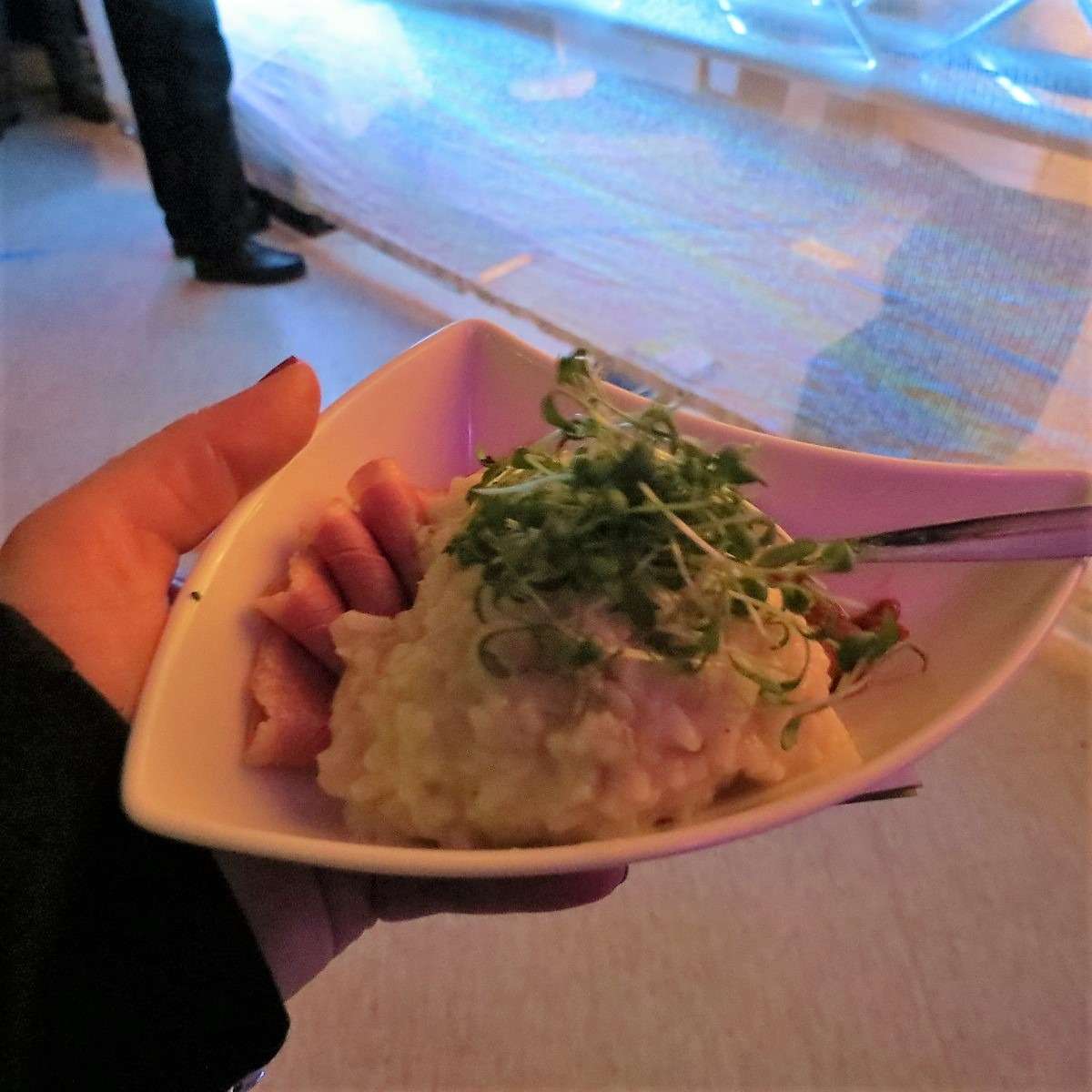 Ich entschied mich für Loto-Risotto mit Steinpilzen, geräucherte Entenbrust und Gojibeerenchutney von einem „alten Bekannten“, Marc Wendel, dem Küchenchef der Kapeller Hopfestubb, der auch unser leckeres „Kraut und Rüben“-Menü vom Genießerwettbewerb „So schmeckt die Südpfalz“ gezaubert hat. Auch dieses Mal hat Marc wieder voll ins Schwarze getroffen und für einen perfekten kulinarischen Auftakt gesorgt. Das Risotto war ein Traum und ich hätte zu gerne den Topf zum Auslöffeln bekommen!