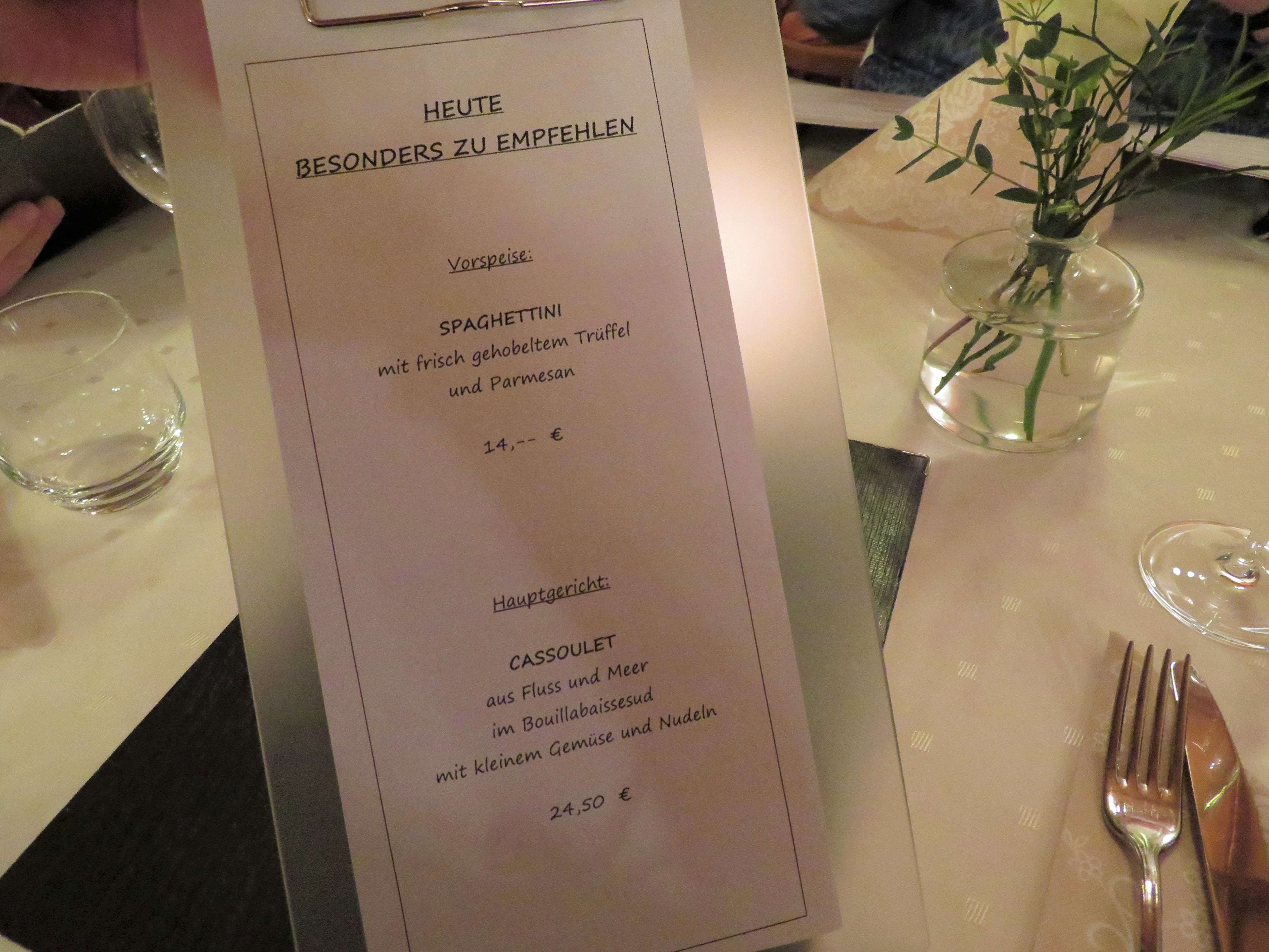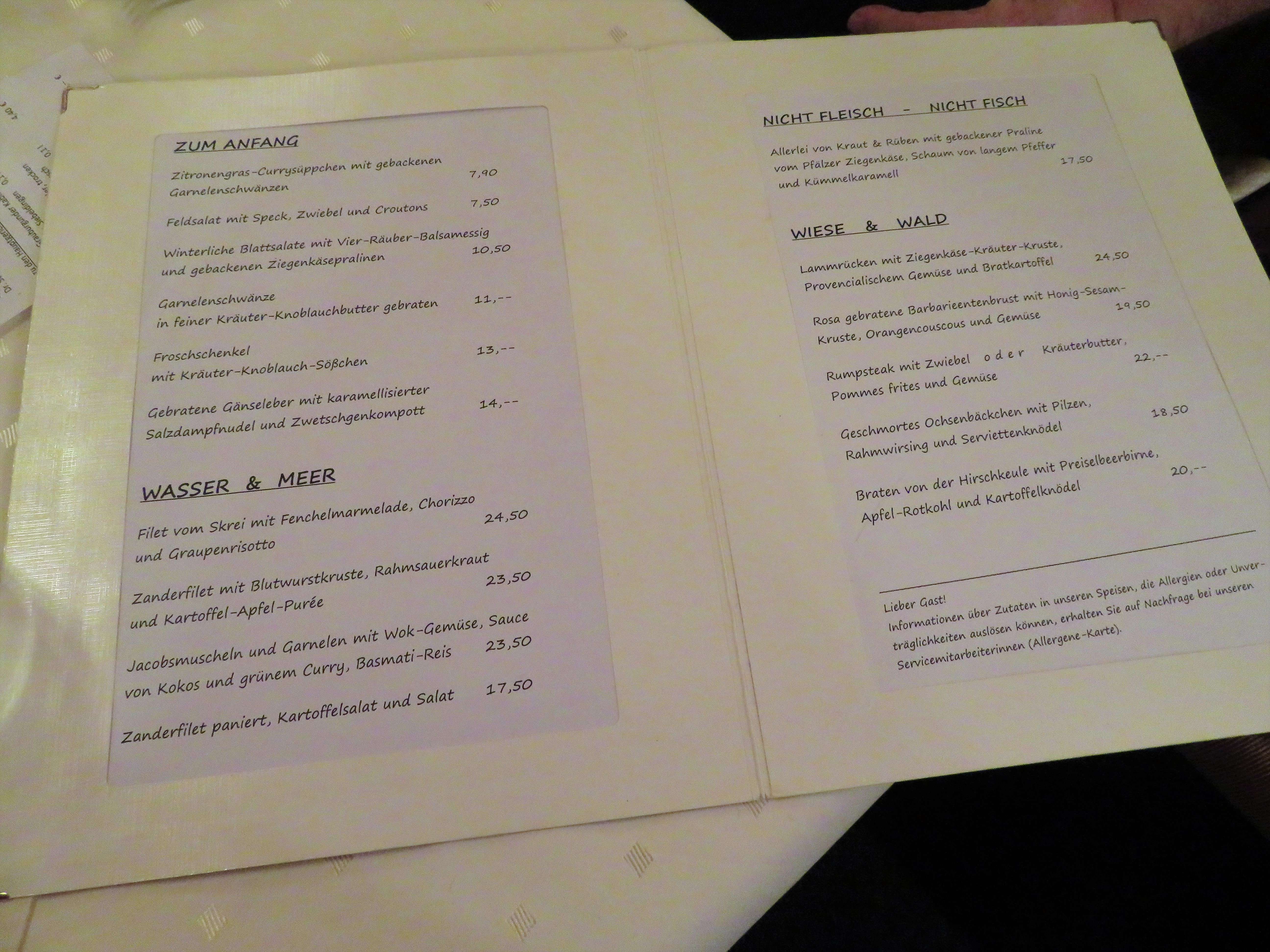 Mit meinem Freund und meinen Eltern war ich bei meinem zweiten Besuch im Gasthof Zum Lamm in Neupotz. Das gutbürgerliche Restaurant hat auf seiner Speisekarte so einige Leckerbissen zu bieten. Neben asiatischen Einschlägen (Honig-Sesam-Kruste, Wok-Gemüse und Curry) merkt man hier auch die Nähe zu Frankreich, denn Froschschenkel, Gänseleber und Cassoulet waren ebenfalls auf der Karte zu finden. Regionale Spezialitäten, die teilweise mit mediterranen Beilagen ergänzt werden und außergewöhnliche Kombinationen, wie Zanderfilet mit Blutwurstkruste, lassen die Spannung steigen auf das, was kommt.