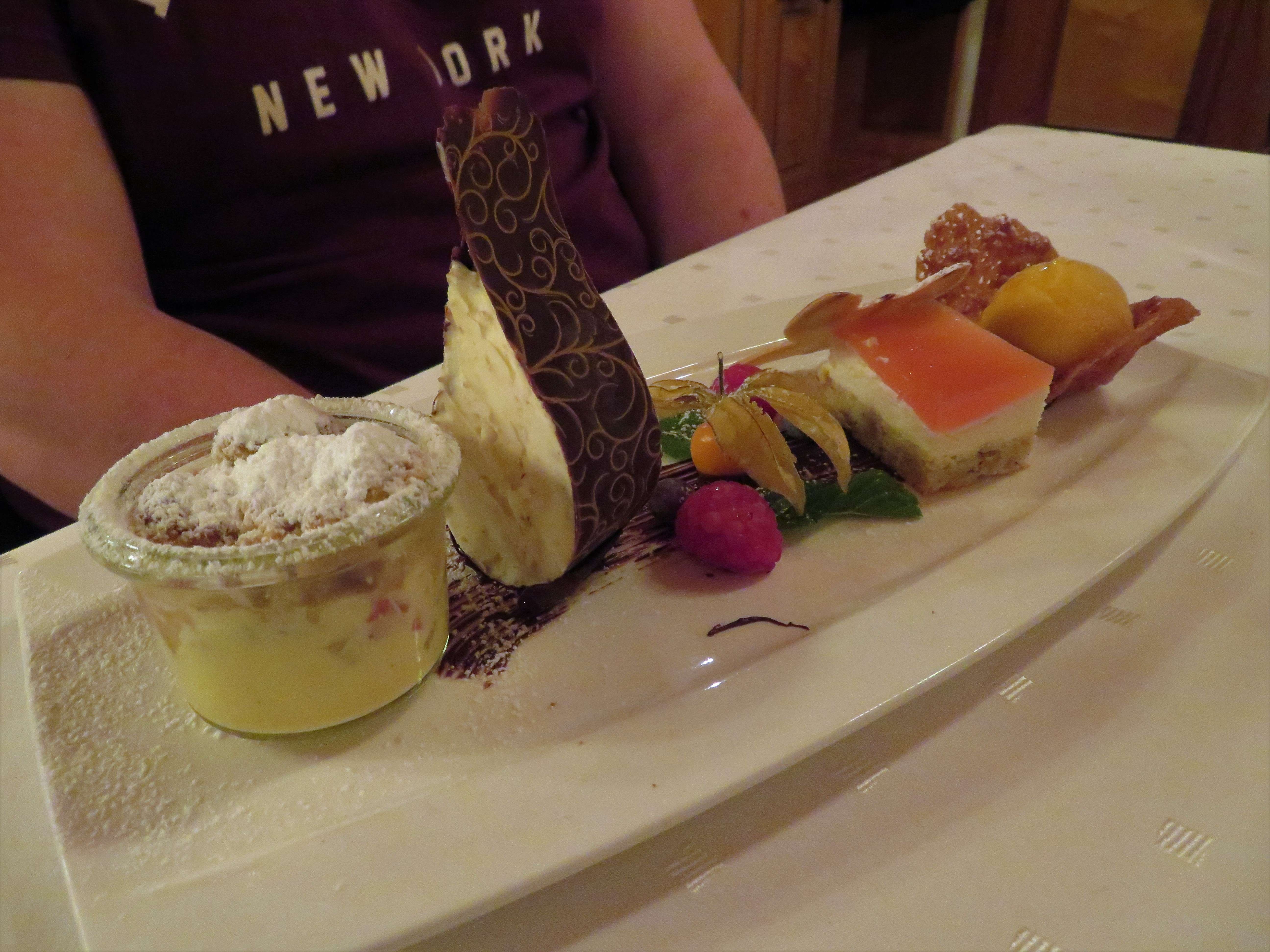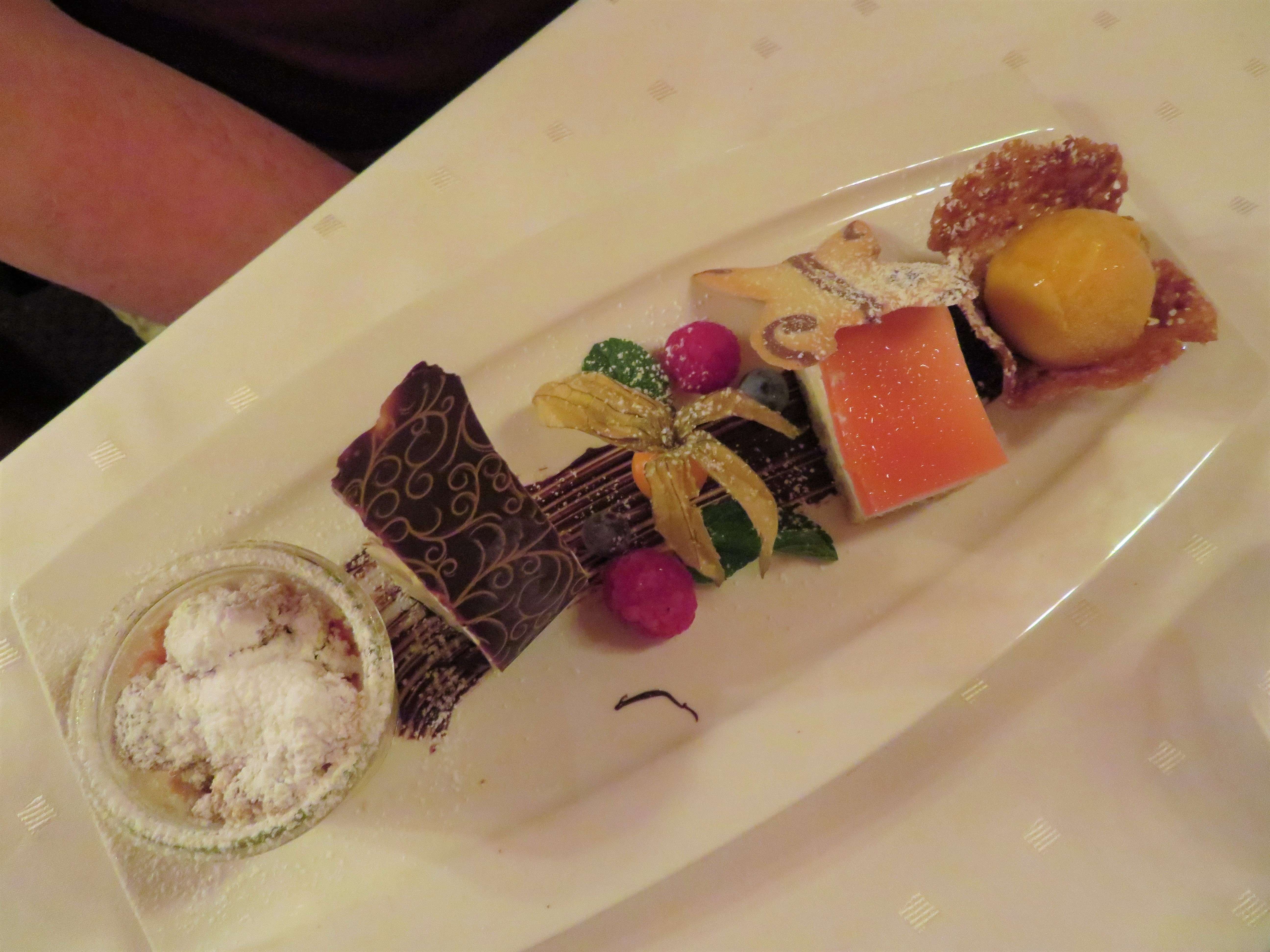 Wer außerhalb des „Kraut und Rüben“-Menüs mal beim Lamm vorbeischaut, der sollte sich die Dessertvariation nicht entgehen lassen. Meinen Freund erwartete ein Teller voller süßer Genüsse, darunter Crumble, Sorbet und vieles mehr.