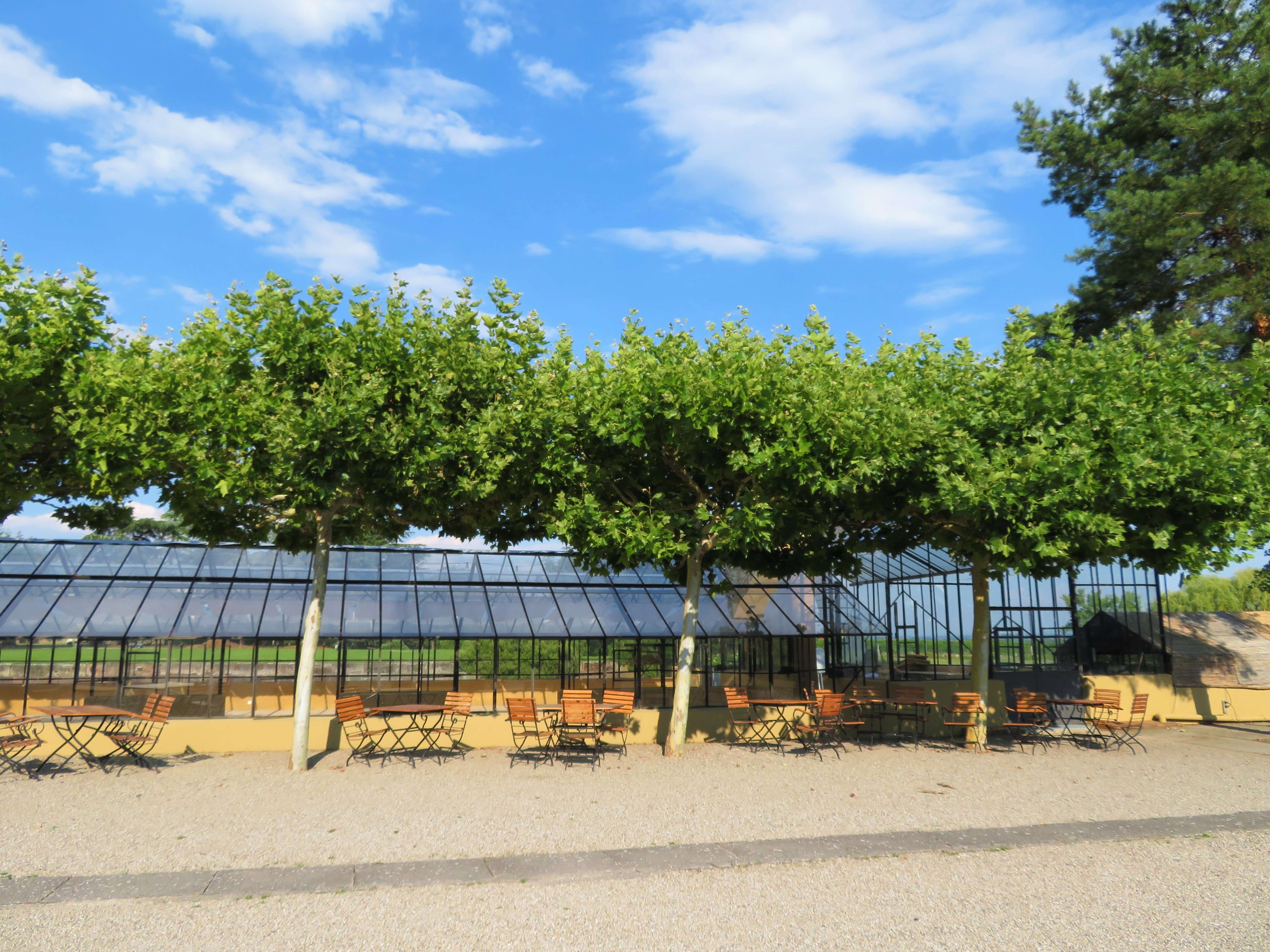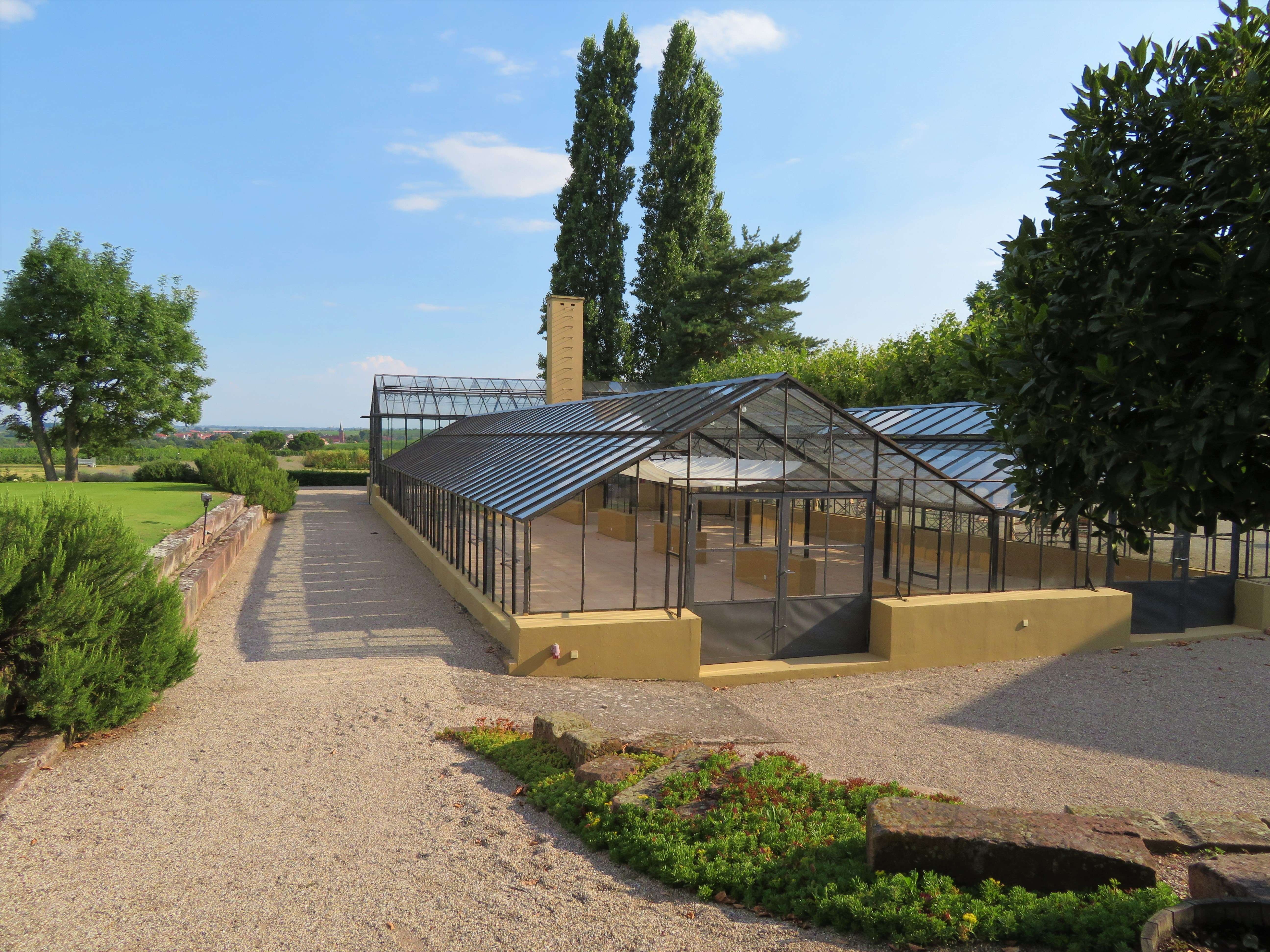 Während wir durch den Garten schlenderten, erzählte uns Frau Bettina Bürklin-von Guradze von der Geschichte dieses Ortes und welche Erinnerungen sie damit verbindet. Dort, wo früher Gemüsebeete angelegt waren und Gartenbau betrieben wurde, befindet sich heute der in den 1990er-Jahren angelegte Englische Garten. Einige Teile der alten Anlagen, wie etwa das für Veranstaltungszwecke genutzte Gewächshaus mit wunderschönen Glasfenstern und altem Kurbelmechanismus, wurden erhalten.