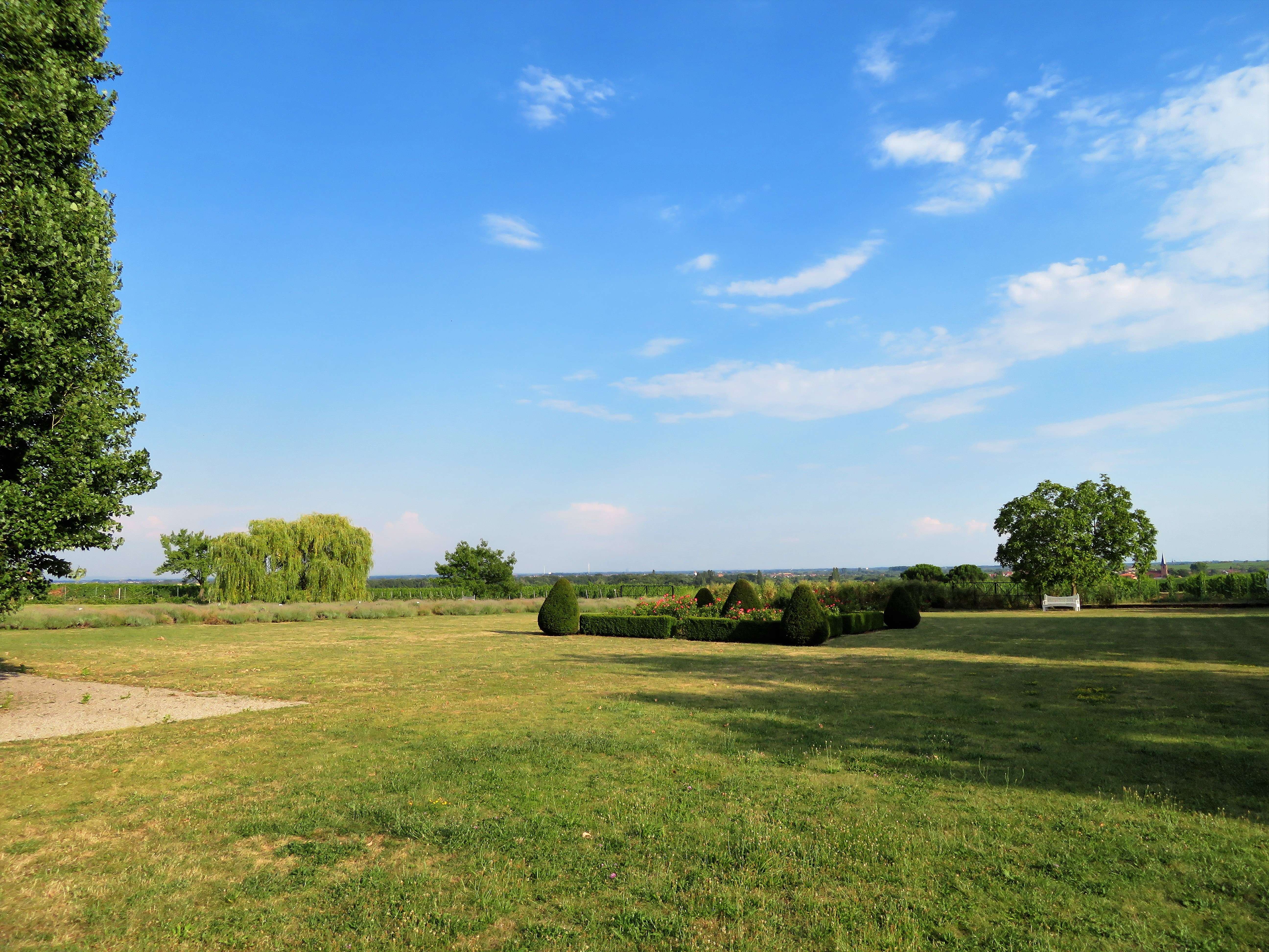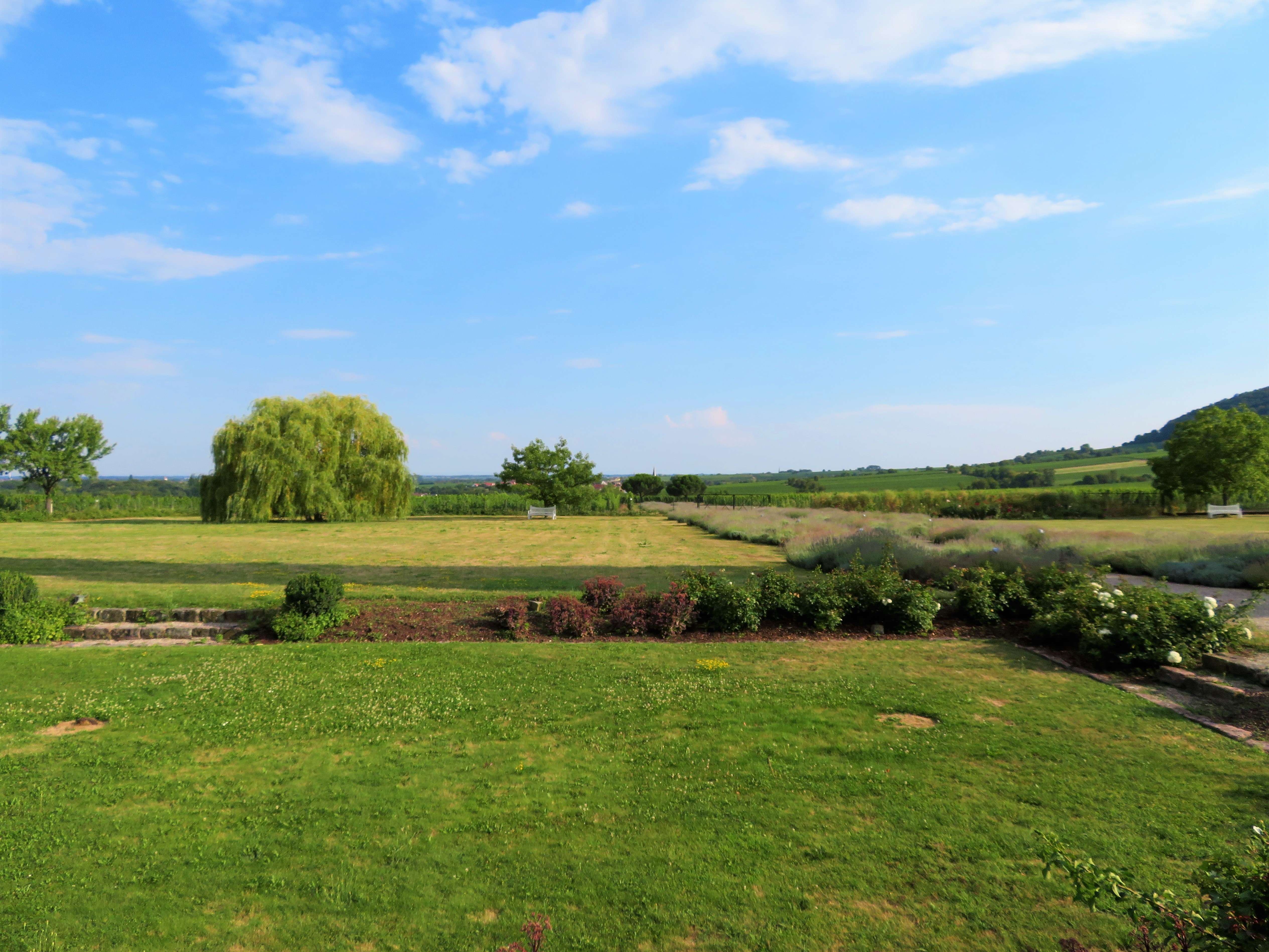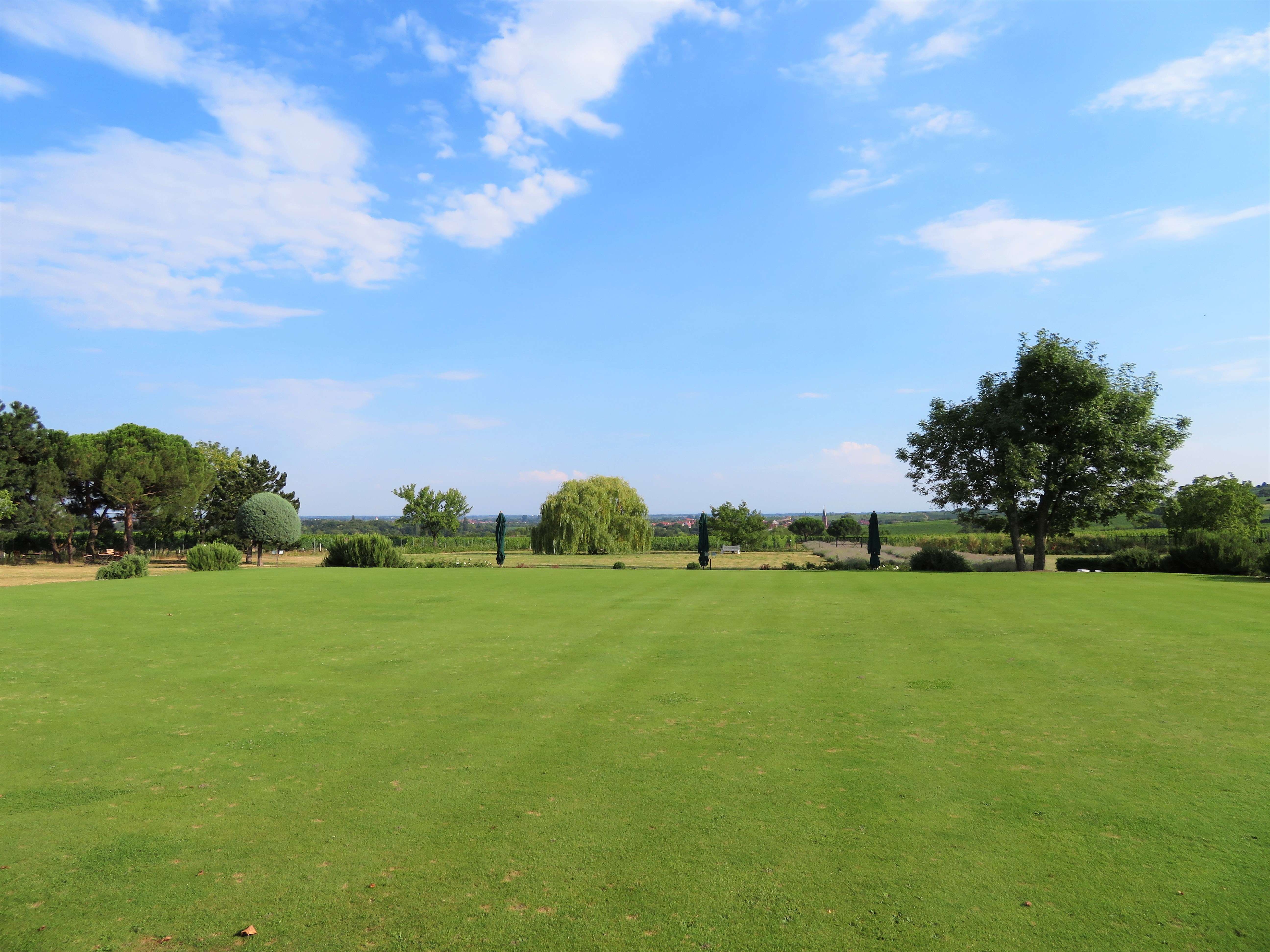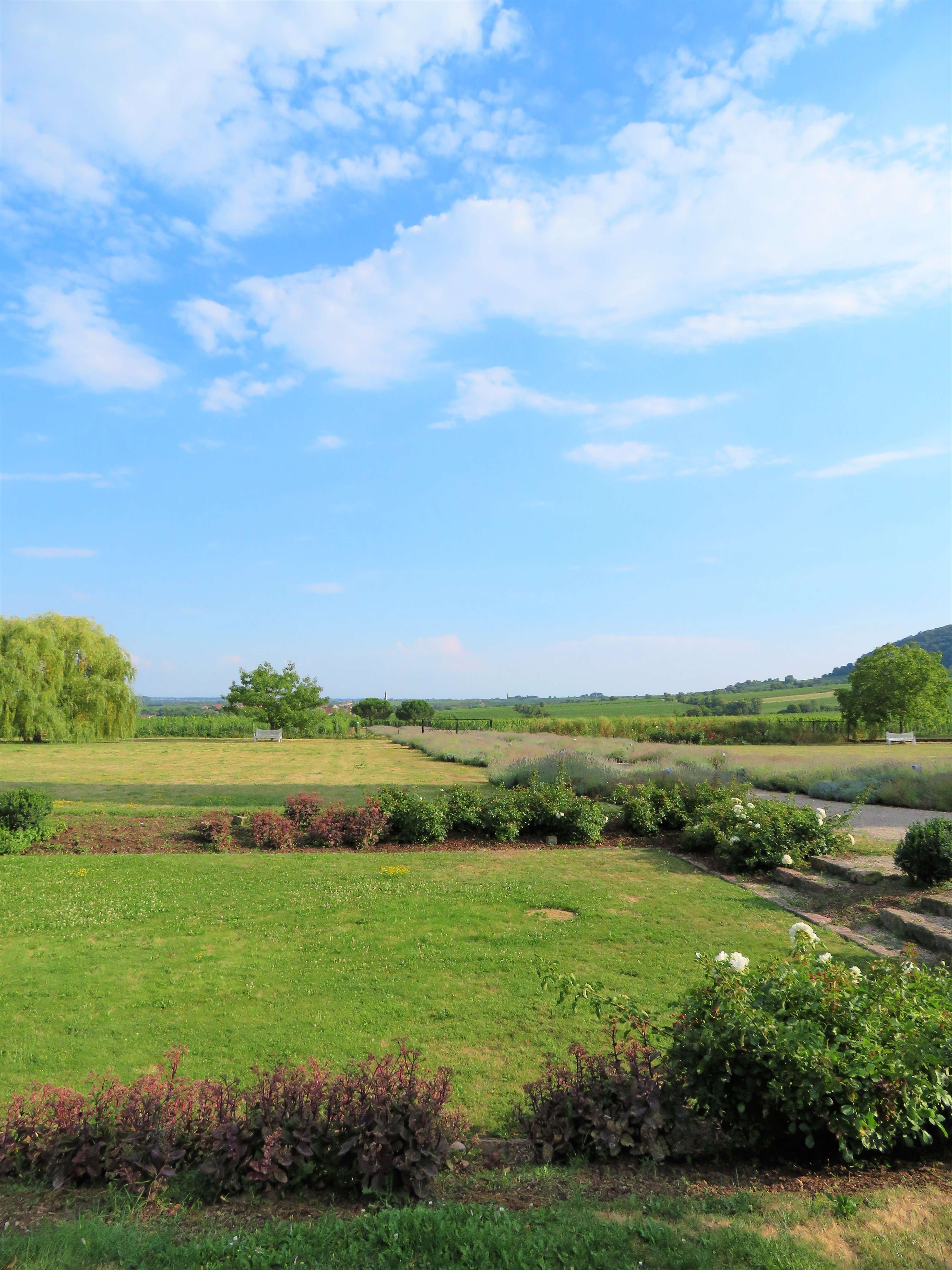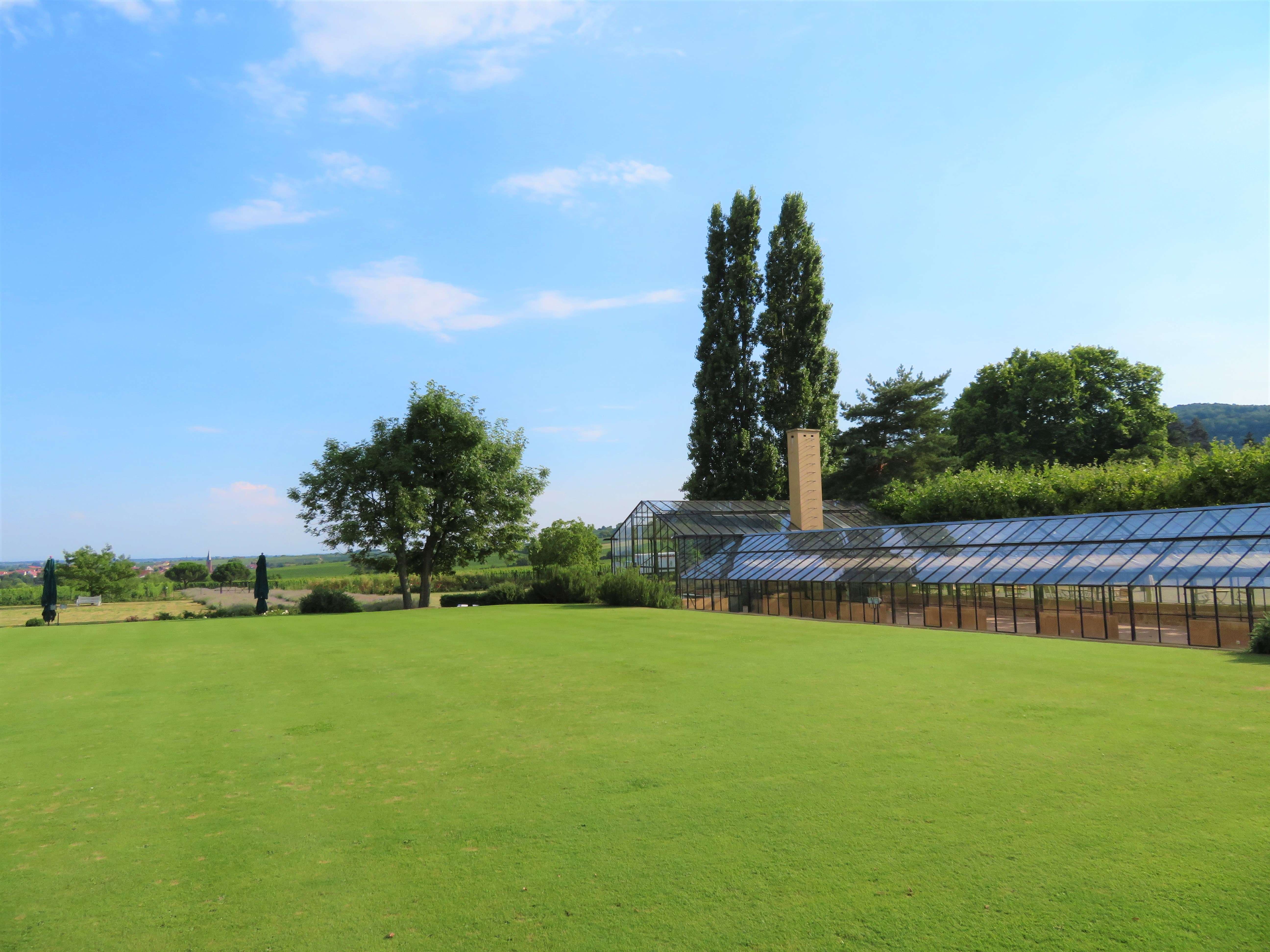 Bei unserem Rundgang gingen wir am Gewächshaus vorbei zum Croquet-Spielfeld – englischer Rasen par excellence – mit vielen schattigen Sitzmöglichkeiten und einem herrlichen Panorama. Wenn man Frau Bürklin-von Guardze zuhört, mit wie viel Liebe und Leidenschaft sie von diesem Herzensprojekt spricht, versteht man die Botschaft dahinter umso mehr: sich Zeit nehmen, eine kleine Auszeit genießen und die Schönheit der Natur um einen herum wieder einmal bewusst und mit offenen Augen wahrnehmen, ungetrübt von jeglichen anderen Einflüssen. Ich kann ihr da nur beipflichten, denn nichts ist erholsamer, als die Momente in der Natur, in denen man einfach mal abschalten und runterkommen kann.