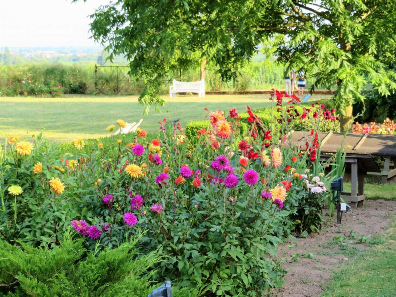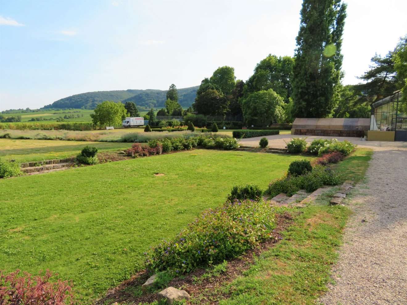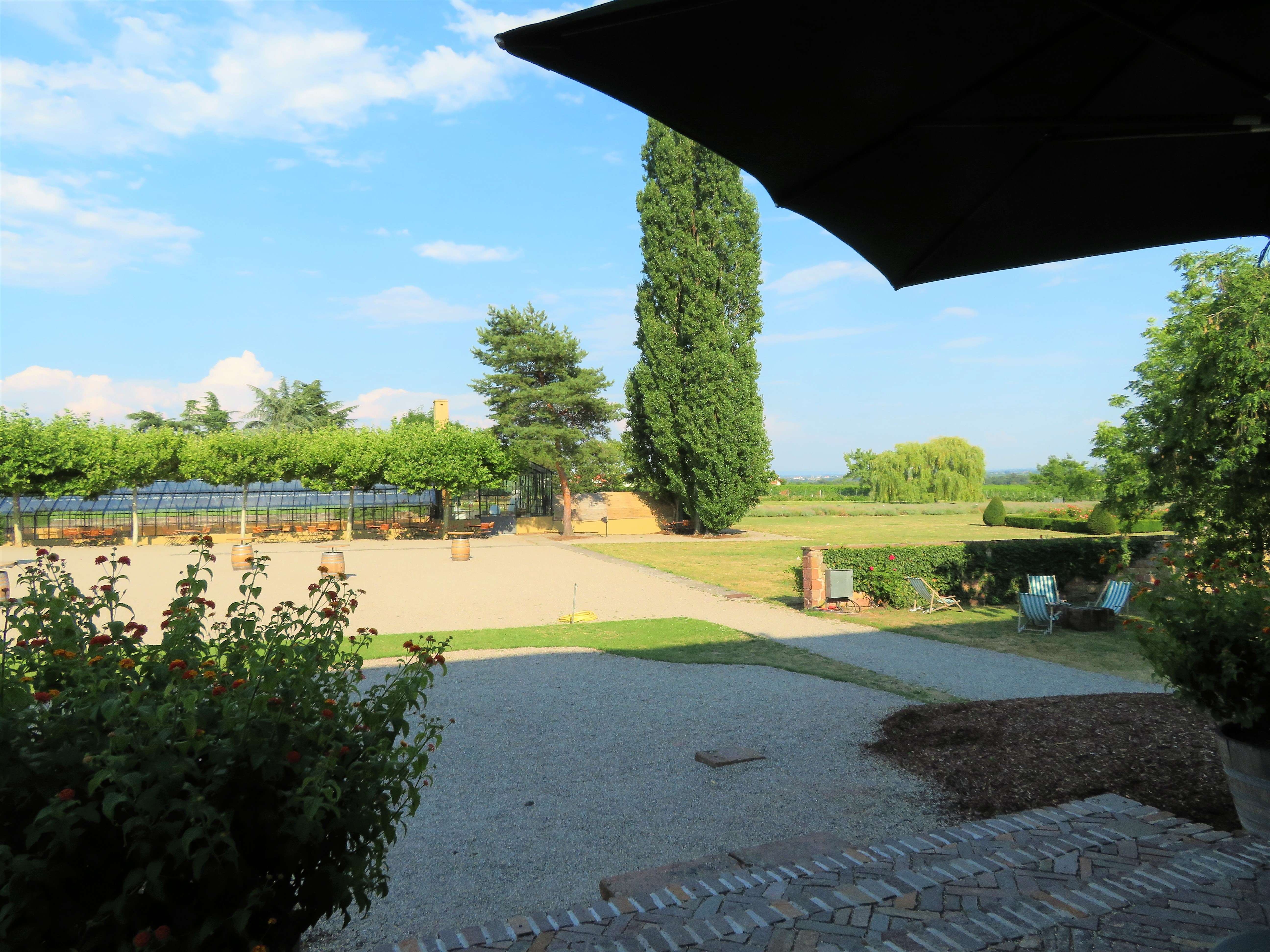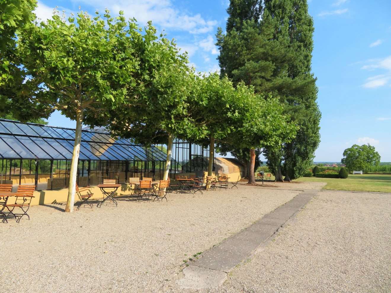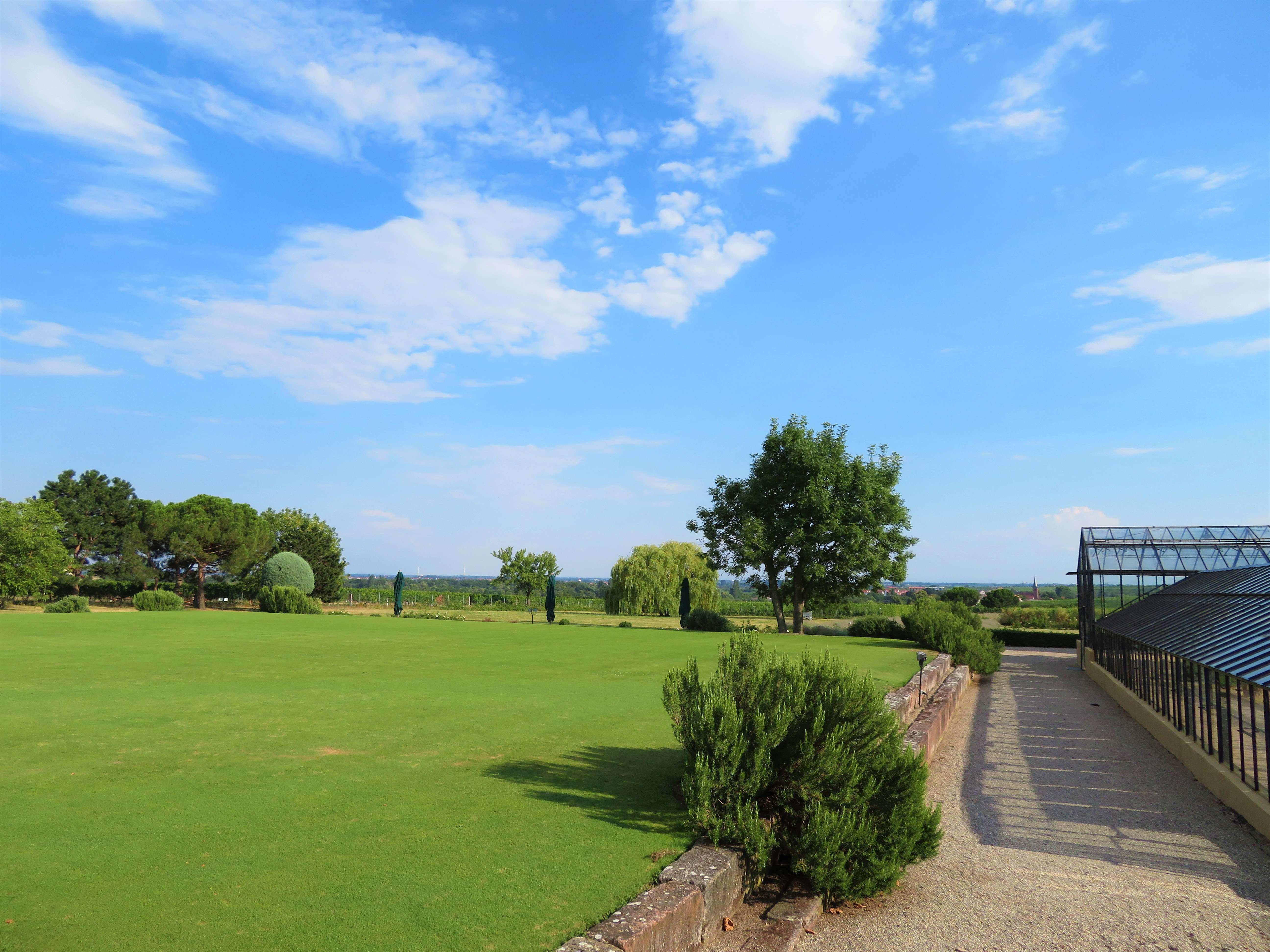 Bei unserem Rundgang gingen wir am Gewächshaus vorbei zum Croquet-Spielfeld – englischer Rasen par excellence – mit vielen schattigen Sitzmöglichkeiten und einem herrlichen Panorama. Wenn man Frau Bürklin-von Guardze zuhört, mit wie viel Liebe und Leidenschaft sie von diesem Herzensprojekt spricht, versteht man die Botschaft dahinter umso mehr: sich Zeit nehmen, eine kleine Auszeit genießen und die Schönheit der Natur um einen herum wieder einmal bewusst und mit offenen Augen wahrnehmen, ungetrübt von jeglichen anderen Einflüssen. Ich kann ihr da nur beipflichten, denn nichts ist erholsamer, als die Momente in der Natur, in denen man einfach mal abschalten und runterkommen kann.