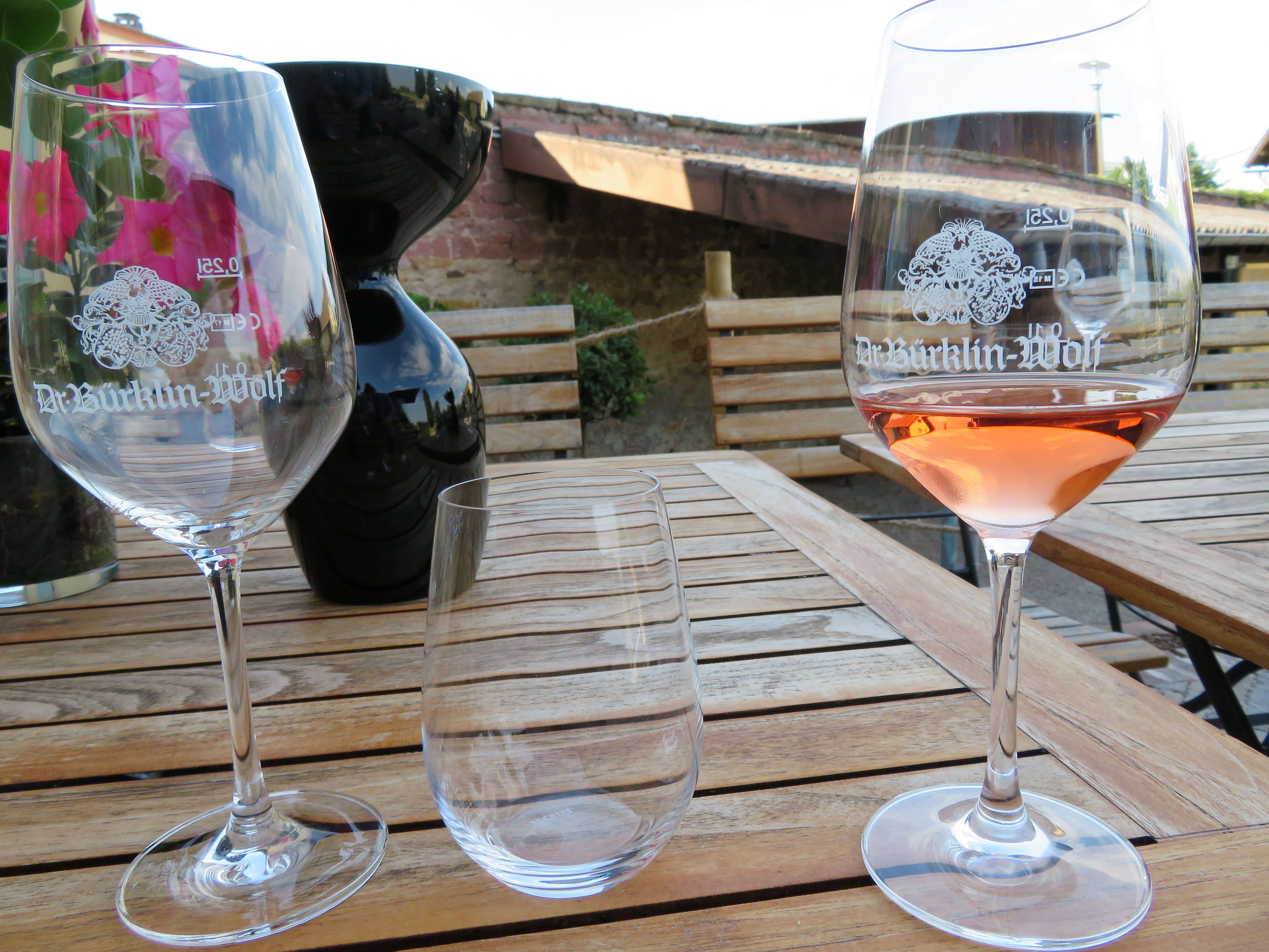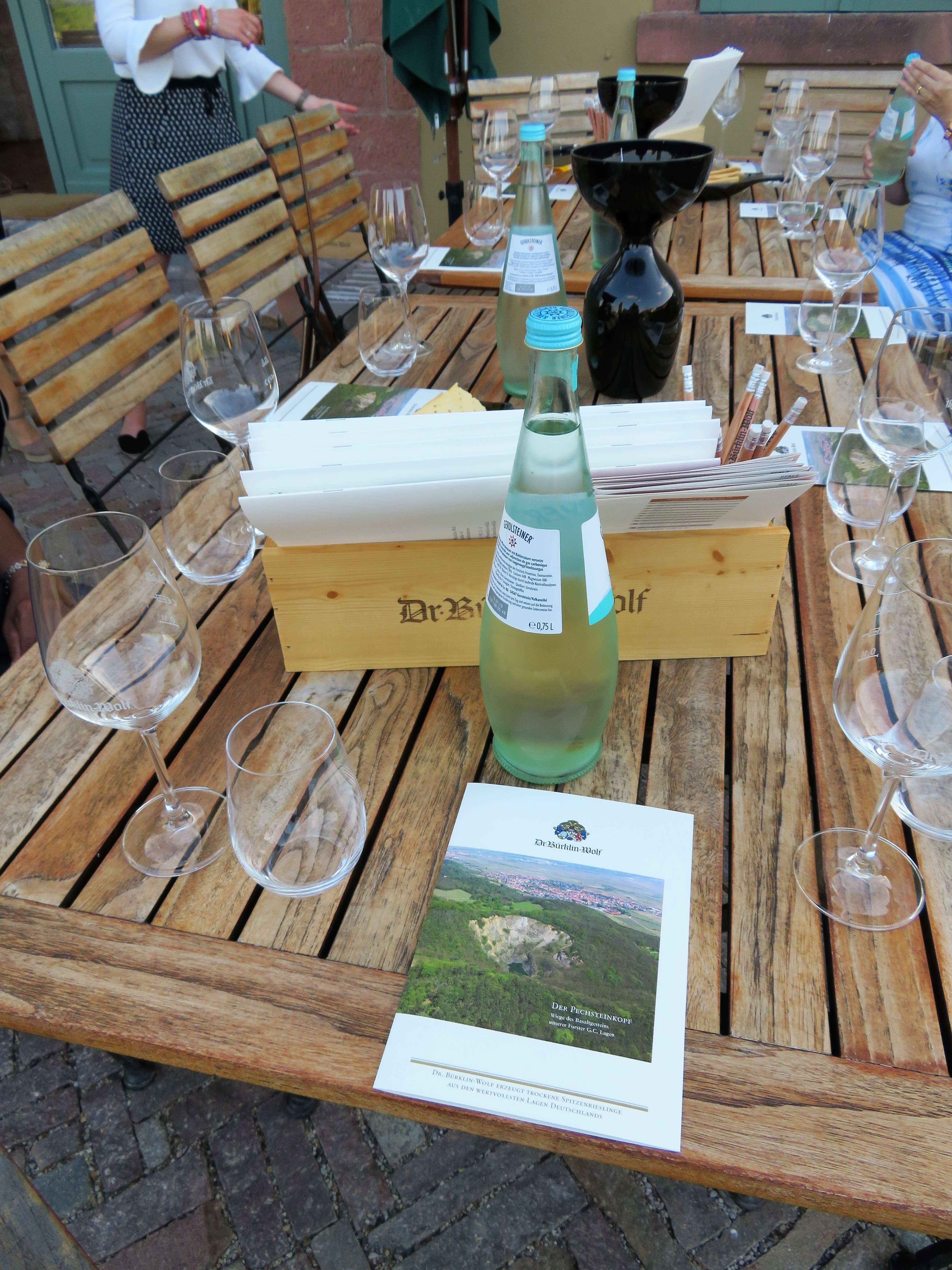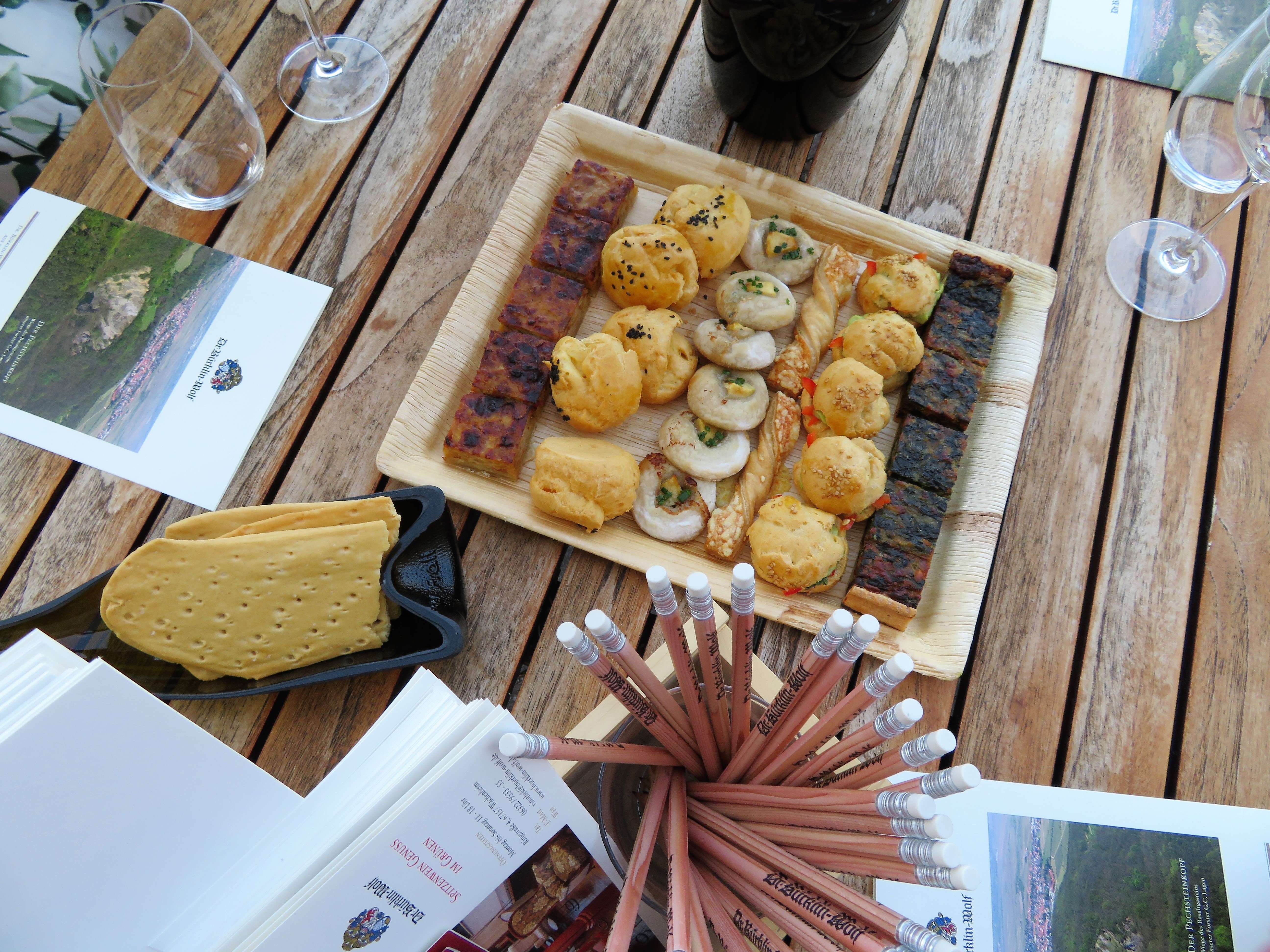 Auf der schattigen Terrasse bei der Vinothek durften wir dann noch ein paar andere gute Tropfen des Weinguts probieren: den 2017er Dr. Bürklin-Wolf Riesling, den 2014er Wachenheimer Riesling und den 2016er Wachenheimer Goldbächel. Dazu gab es kleine, feine Leckereien und wir genossen den lauen Sommerabend bei angeregten Gesprächen in einer Traum-Location!