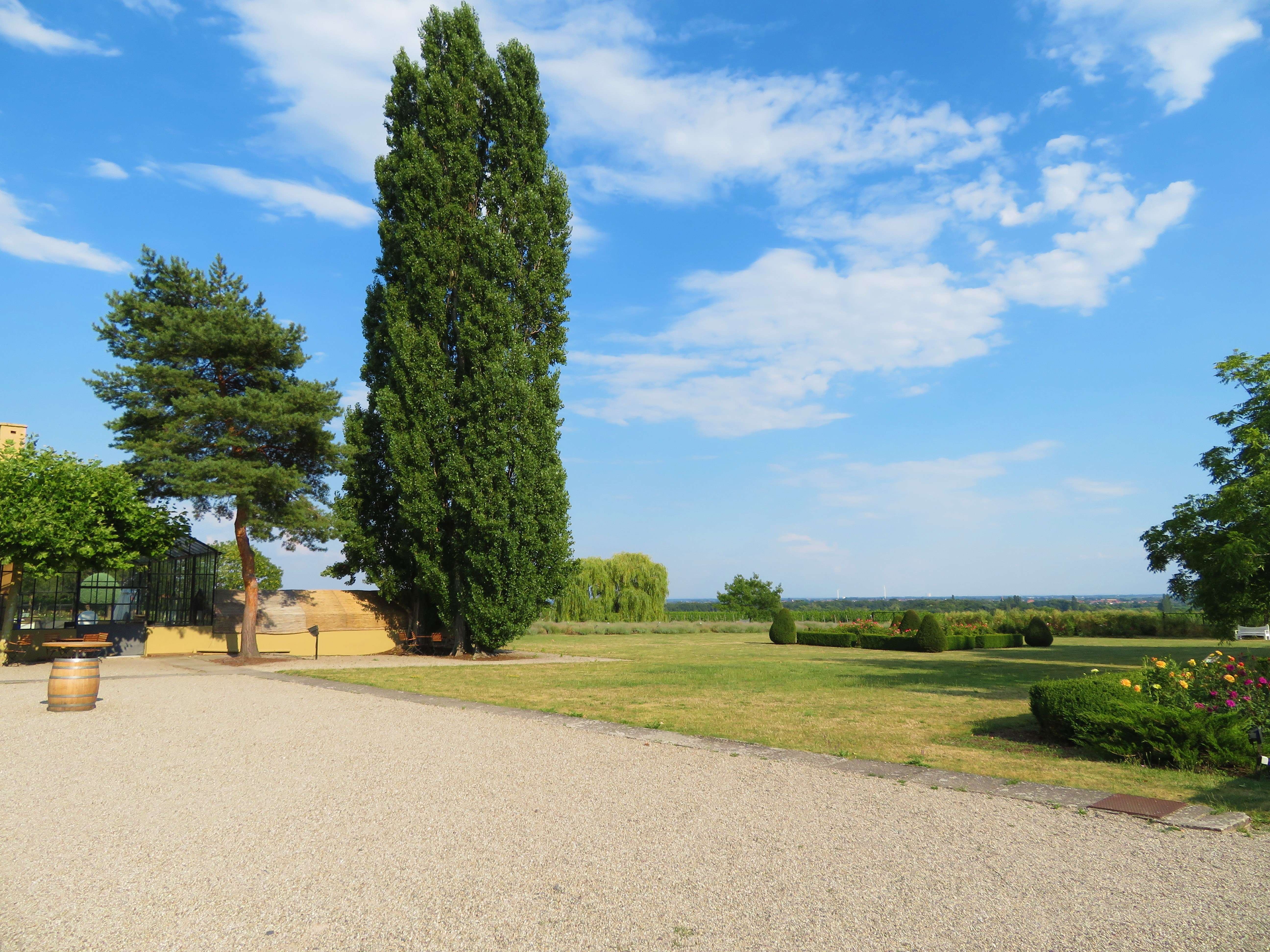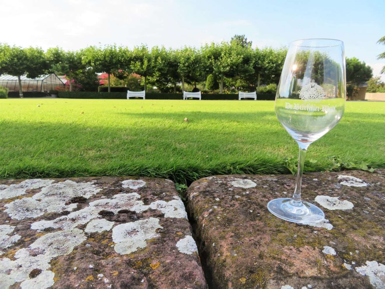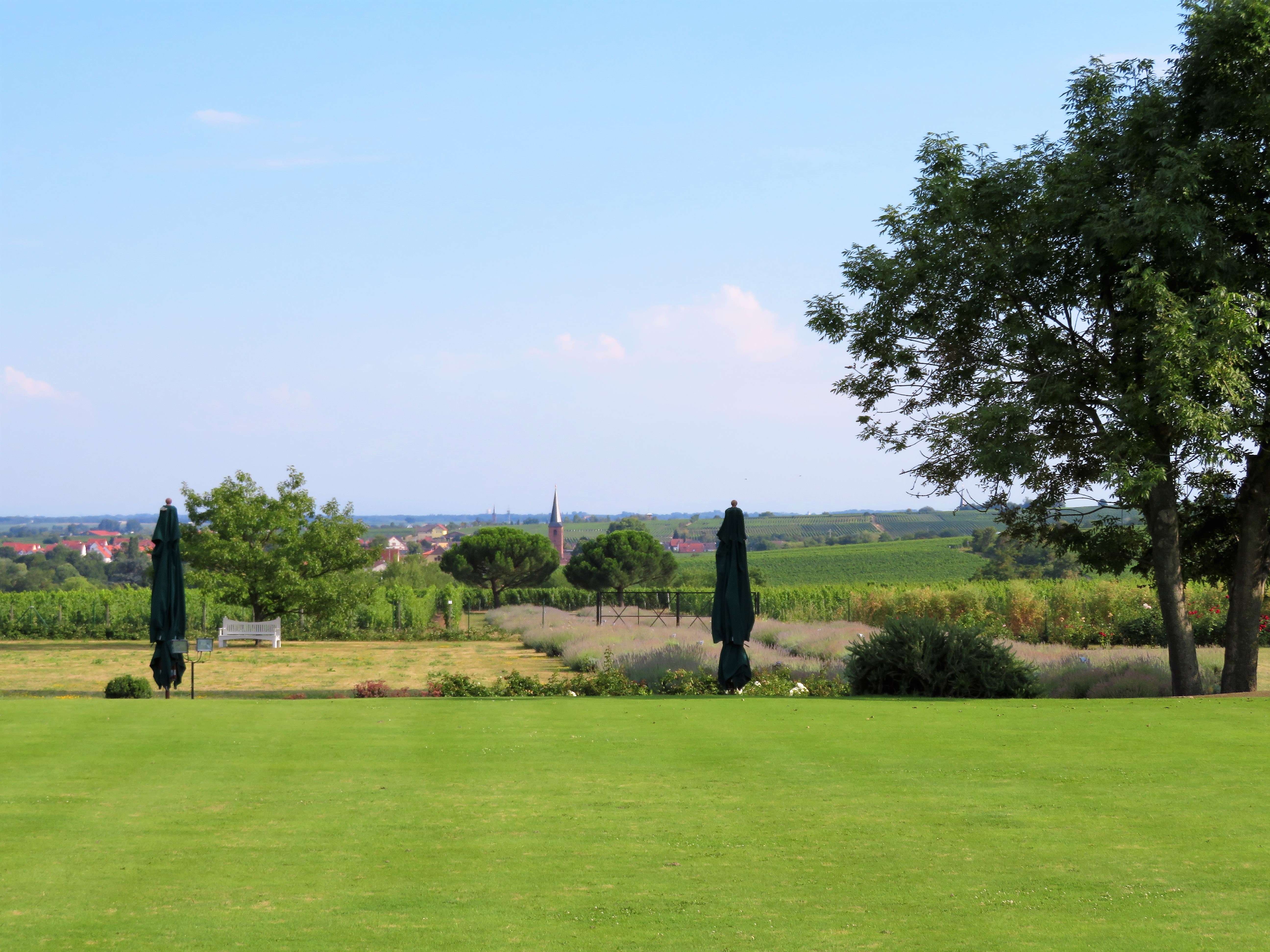 Wenn Ihr Lust habt, nun selbst einmal an einem dieser warmen Sommertage durch den Englischen Garten zu schlendern, mit einem Gläschen Wein in der Hand und auf einem der vielen (Schatten-)Plätze die Ruhe, die Natur, den Wein und die Aussicht zu genießen, dann kann ich Euch nur empfehlen, bei der Vinothek Dr. Bürklin-Wolf in Wachenheim vorbeizuschauen!