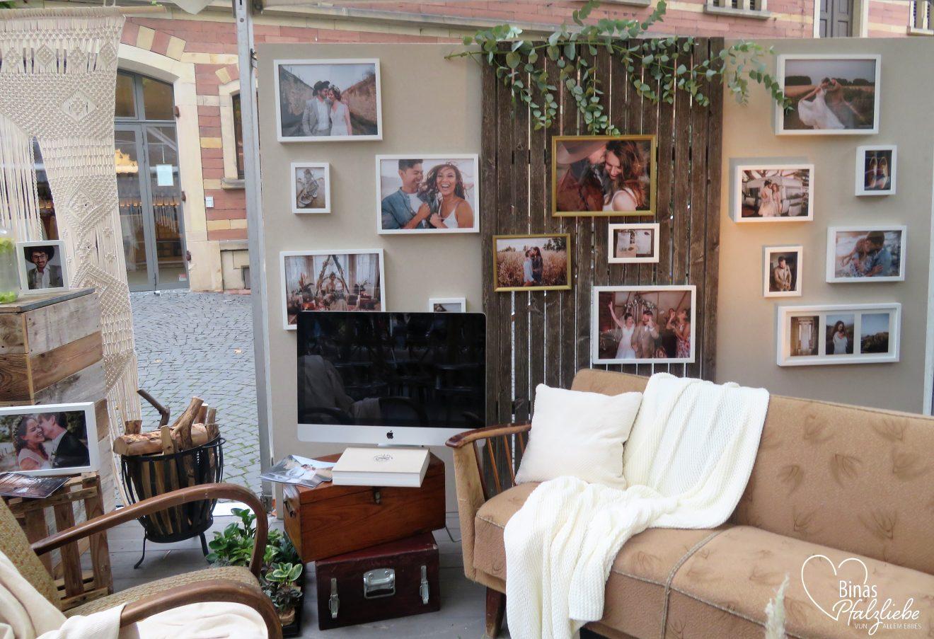 In der Lounge von Candida und Max Jan Photography begrüßte uns gleich auch mal deren süßer Hund, der die beiden an diesem Tag begleitete und sich natürlich einige Streicheleinheiten bei uns abholte. Candida und Max Jan kommen aus Kaiserslautern, sind verheiratet und Hochzeitsfotografen. Auch sie haben in der Pfalz geheiratet und begleiten nun Brautpaare an deren besonderem Tag und stehen mit Rat und Tat zur Seite, was man auch merkte, wenn man ihnen an diesem Tag bei den Gesprächen mit den Brautpaaren vor Ort zuhörte. Des Weiteren haben wir uns mit einer sehr netten Dame von 123 Braut und Bräutigam unterhalten. Das Unternehmen aus Viernheim war mit der entsprechenden Hochzeitsgarderobe für Sie und Ihn und natürlich den Trauringen vertreten. Die tolle Arbeit, die dort geleistet wird, habe ich sogar selbst schon bei der Brautkleidanprobe einer Freundin von mir miterleben können, die dort ihr Traumkleid gefunden hat.