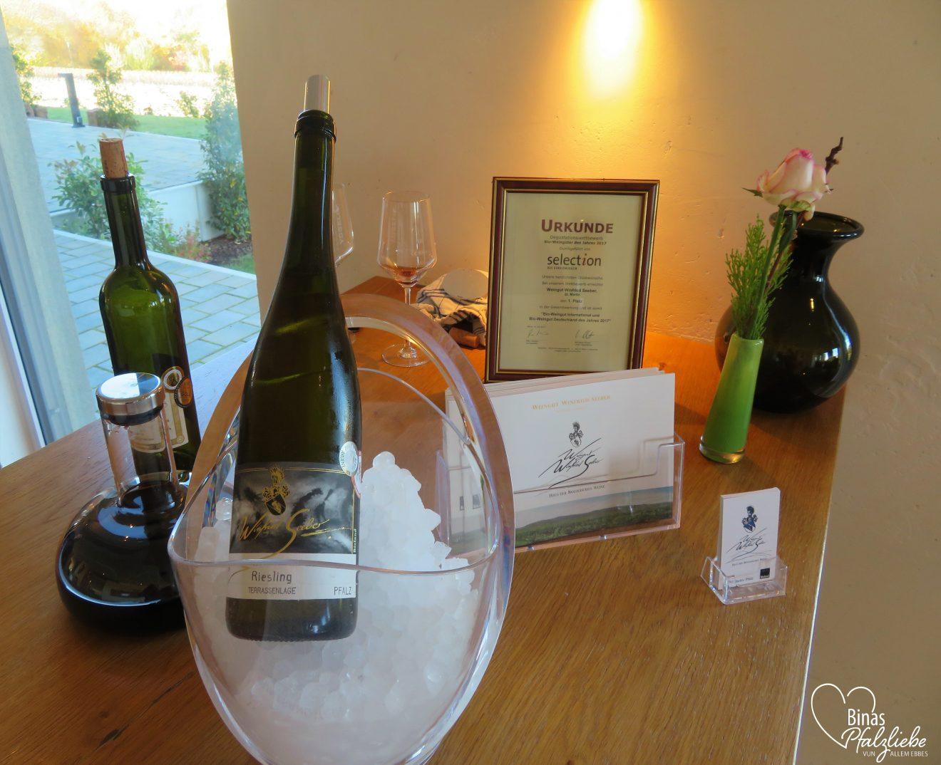 Eine echte Premiere war die Verkostung des ersten Portugieser Weisherbsts des Jahrgangs 2018 (!) neben weiteren Kellerschätzen, wie dem trockenen 2017er Sauvignon blanc und einer edelsüßen Rarität zum Abschluss, dem Cabernet Mitos. Wenn Ihr mal in die Lounge des Weinkontors Edenkoben kommt, probiert unbedingt diesen Eiswein – ein weiteres persönliches Geschmacks-Highlight meinerseits an diesem Tag.